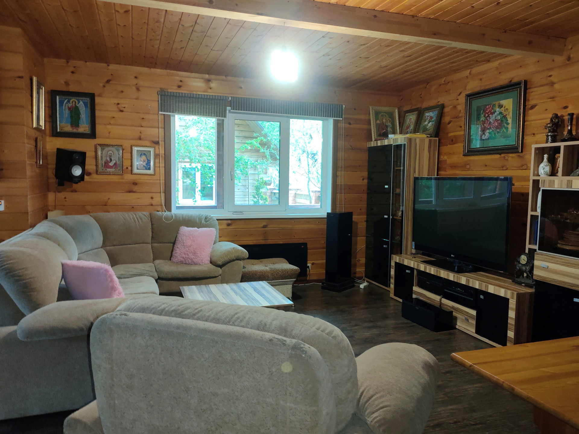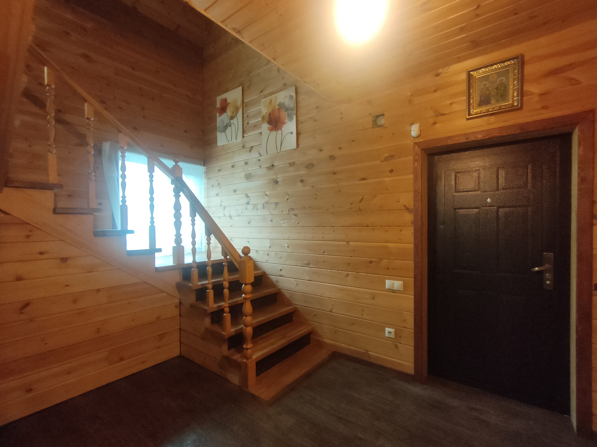Внутри дома параизоляция и имитация бруса.