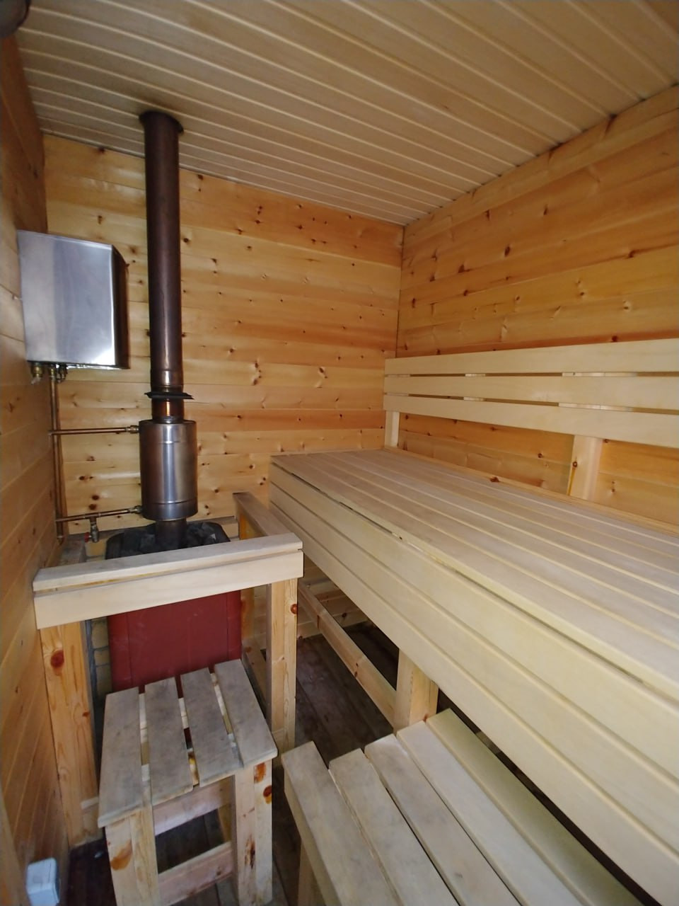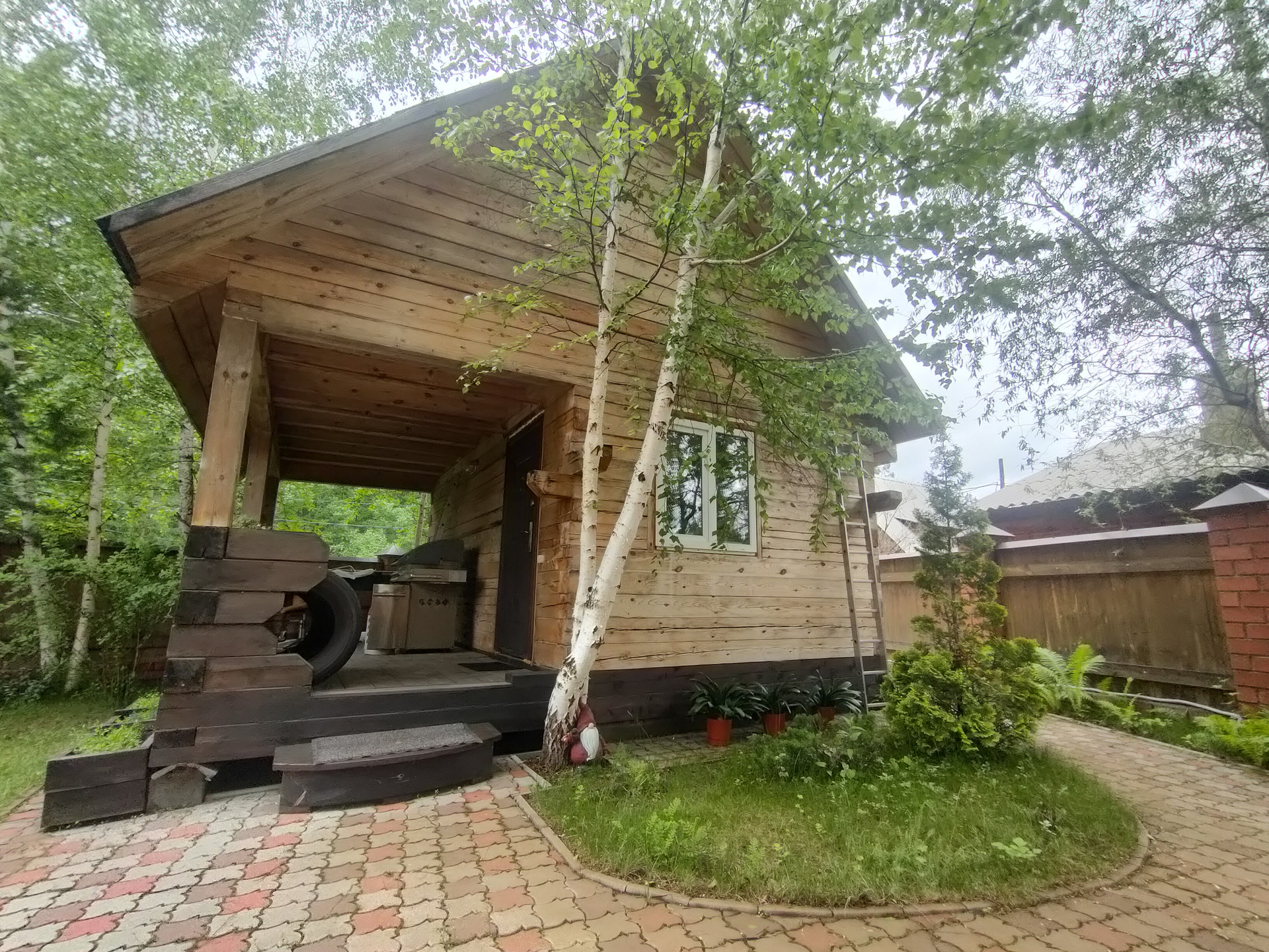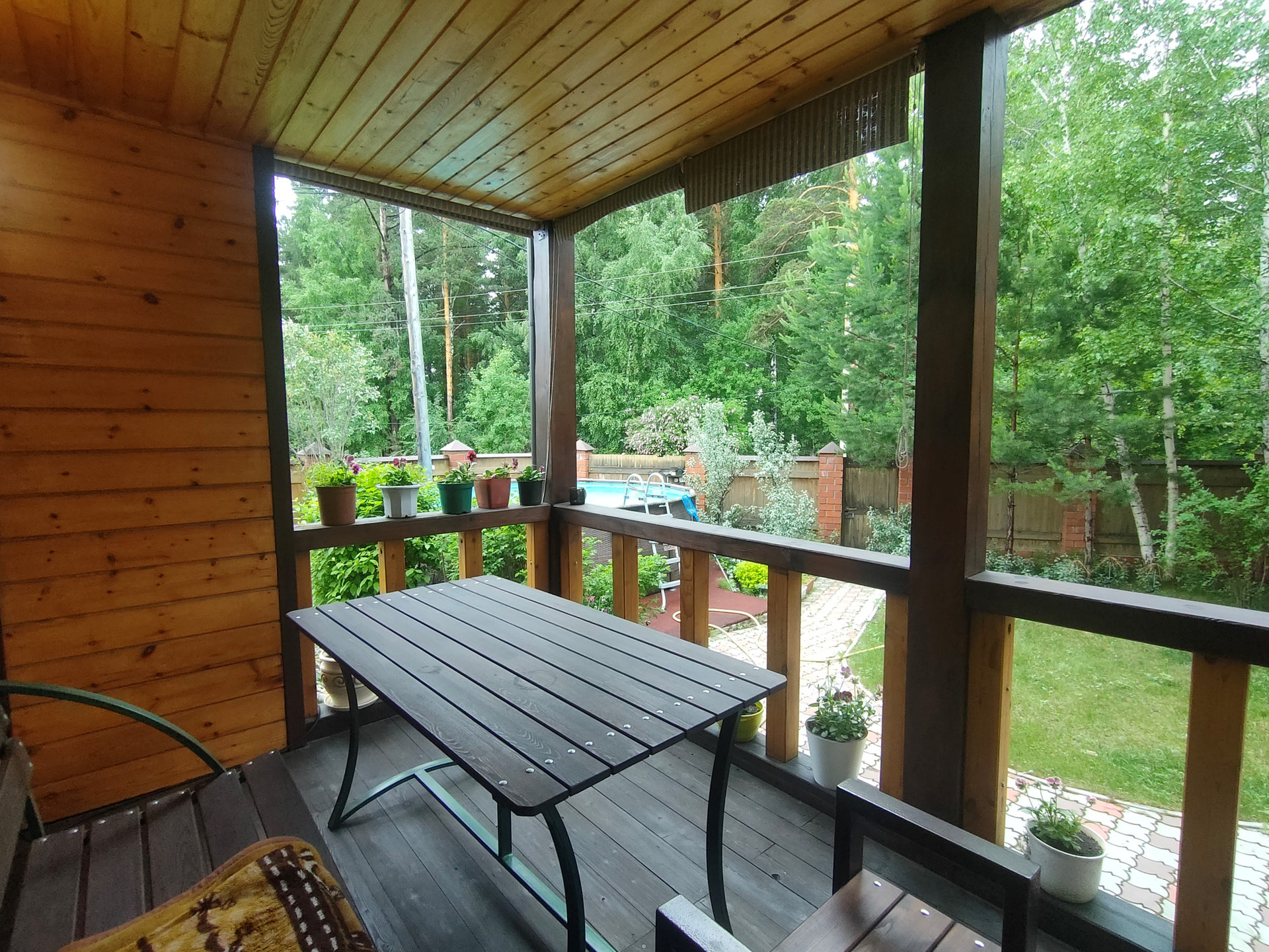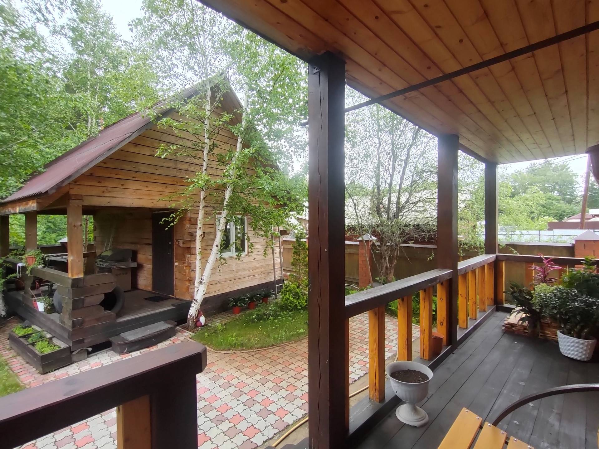 Банька из бруса, с внутренней отделкой и верандой.