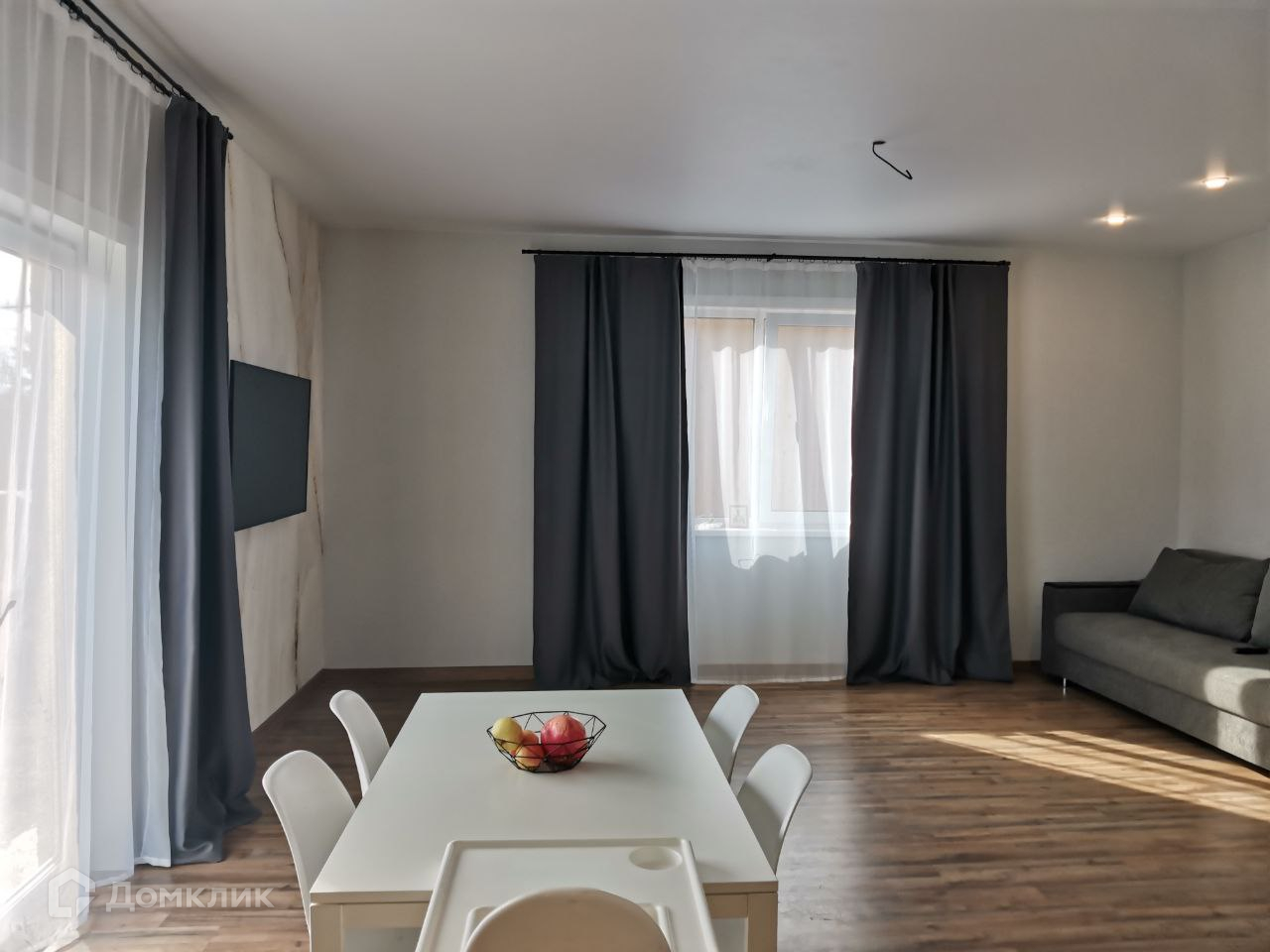 Потолки натяжные, на полу – ламинат.