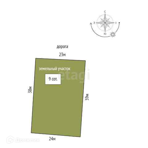 Площадь участка 9 сот.