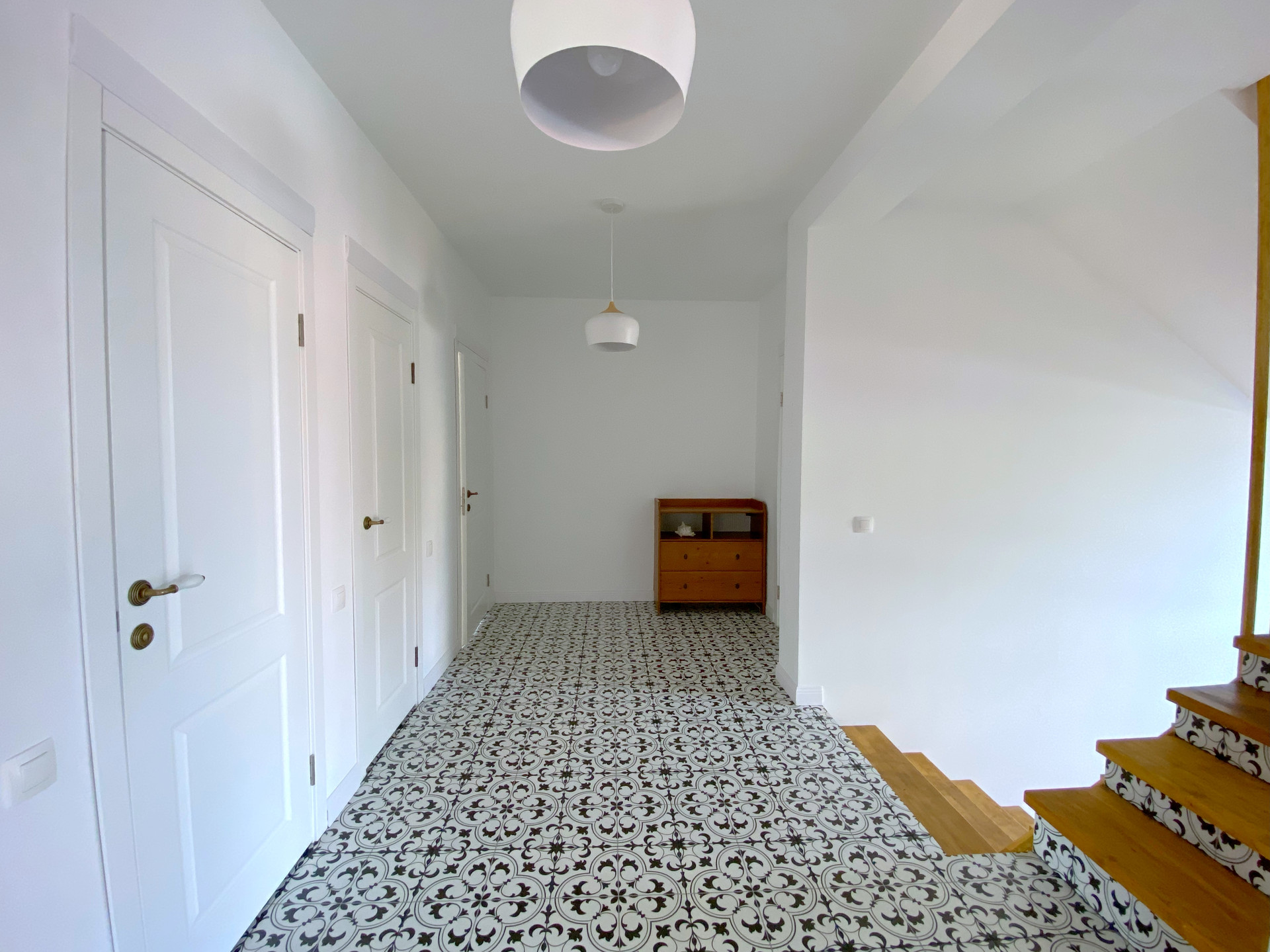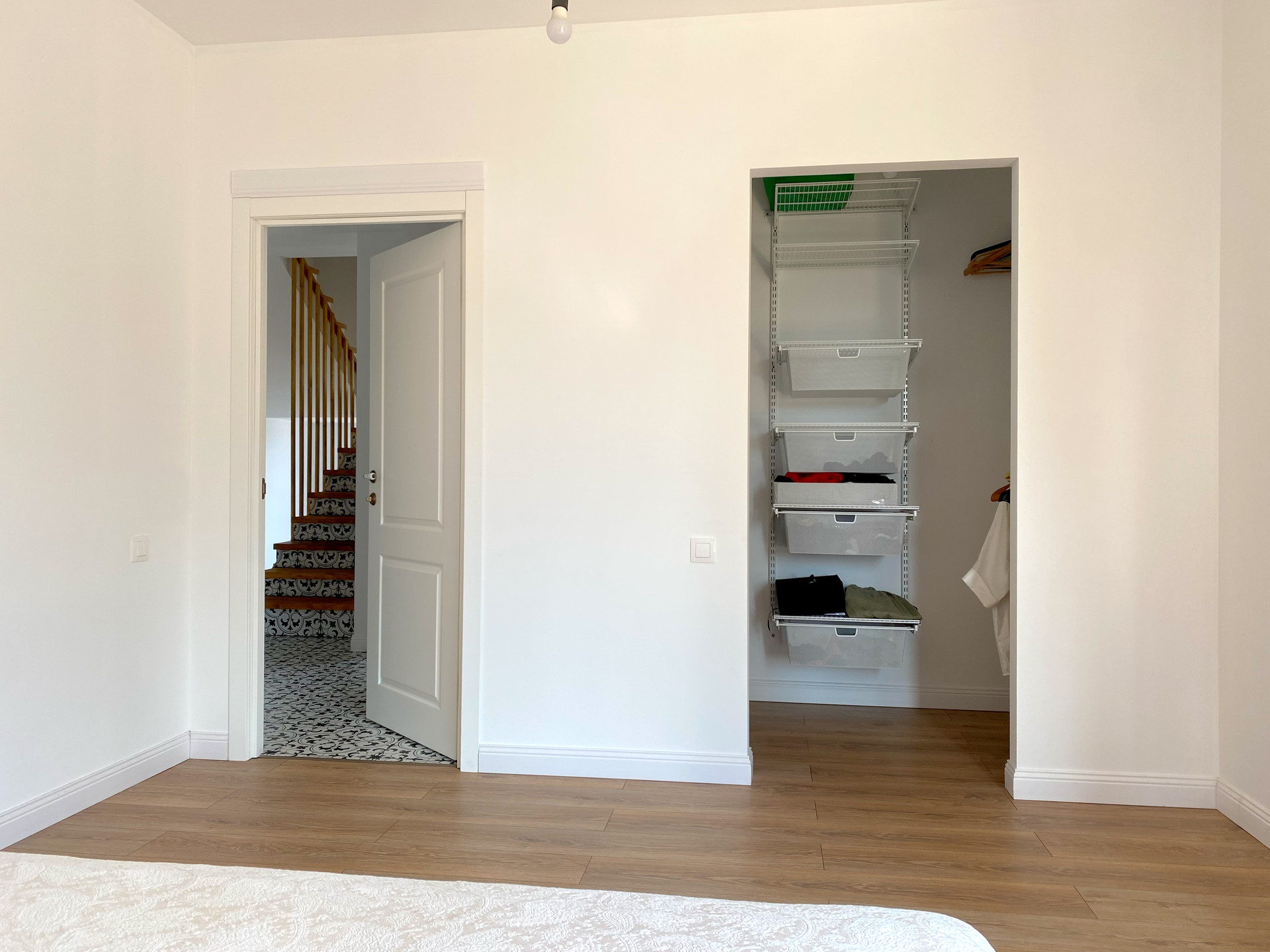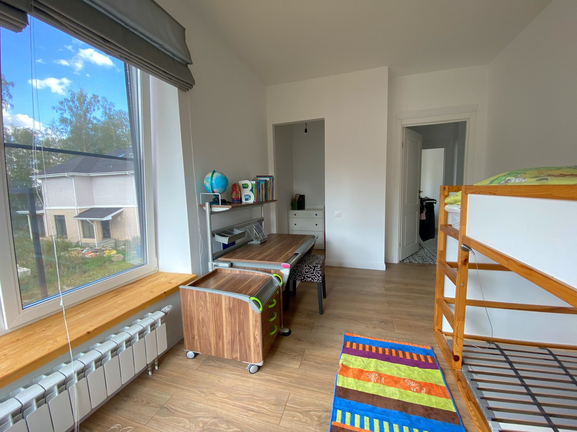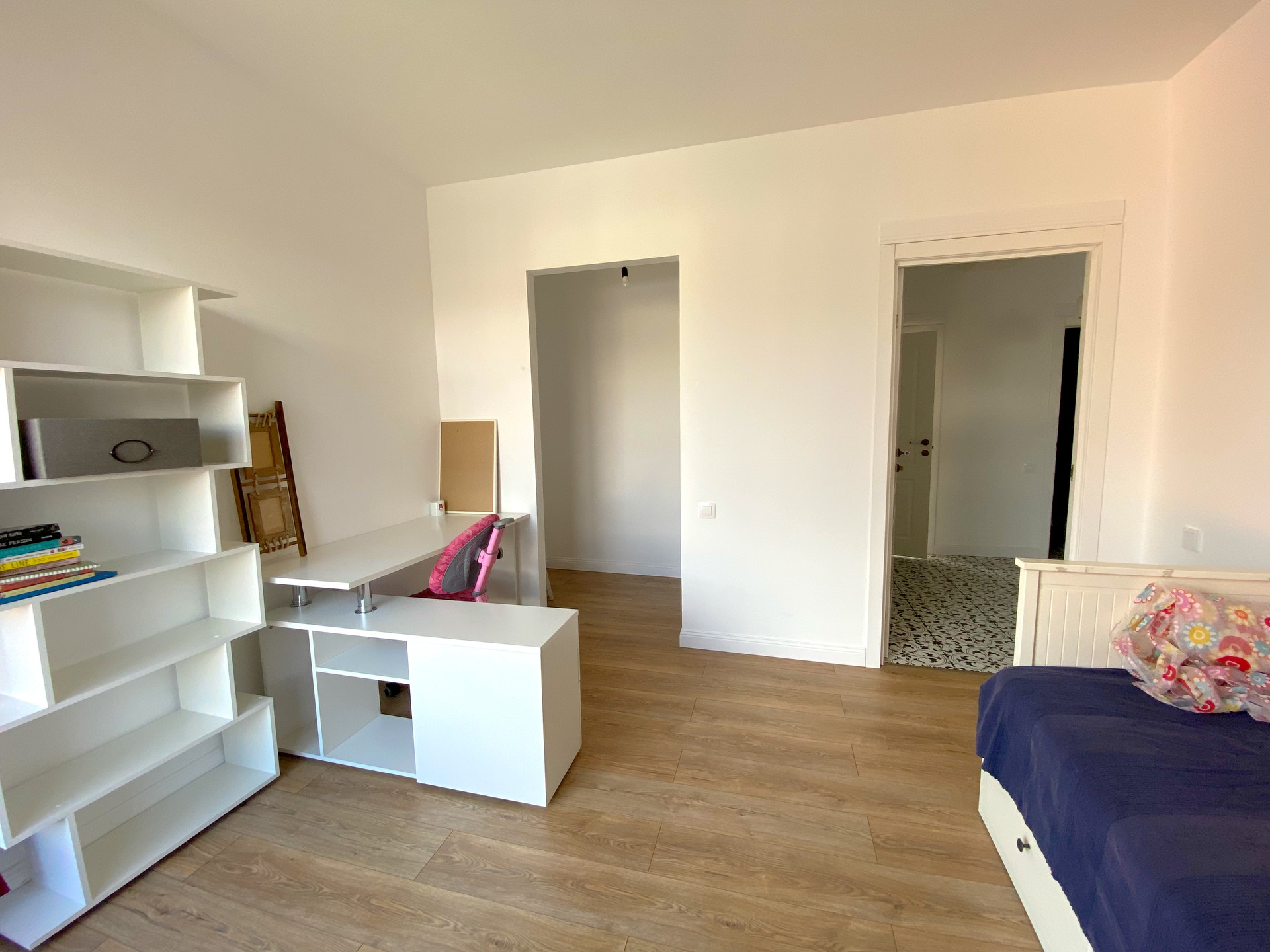 2 этаж - 4 закрытые спальни (3 детские, 1 - взрослая с двуспальной кроватью). В каждой комнате отдельная комната-гардероб. 1 туалет с душем, 2 туалет - душ и ванная. Гигиенический душ в обоих туалетах. Постирочная со стиральной машиной (стиралка плюс сушка).