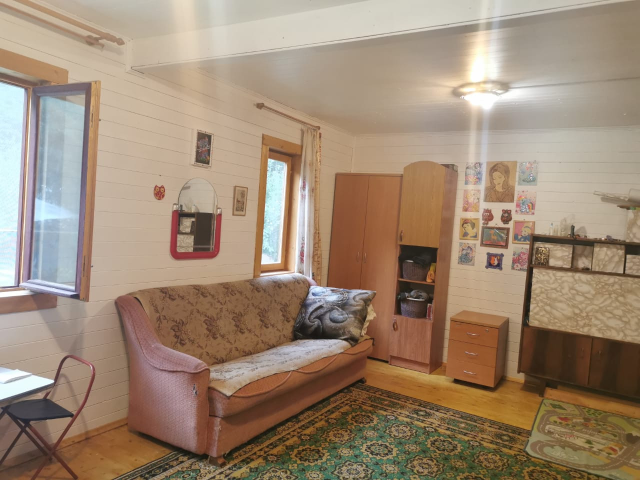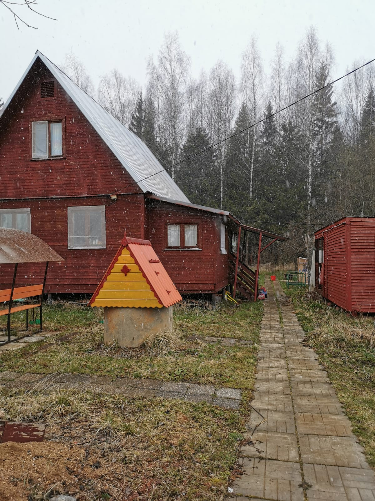 Продаётся дом с участком, прямоугольной формы, со своим выходом в лес. На территории уложенна плитка, вдоль дома до конца участка, выкопан колодец, построена бытовка с душем, мангальная зона с беседкой, плодовые деревья(яблони, слива, вишня), кусты смородины(красная, черная), крыжовник. Соседи только с одной стороны. 1 этаж и веранда утеплённые, мансарда нет.