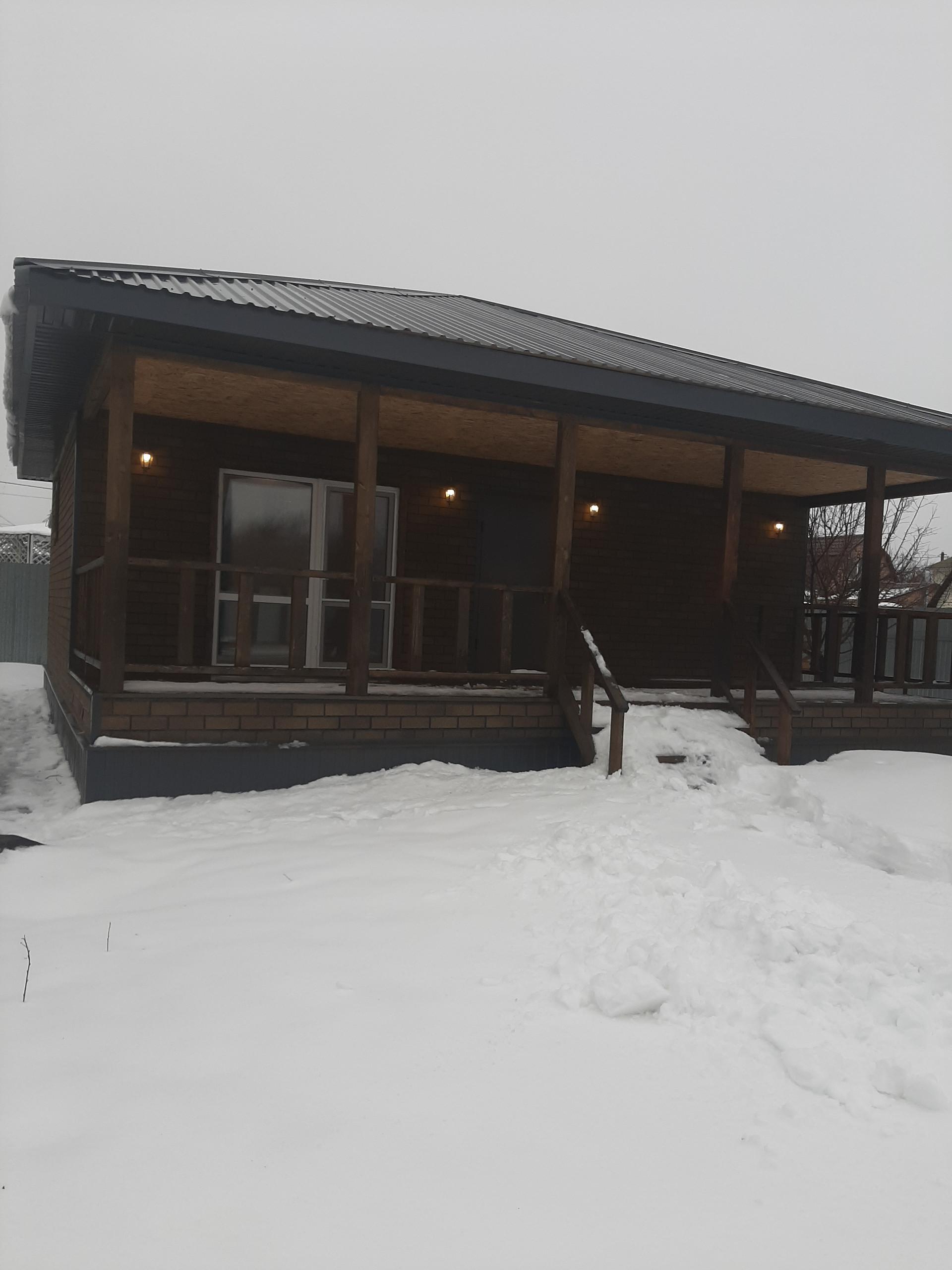 Дом построен в 2023 году. Материал: каркас, сендвич-панели, утепление. Вода: скважина, поливная вода (в сезон); канализация: септик. Газ по границе участка. Электричество в доме. Забор - металлопрофиль.