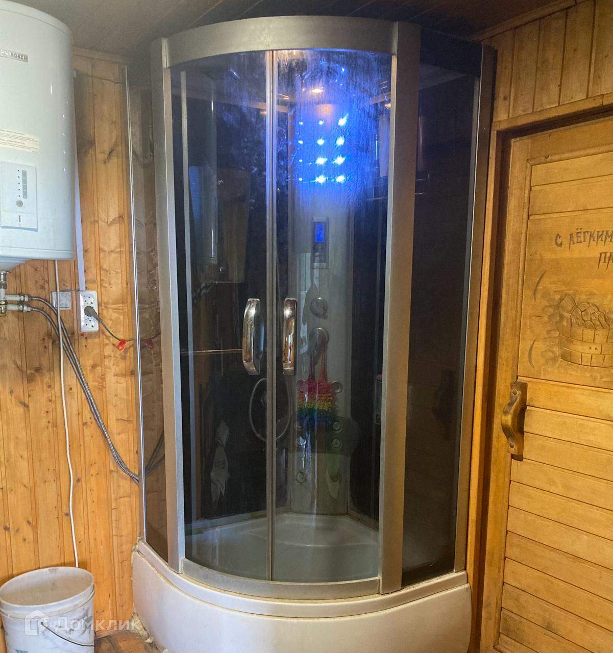 Так же на первом этаже есть баня. Топится на дровах. В бане установлена душевая кабина, водонагрватель.