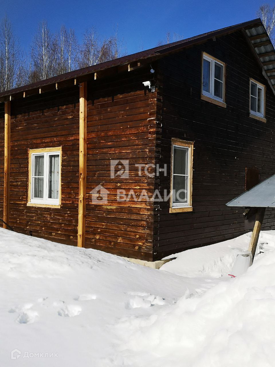 На участке 2 дома. Первый дом основной, общей площадью 95,6 метров. Построен из бруса 150х200, фундамент ленточный, крыша металлочерепица. Дом частично с отделкой на первом этаже: санузел, спальня 12 метров и кухня-гостиная 25 метров, просторный коридор, сделана стяжка пола и туалет, второй этаж утеплен: три изолированные комнаты 10, 15, 12 метров.