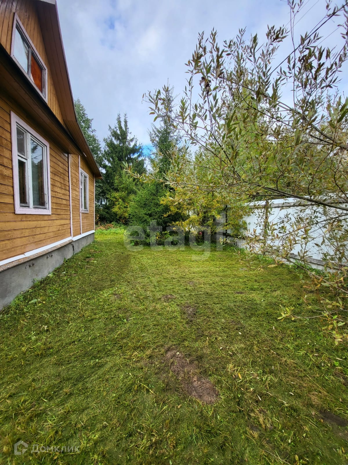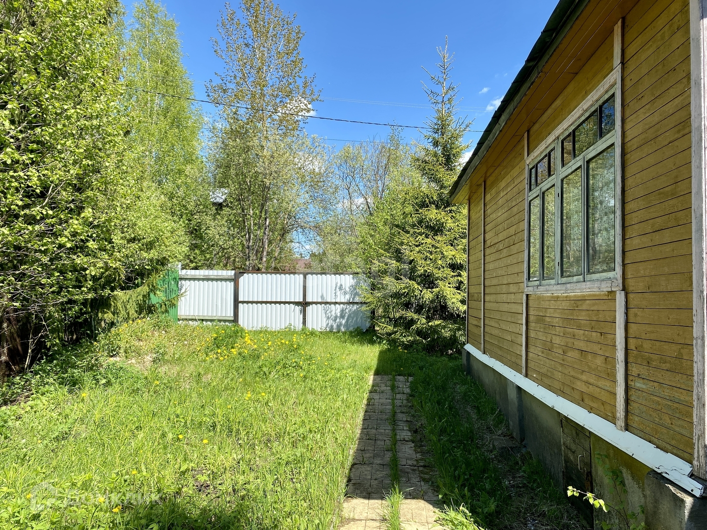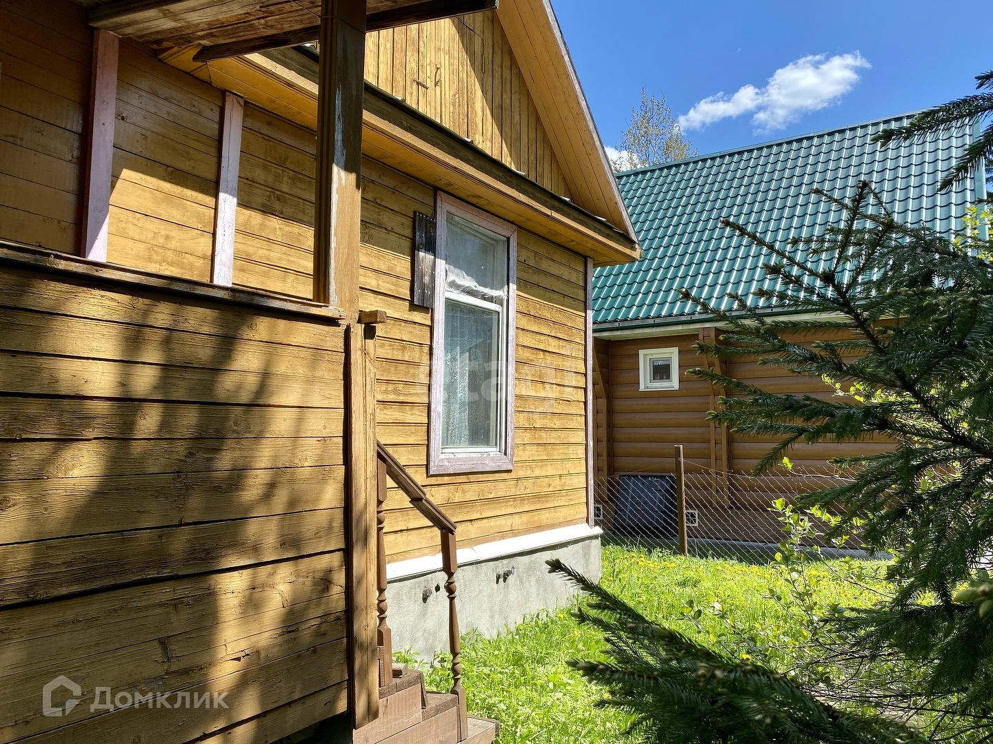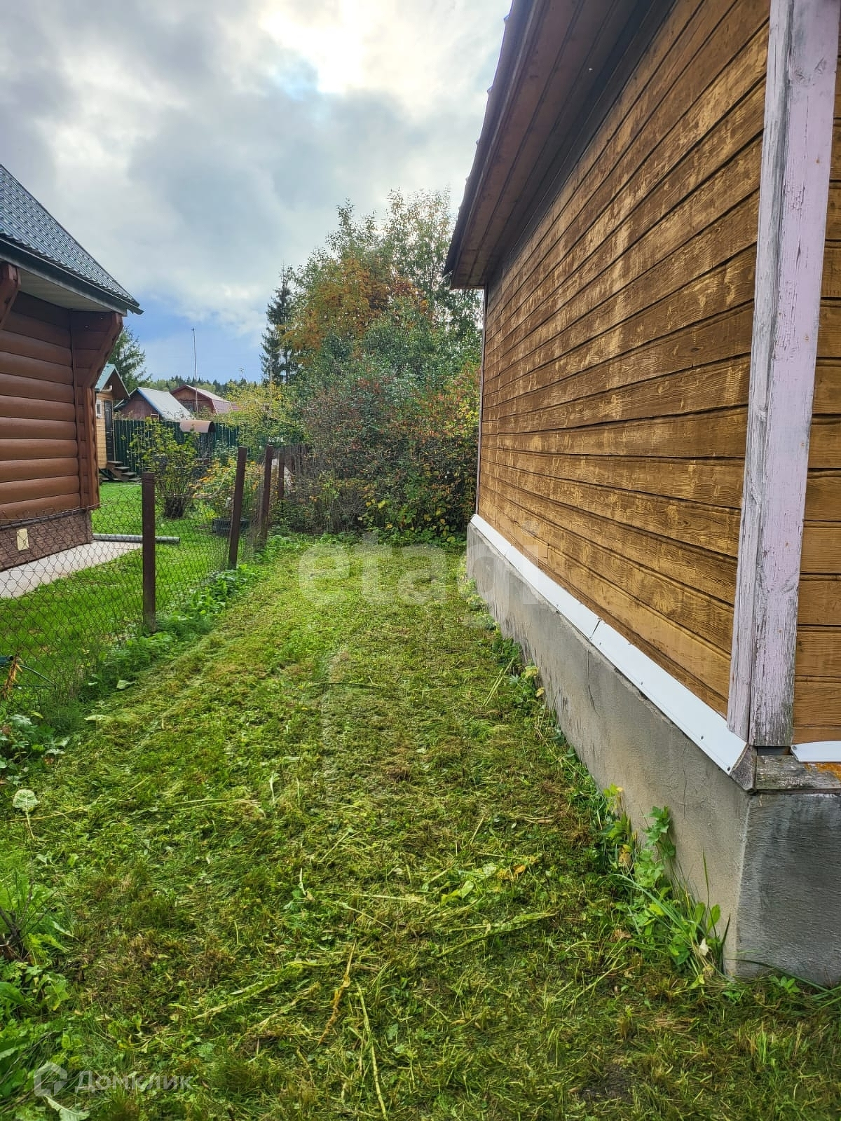 Ровный участок - дренажирован, дорожки выложены плиткой. Имеются колодец для полива, плодовые насаждения и высокие ели. Оборудовано машиноместо. Хоз.постройка стоит на бетонном фундаменте, планировалось сделать гостевым домом.
