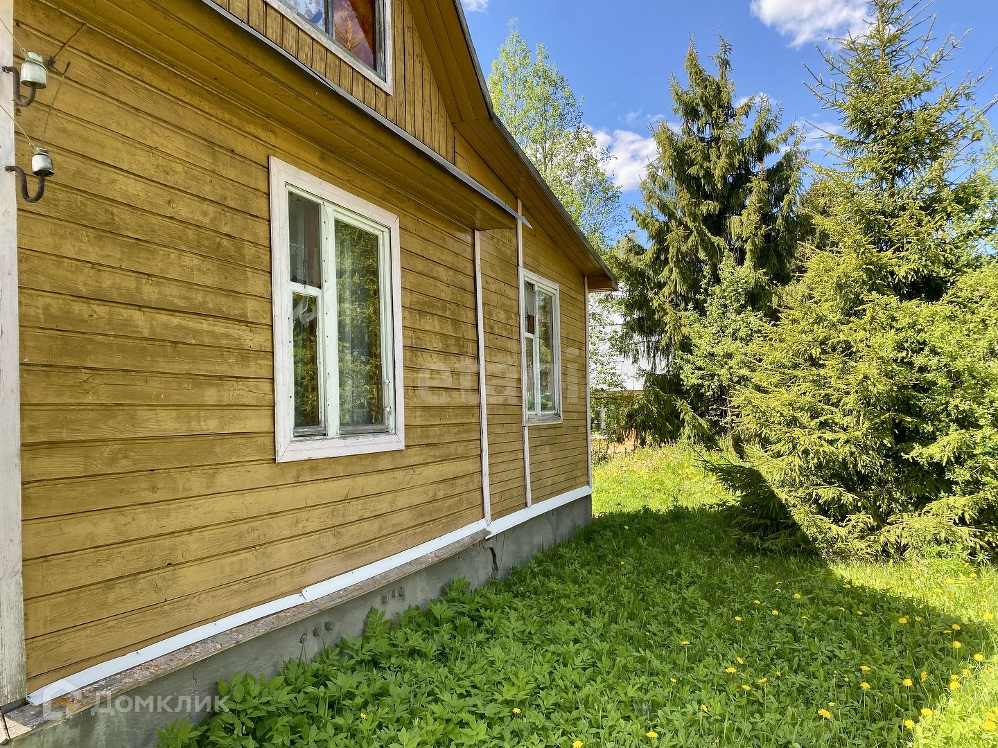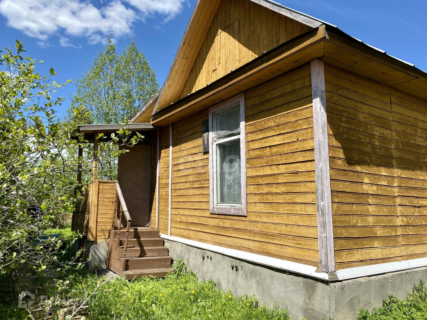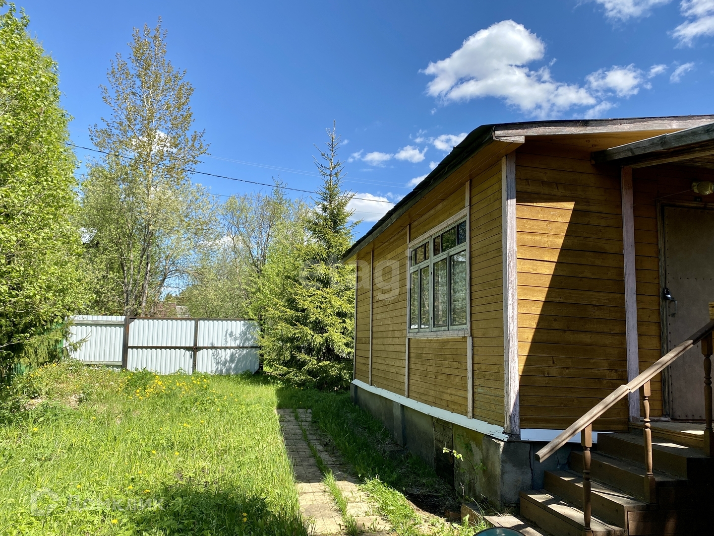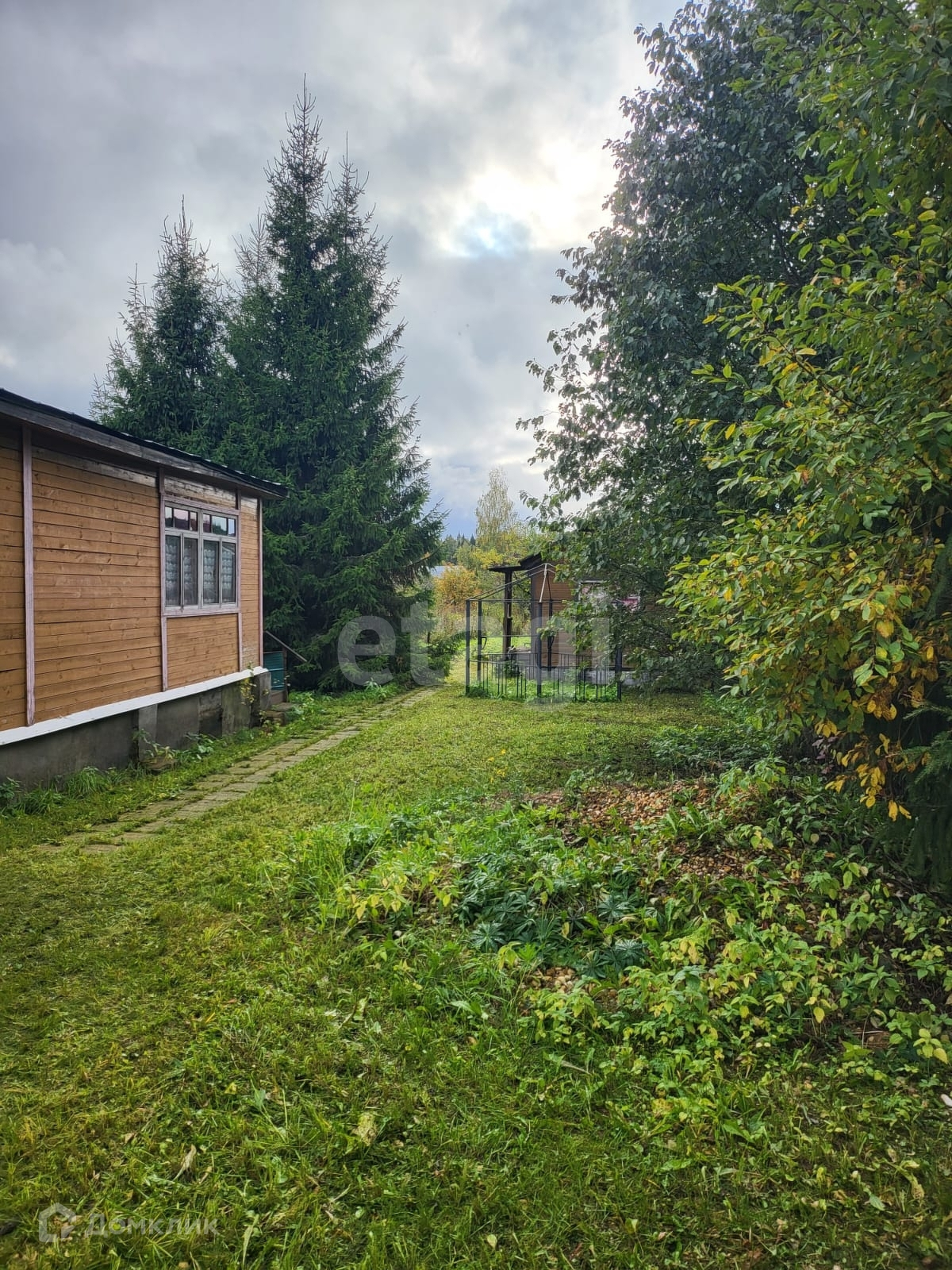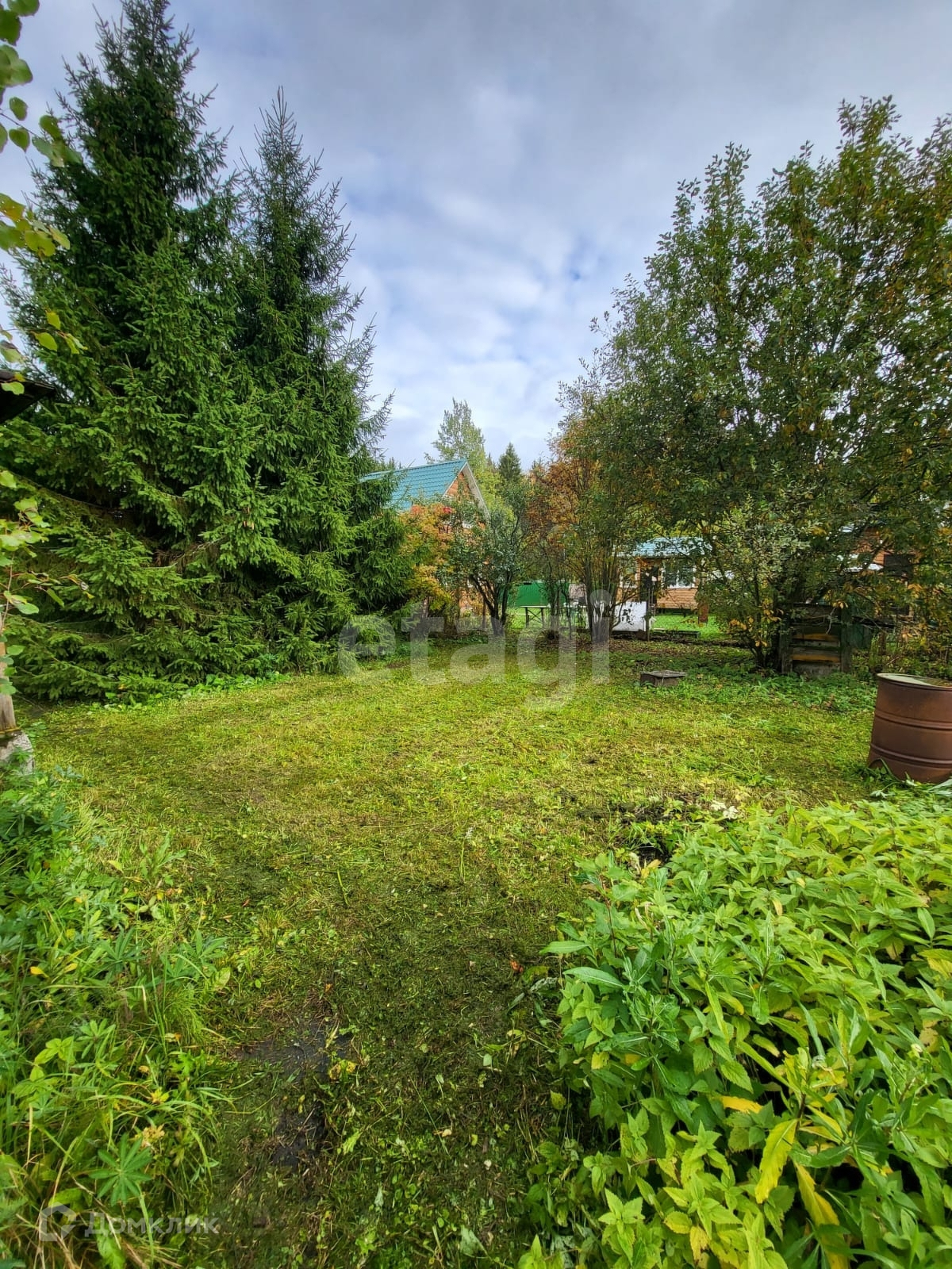 Ровный участок - дренажирован, дорожки выложены плиткой. Имеются колодец для полива, плодовые насаждения и высокие ели. Оборудовано машиноместо. Хоз.постройка стоит на бетонном фундаменте, планировалось сделать гостевым домом.