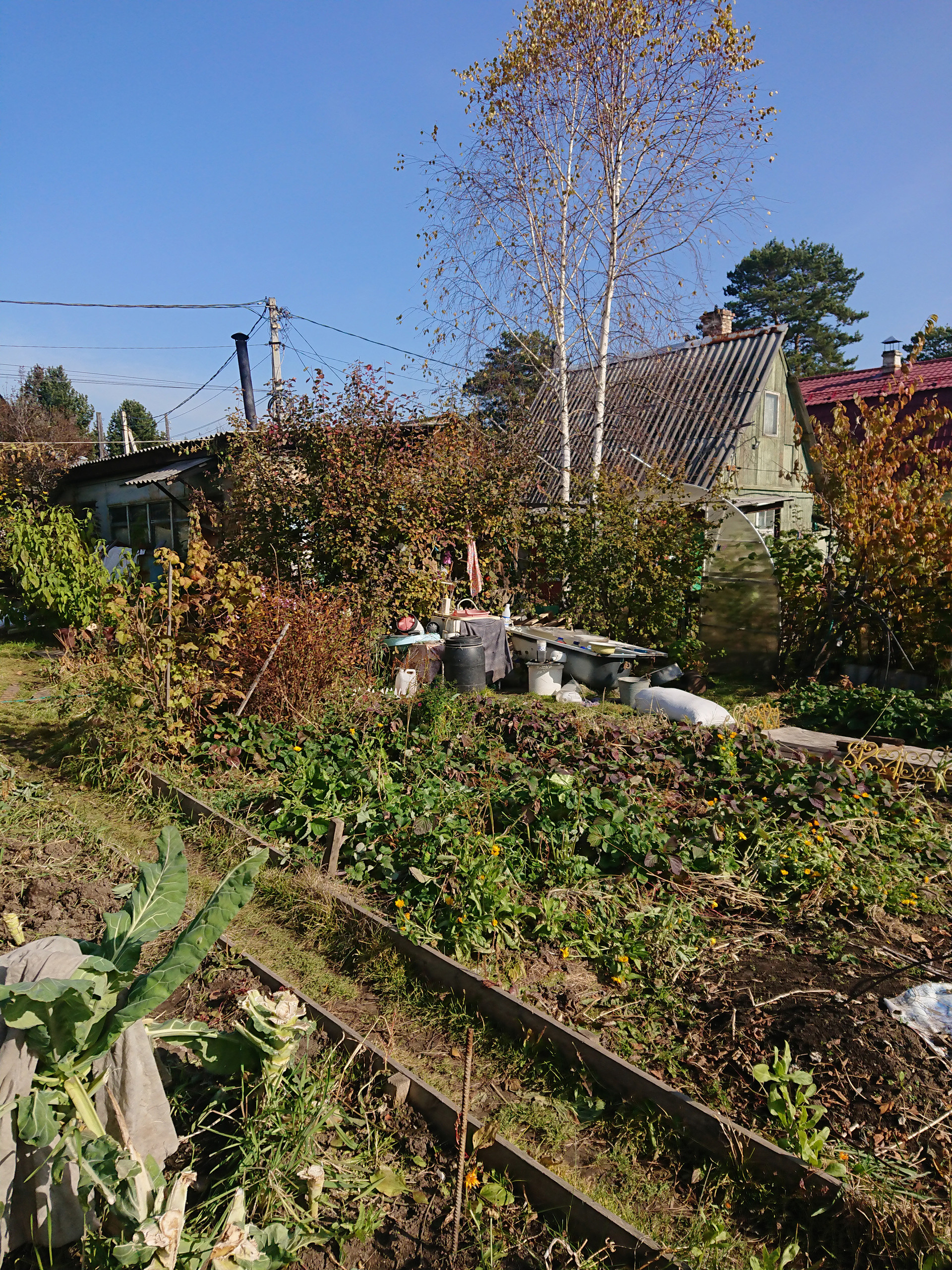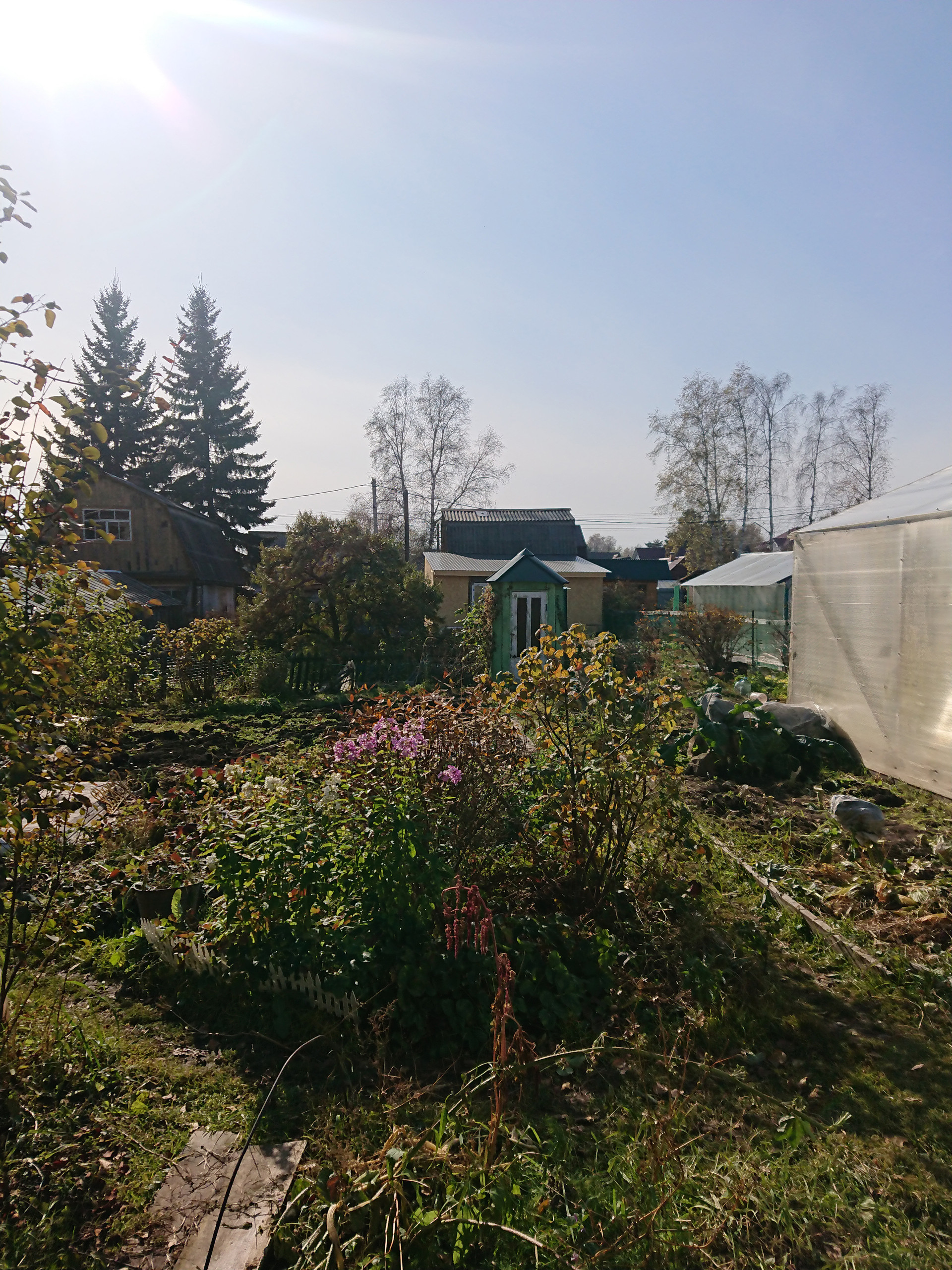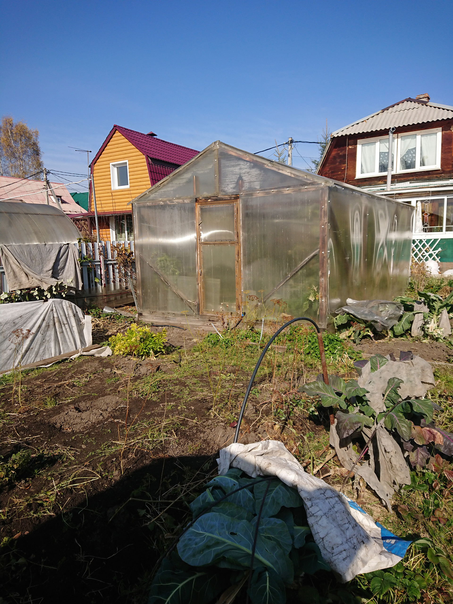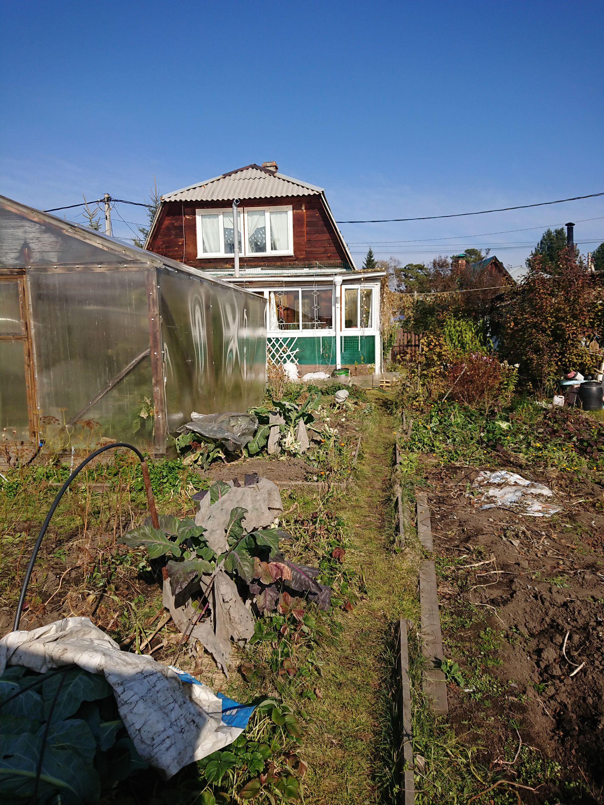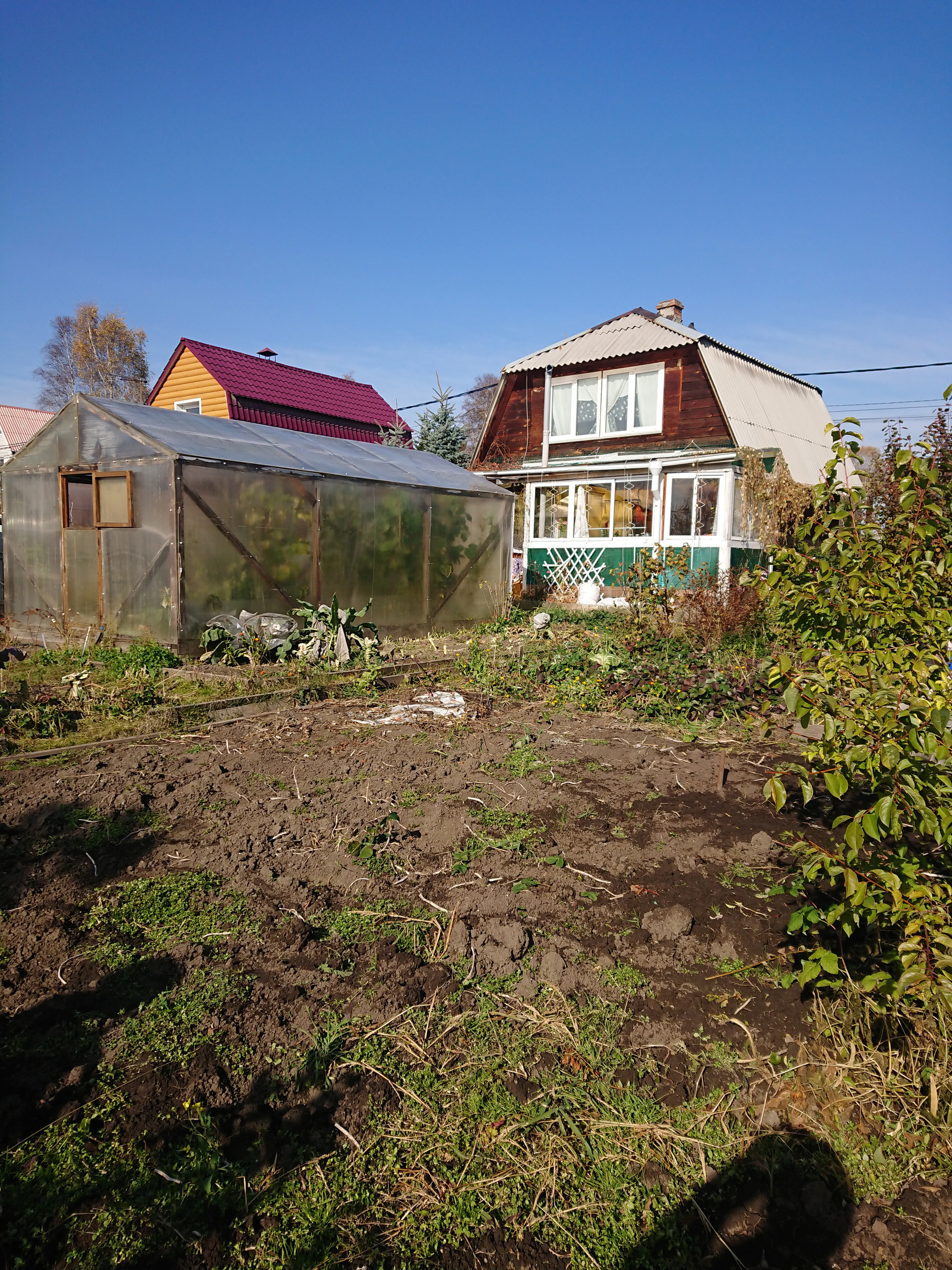 3) на участке теплица, баня, гараж.