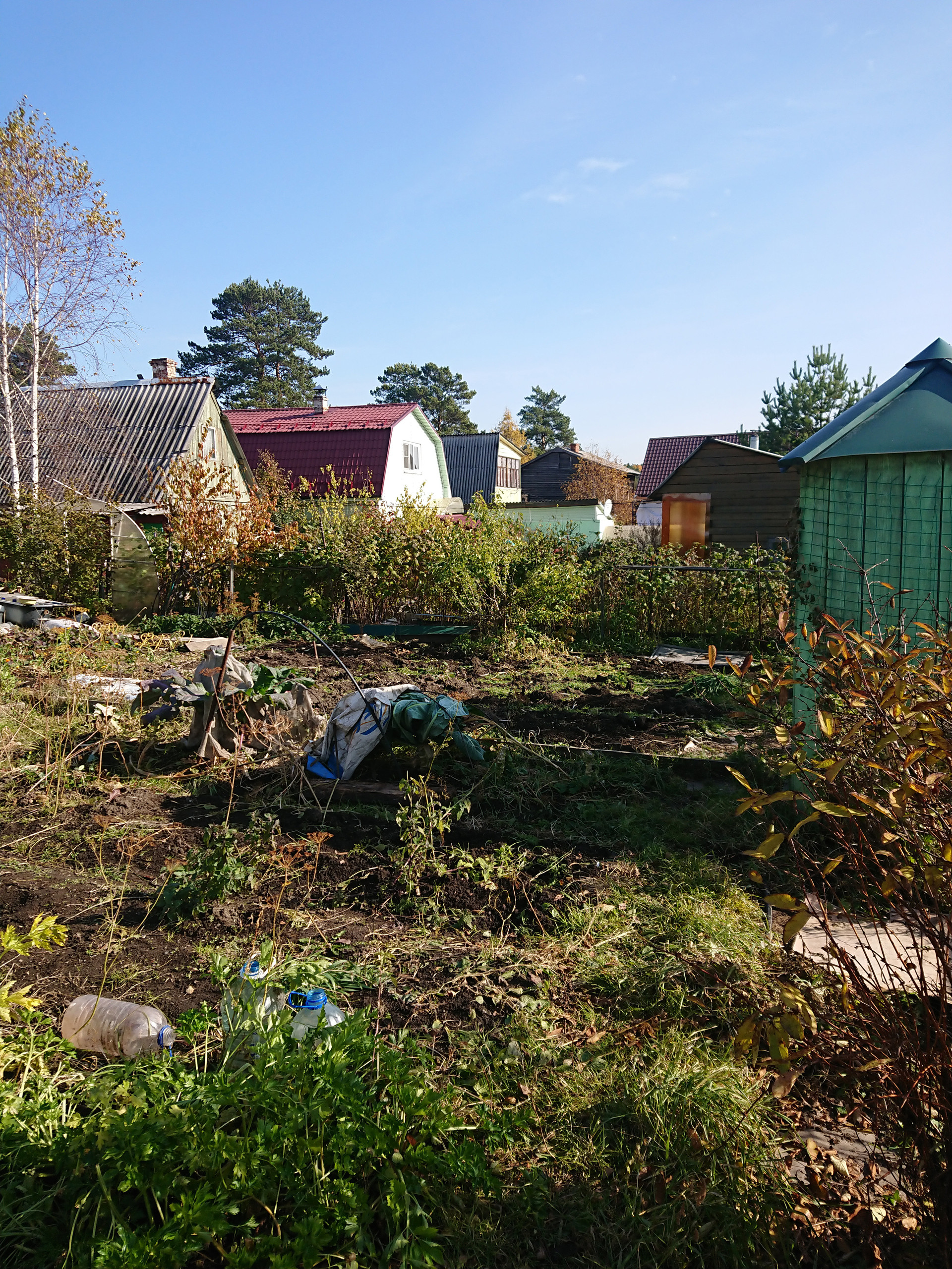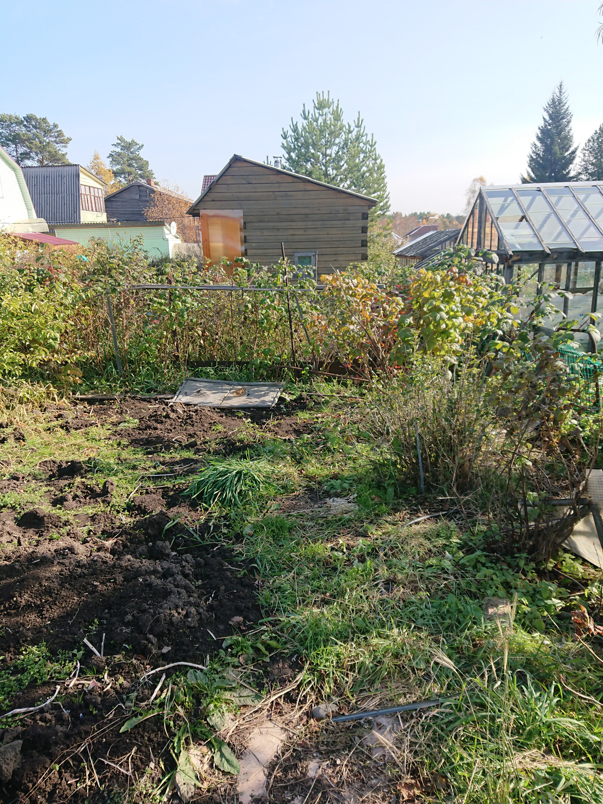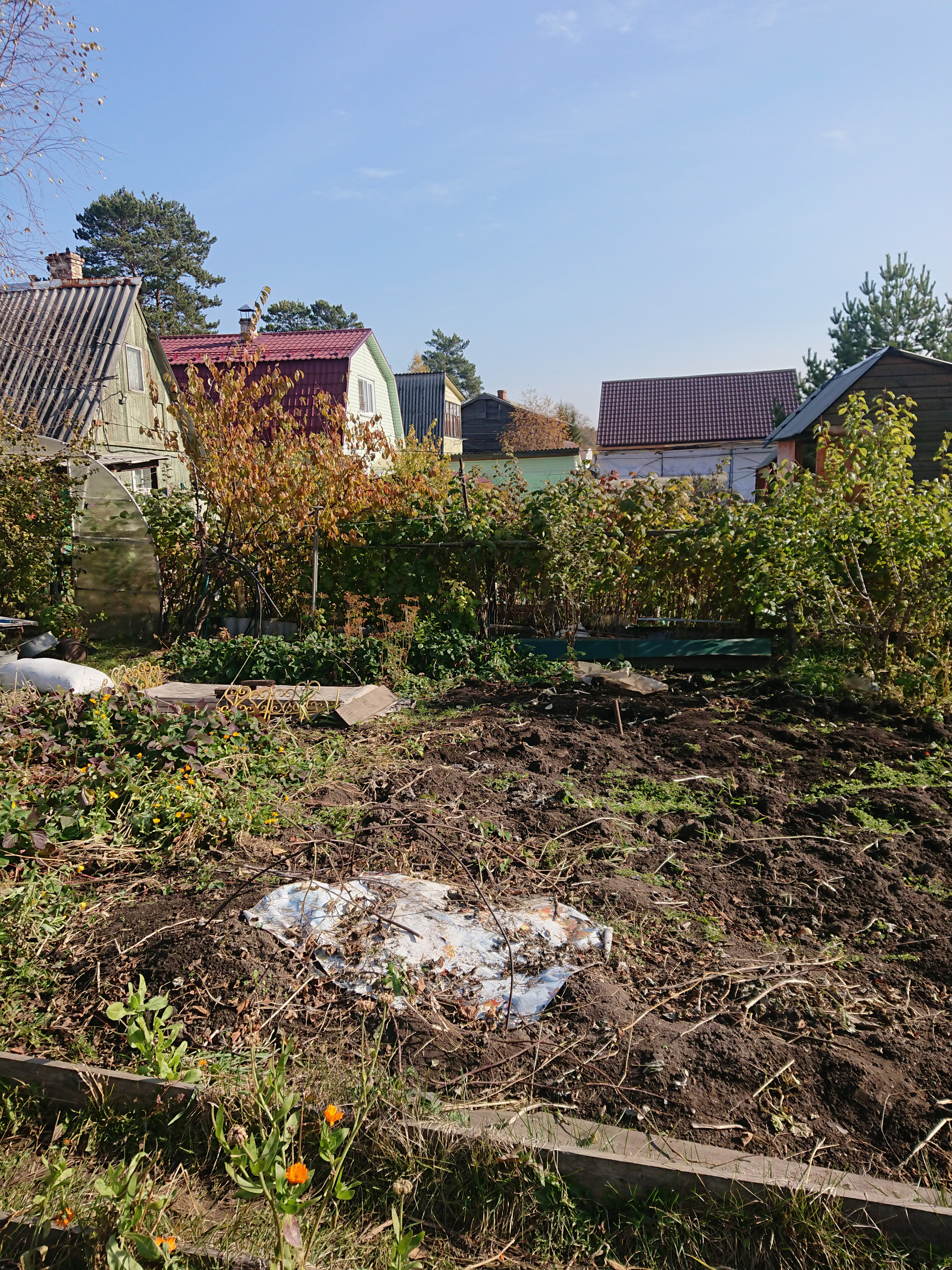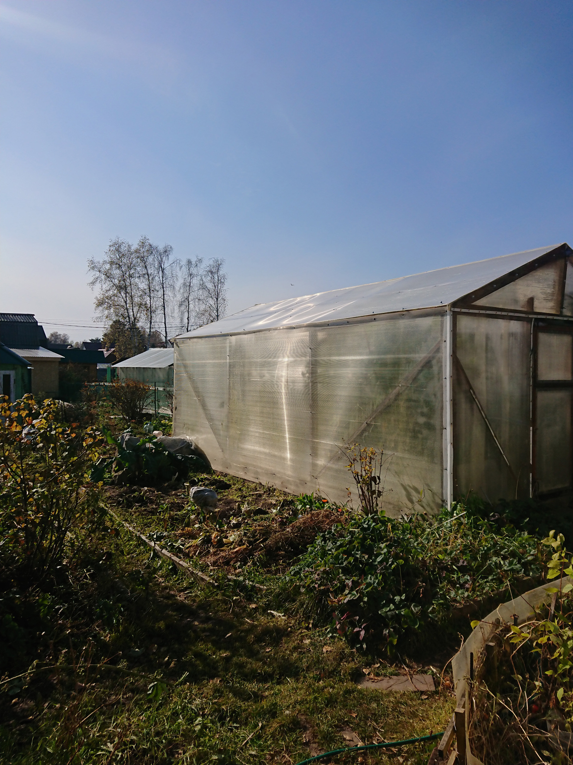 3) на участке теплица, баня, гараж.