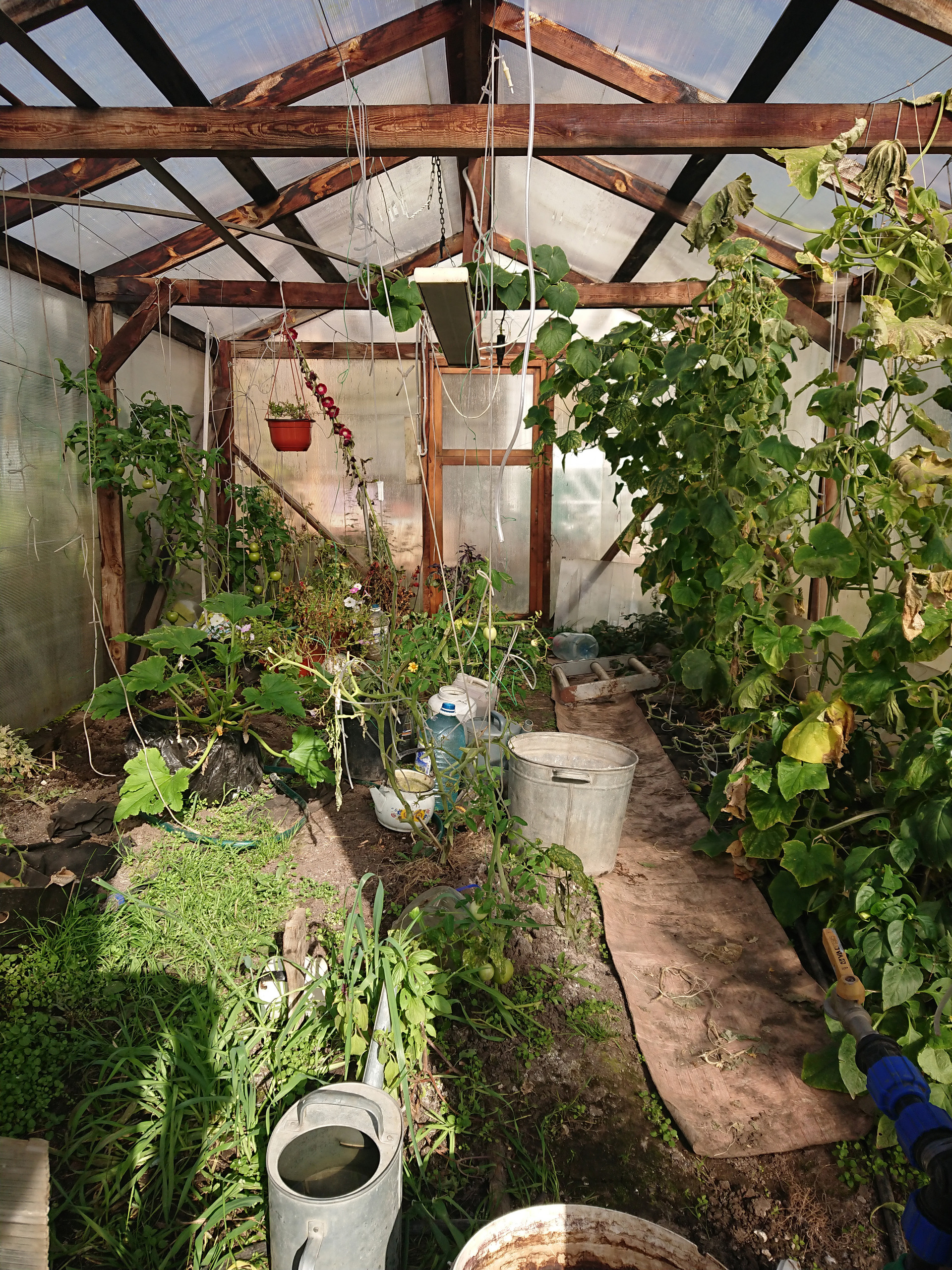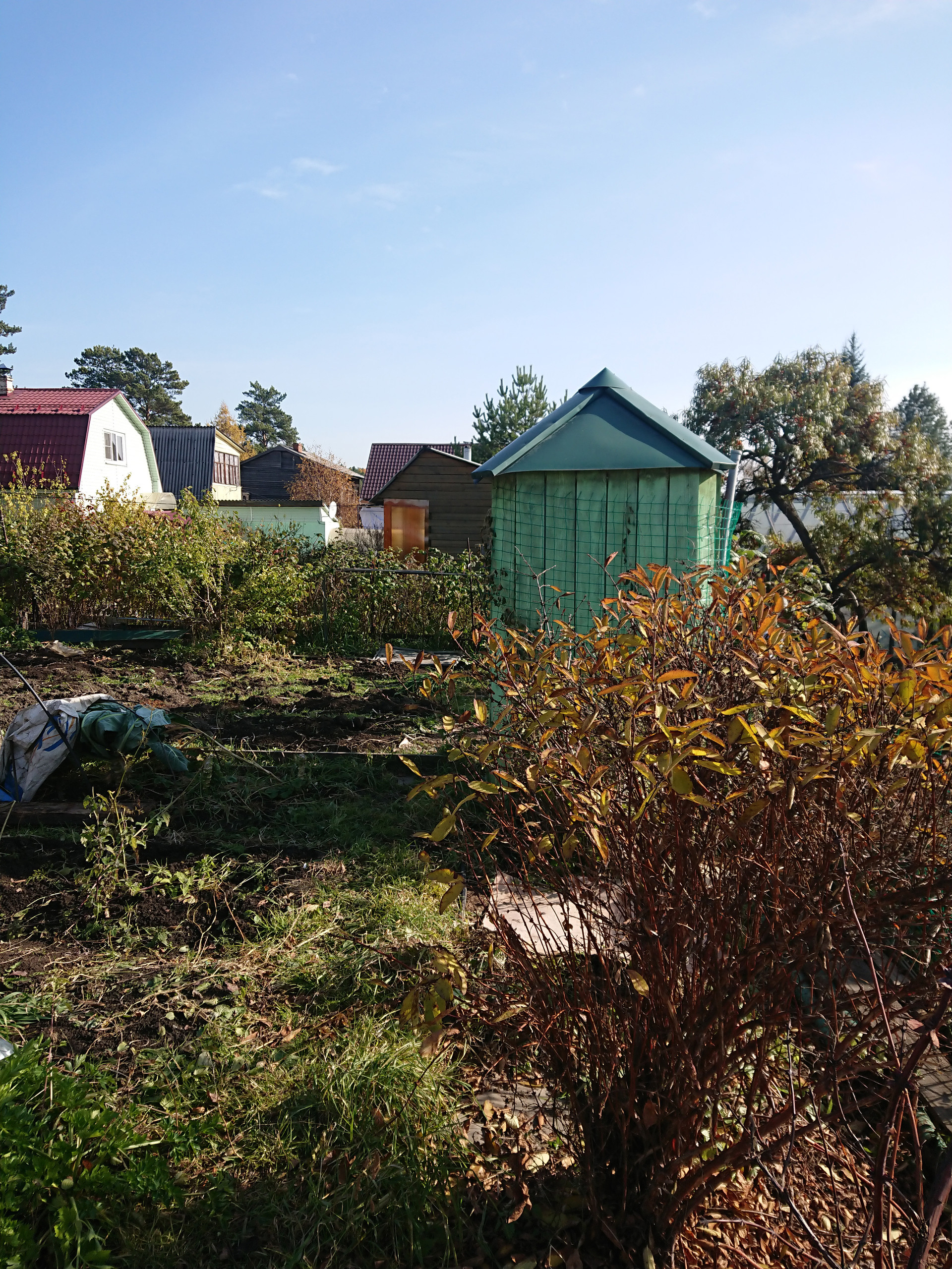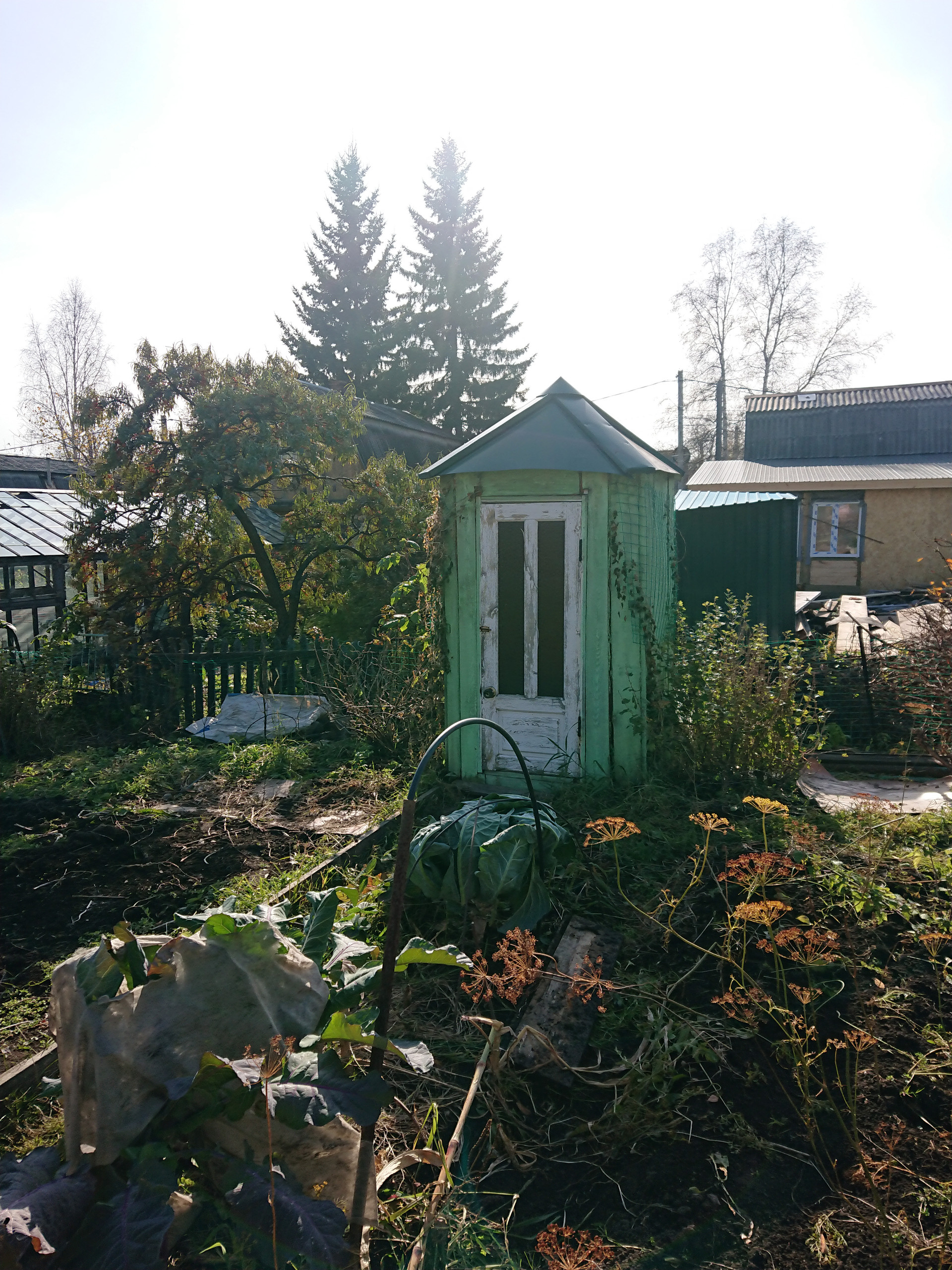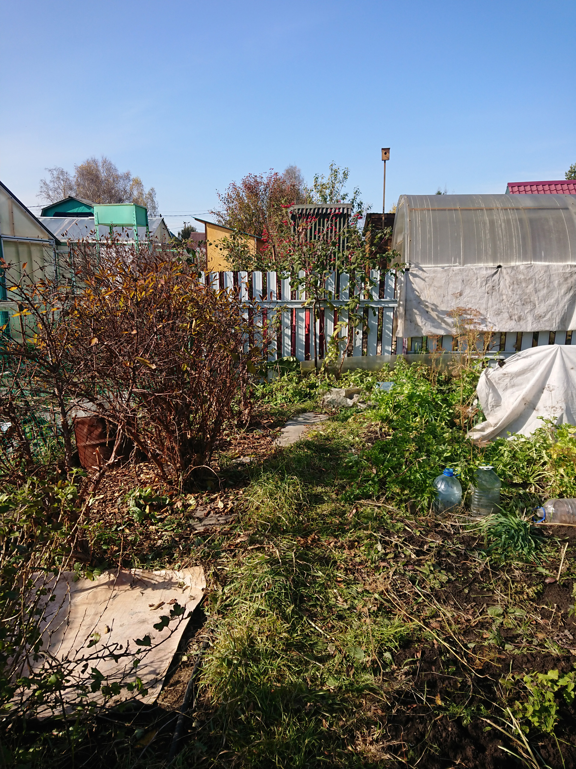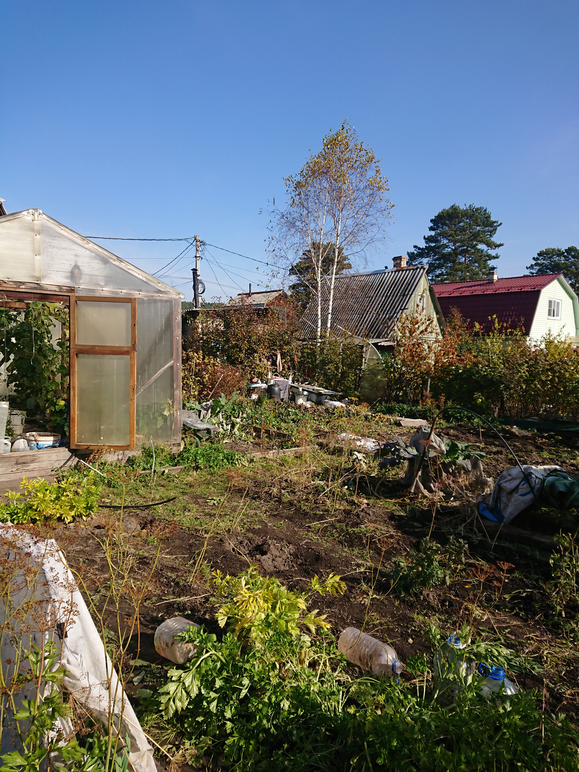 3) на участке теплица, баня, гараж.