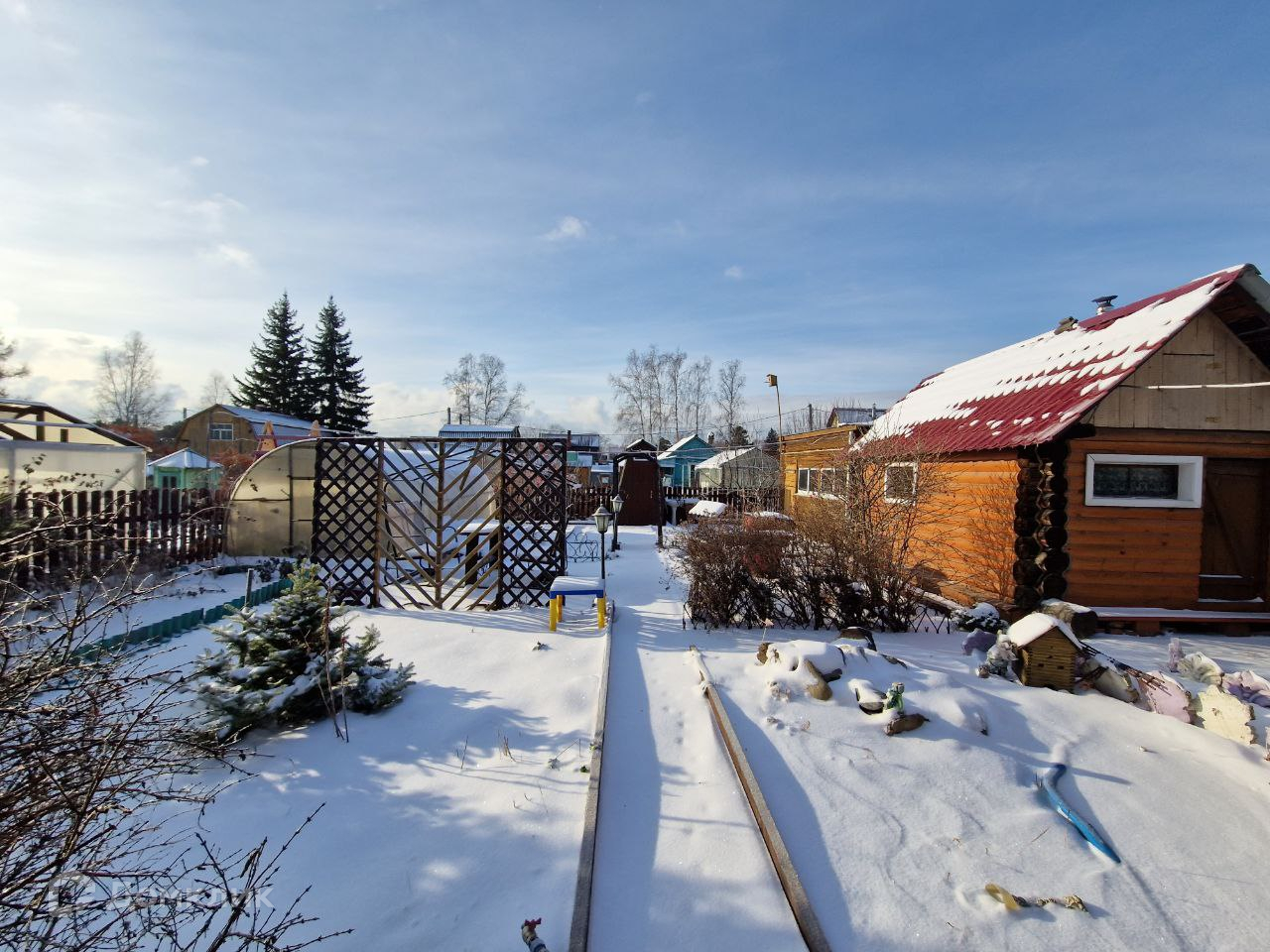 Участок 4 соток, правильной формы, ровный, сухой, полностью разработанный. Огорожен забором. Хорошие соседи с двух сторон. Охраняемая территория. Круглогодичный асфальтированный подъезд. Многие соседи проживают круглогодично.
