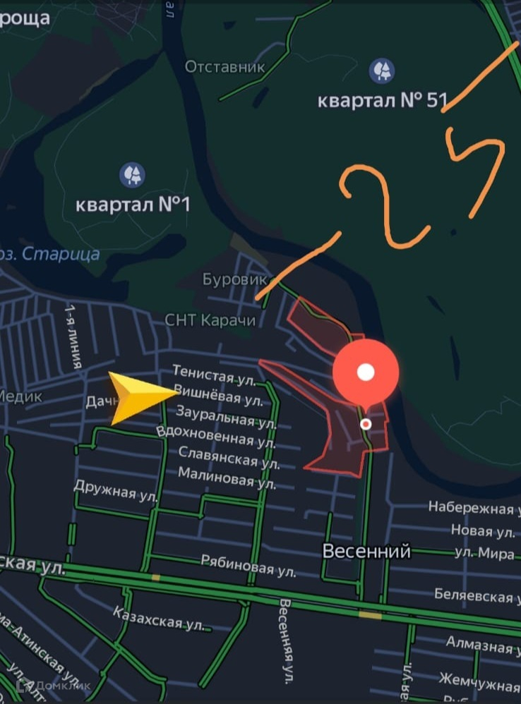 Удобный заезд с ул.Карачинская, в доступе вся инфраструктура п.Весенний и п.Южный. Чистый район! До Урала 3 мин пешком! Вокруг лес, тишина и свежий воздух!