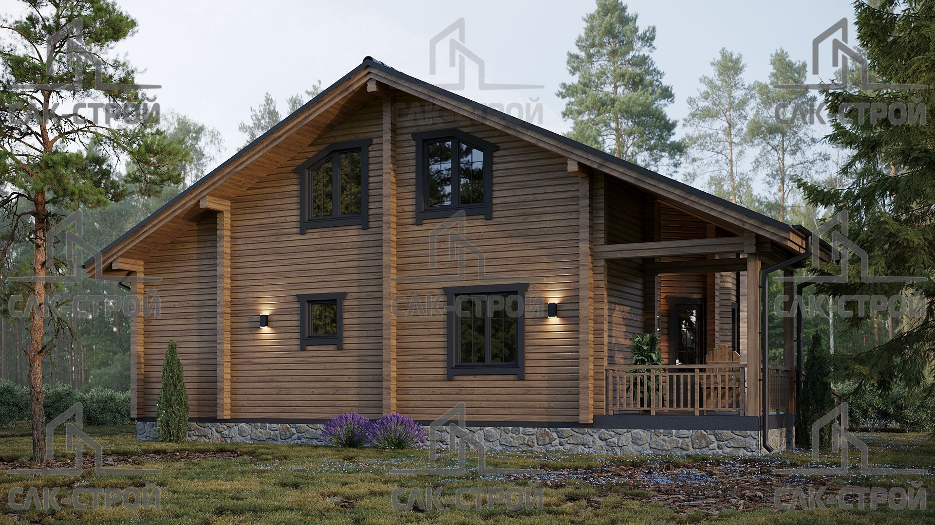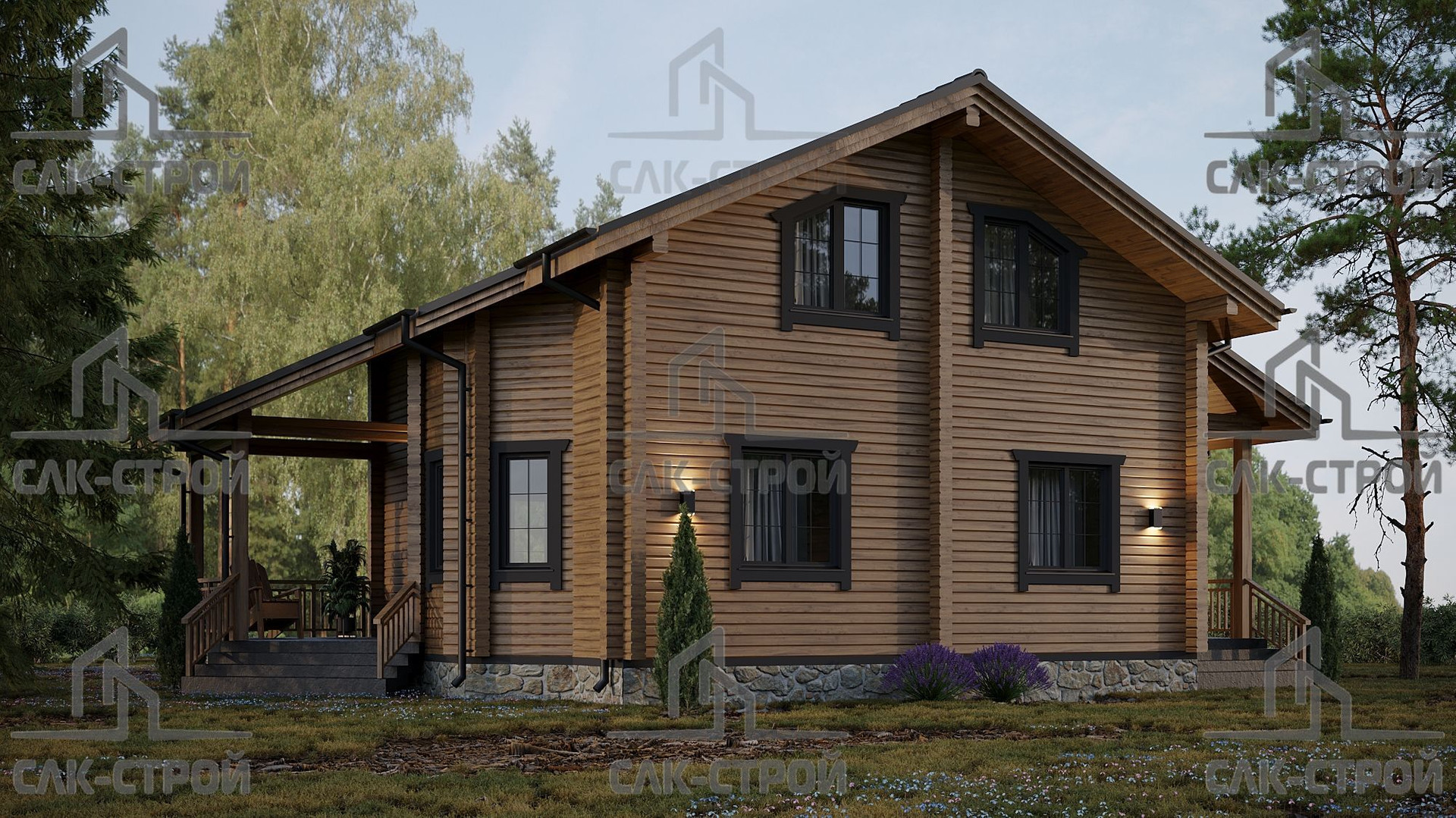 Дом стоит на ленточном фундаменте. Стены дома выполнены из бруса толщиной 190 мм, что гарантирует высокие теплоизоляционные свойства. Высота потолков составляет 2,8 метра, что создает ощущение простора и свободы.
