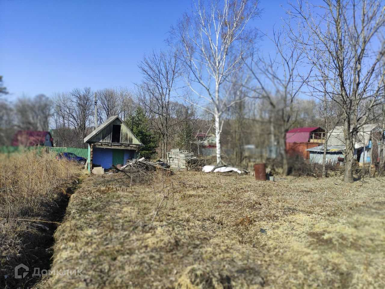Участок 9 соток, рядом есть небольшой пруд (там даже плавают утки временами). Оттуда можно брать воду для полива.