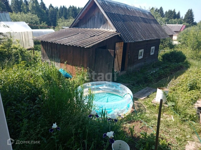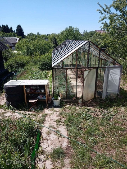 На участке имеется домик с мансардой общей площадью в 60 м2 из бруса, в хорошем состоянии баня и сарай под садовый инвентарь. Хорошая большая теплица.