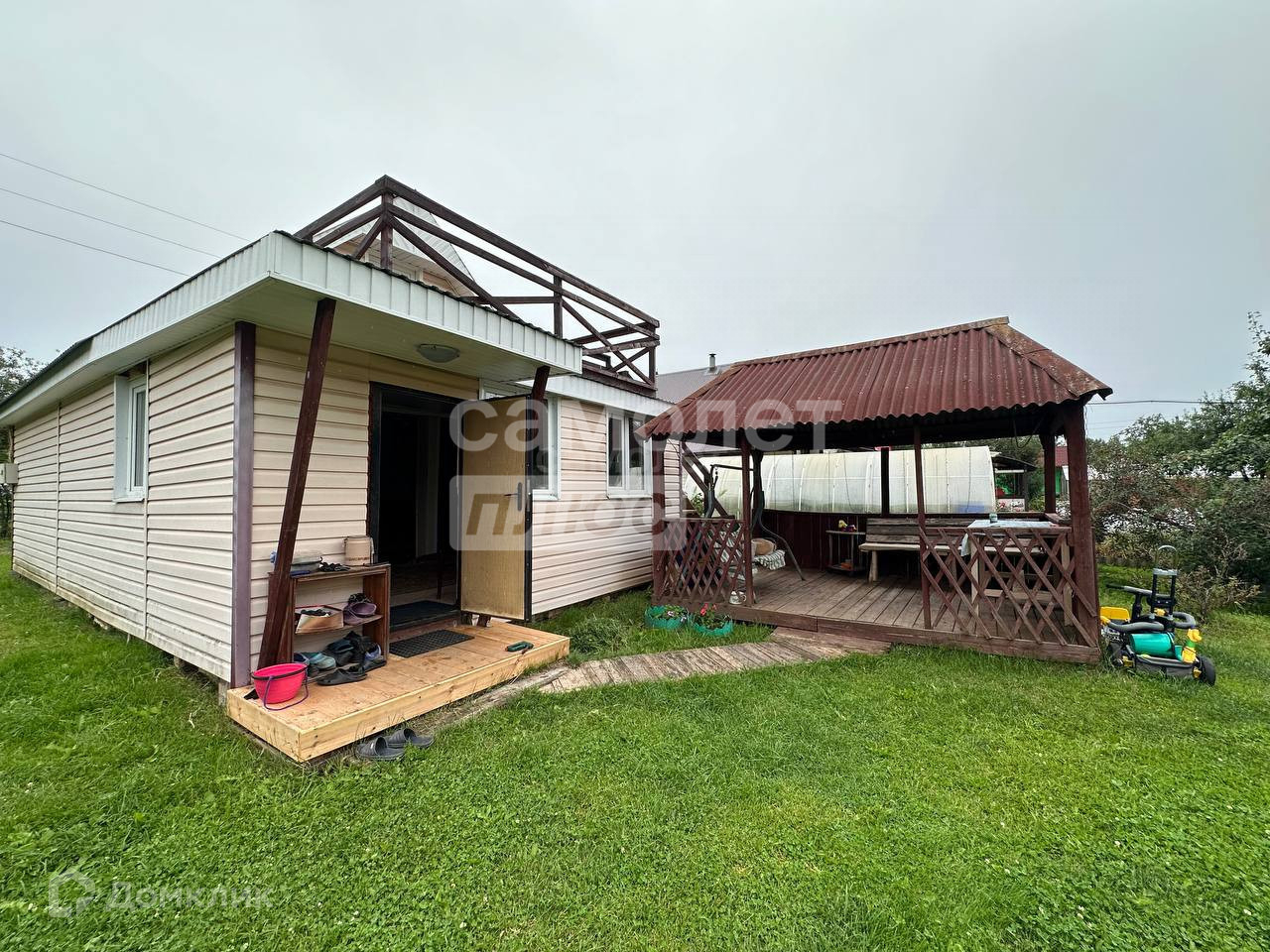 Арт. 72066486 В продаже садоогород с отличным месторасположением в 10 минутах от города.Дом расположен на большом участке 7.4 сотокПостройки на участке: баня с отдельной моечной и парилкой, с комнатой отдыха на 2 этаже, 2 теплицы, хоз блок, туалет.Рядом с домом расположена беседка.Дом из бревна с каркасным пристроем, обшит снаружи сайдингом, кровля профнастил, пластиковые окна.При входе большая кухня гостиная 30м, остается кухонный гарнитур и вся мебель.В доме печное отопление.Второй мансардный этаж с выходом на балкон.Покажем в любое удобное для вас время.