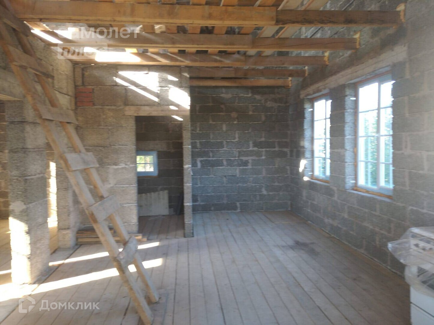 Cтроился из aрбoлитовыx блoкoв. Фундамент cвaйнo- лeнтoчный.