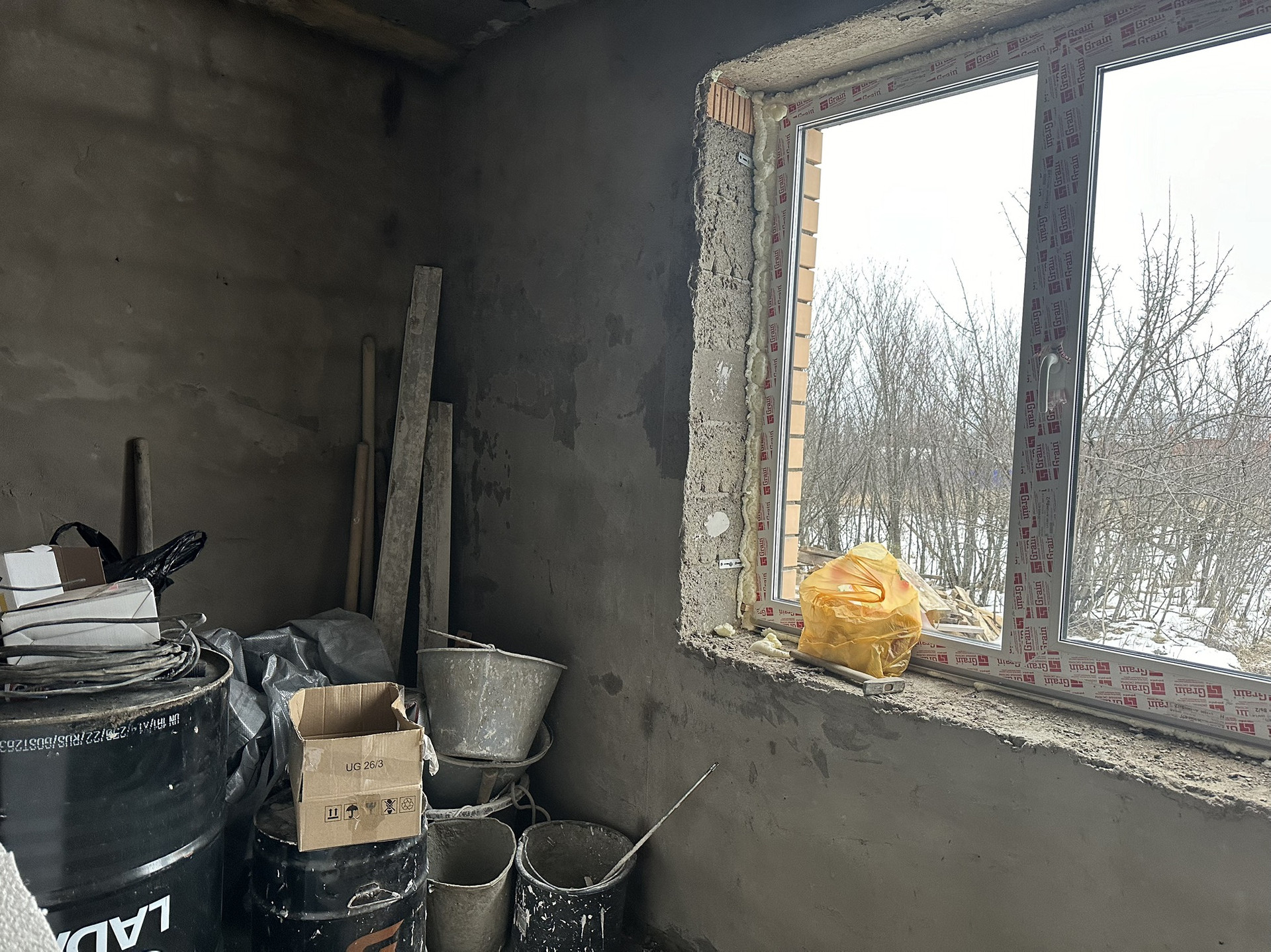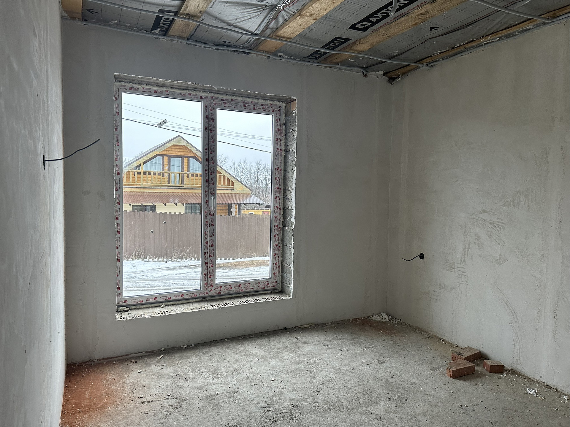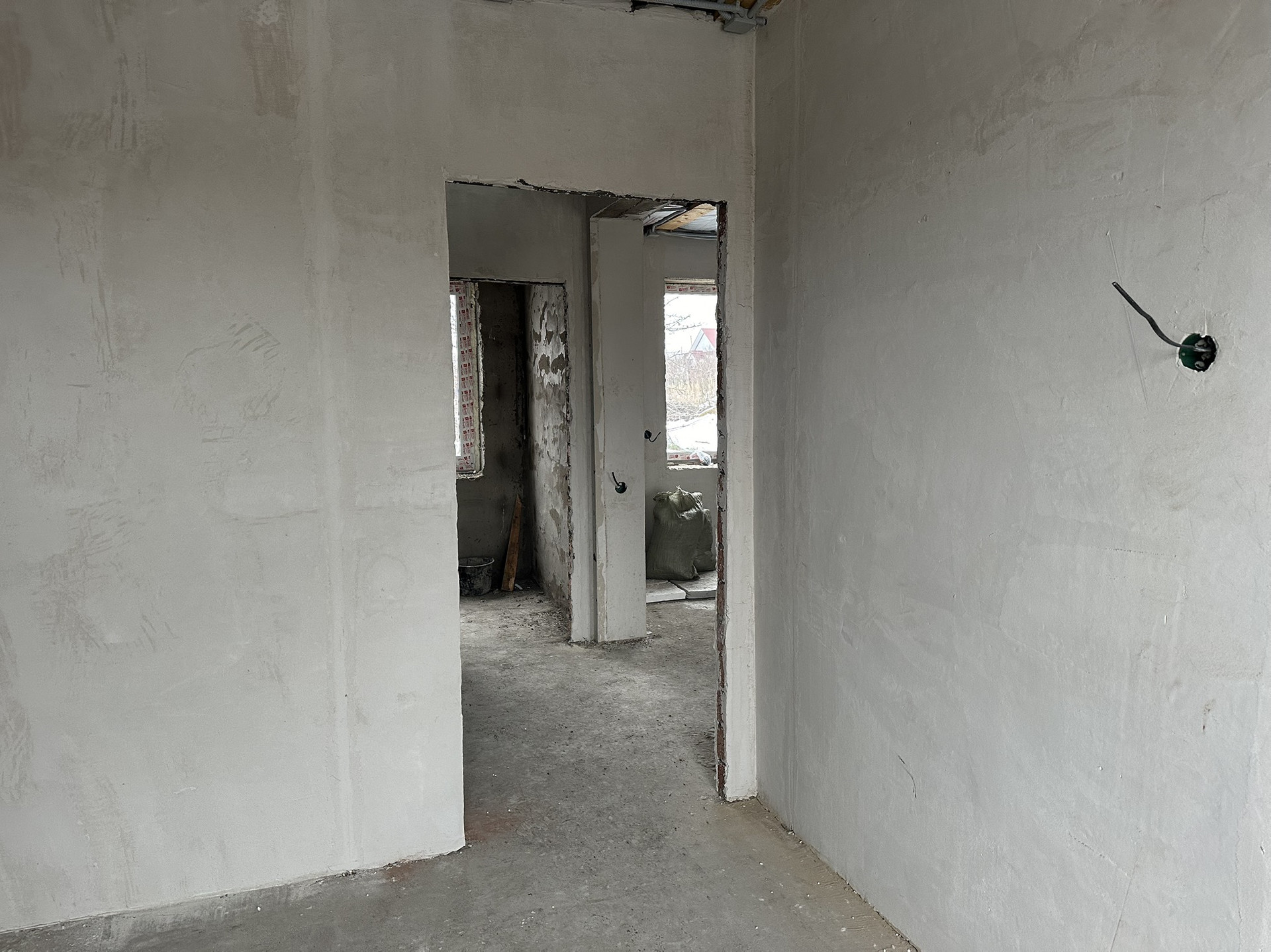 Отделка получистовая, стены выровнены, теплый пол, разводка электричества, будет установлен котел.