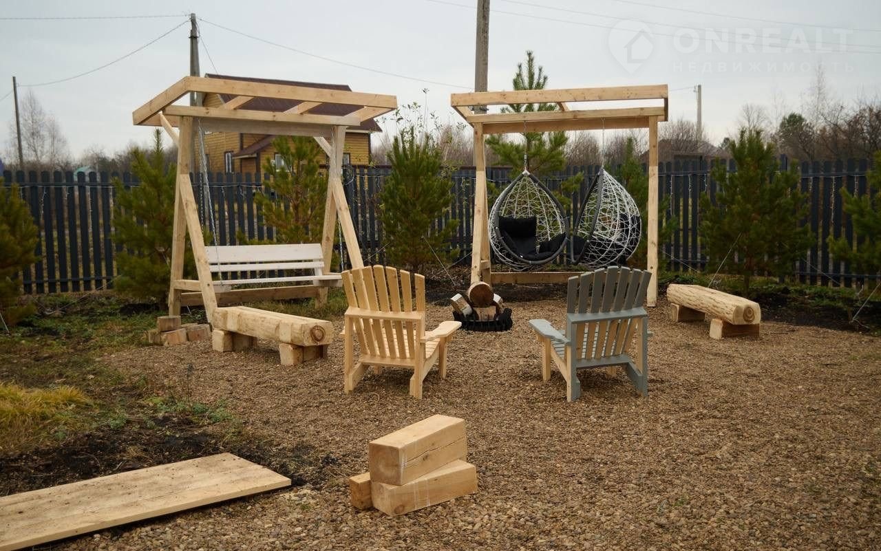 • Костровая зона с дубовыми лавками и качелями