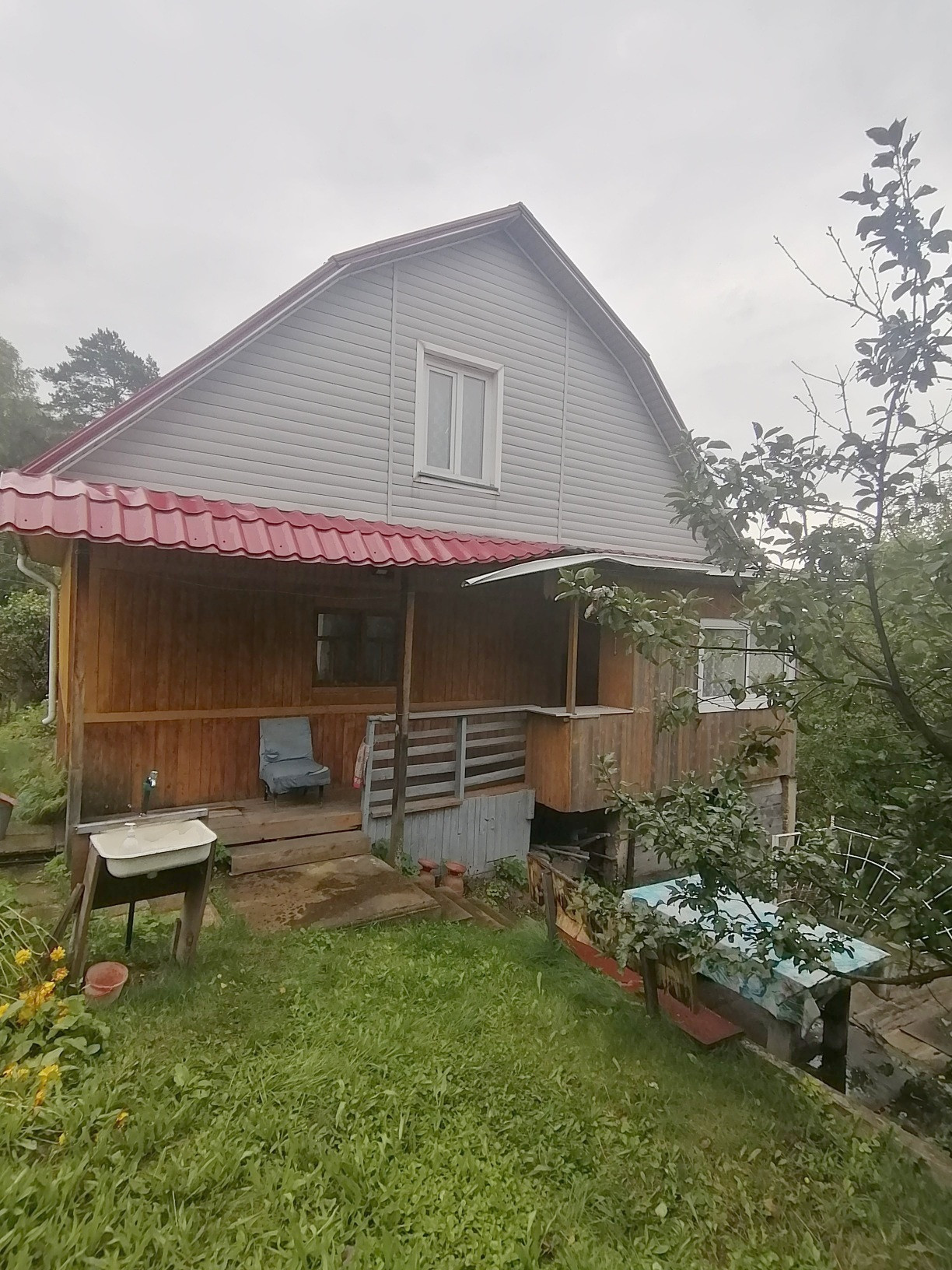Предлагаем к продаже Жилой дом с земельным участком в живописном месте. Дом 2х этажный, построен из бруса (не шпалы!), внутри обшит деревом, установлены пластиковые окна, на первом этаже небольшая веранда, кухня 12м2 и комната 30м2, на втором этаже комната 18м2. Отопление печное, в дом проведена вода, есть слив. Под домом есть гараж, площадка перед гаражом выложена плиткой. Хорошая, теплая банька, подведена вода. На участке имеется большая емкость для воды, посадки вишни, груши, яблони, в шаговой доступности родник. Рядом озера, речка, сосновый лес. Проезд круглый год, автобус, электричка. Возможна покупка с использованием материнского капитала и ипотеки. Продажа, документы готовы