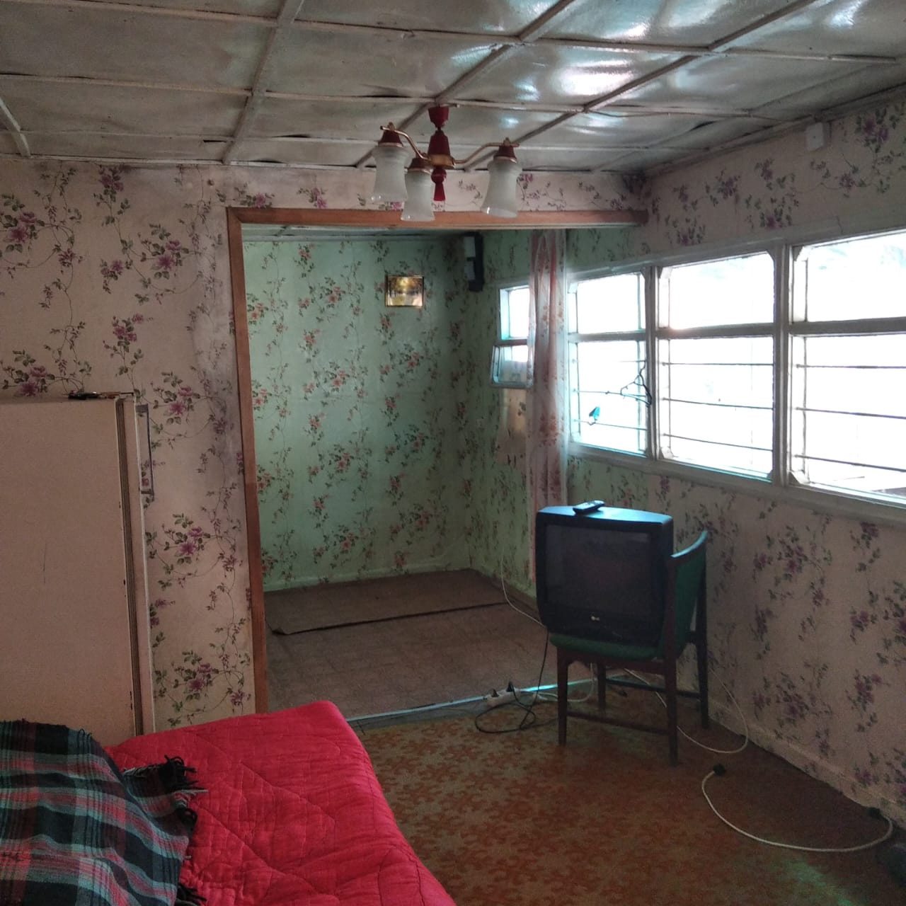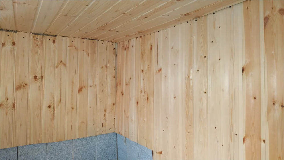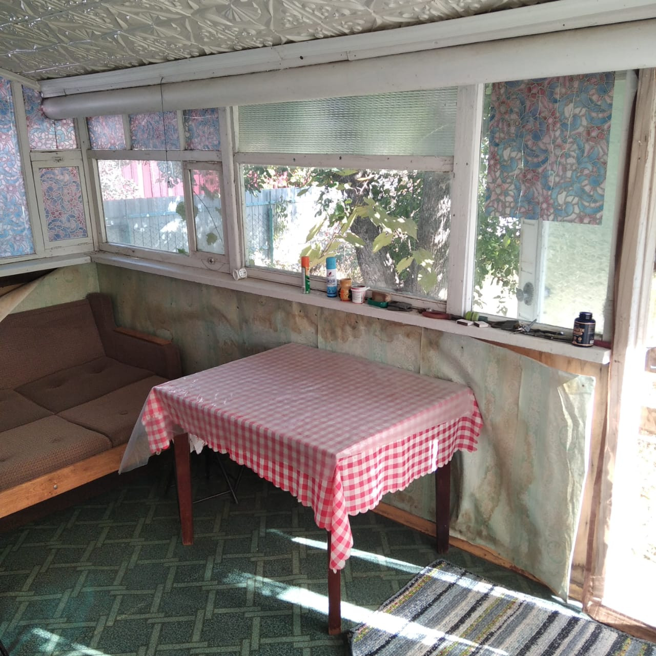 На участке жилой вагончик 18 кв.м. + деревянная пристройка, всё утеплено стекловатой и обшит сайдингом. В доме кухня и просторная комната, разделенная на две зоны.