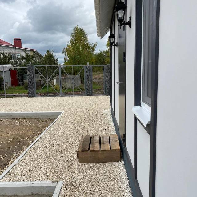 -выполнены работы по благоустройству (парковка под 2 автомобиля, отмостка, пешие тропинки)