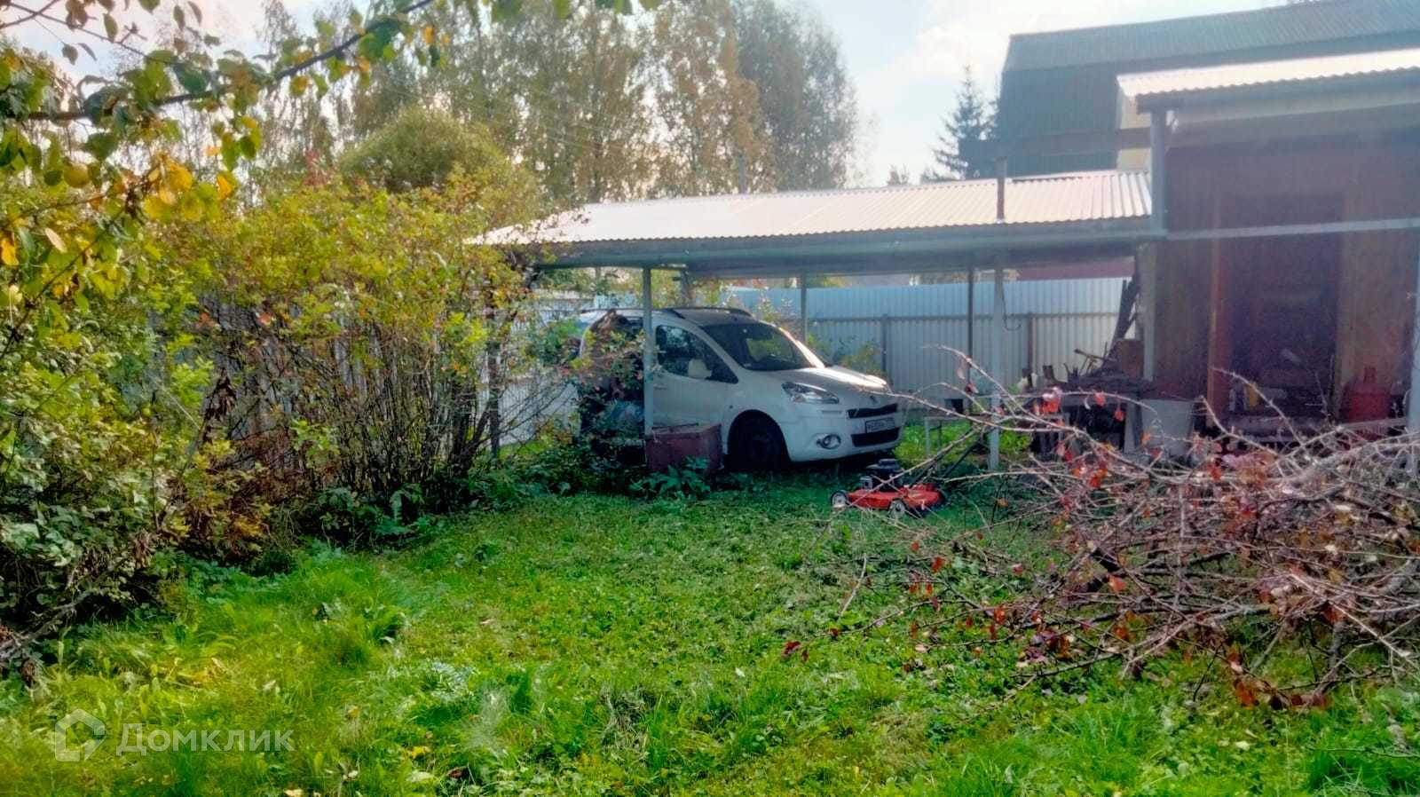 Баня с большой крытой верандой . На участке также дровяной сарай. Навес для автомобиля.