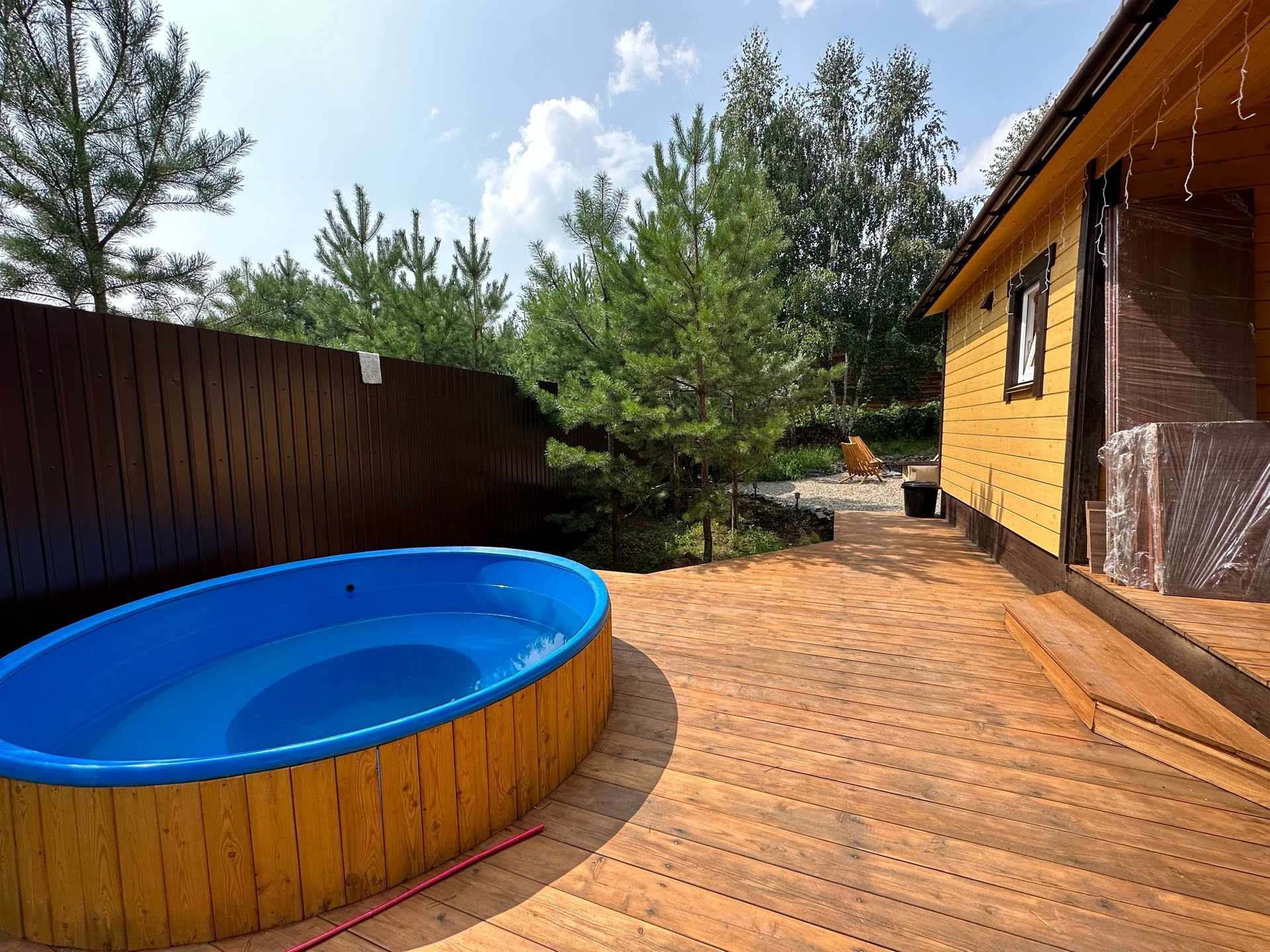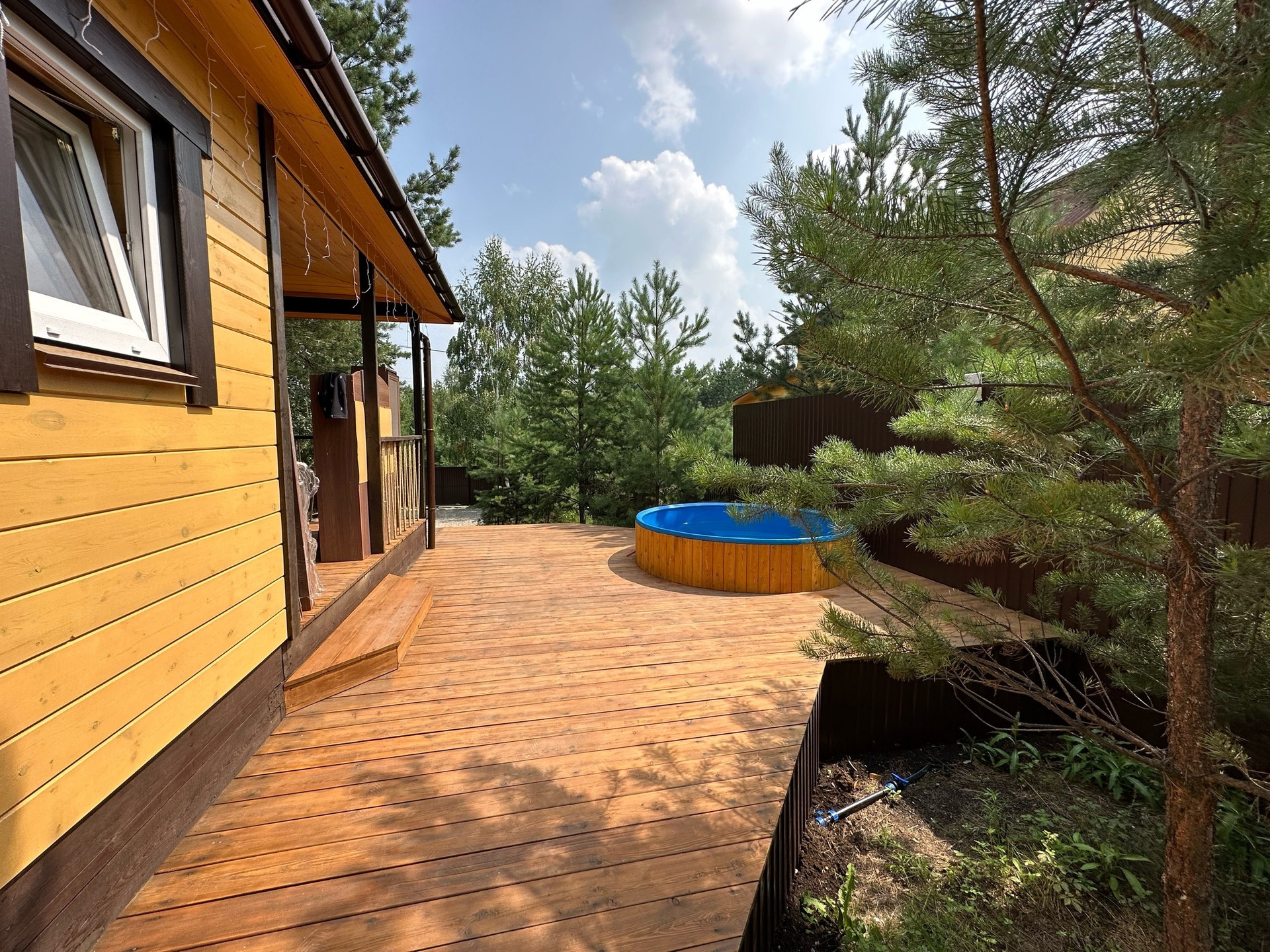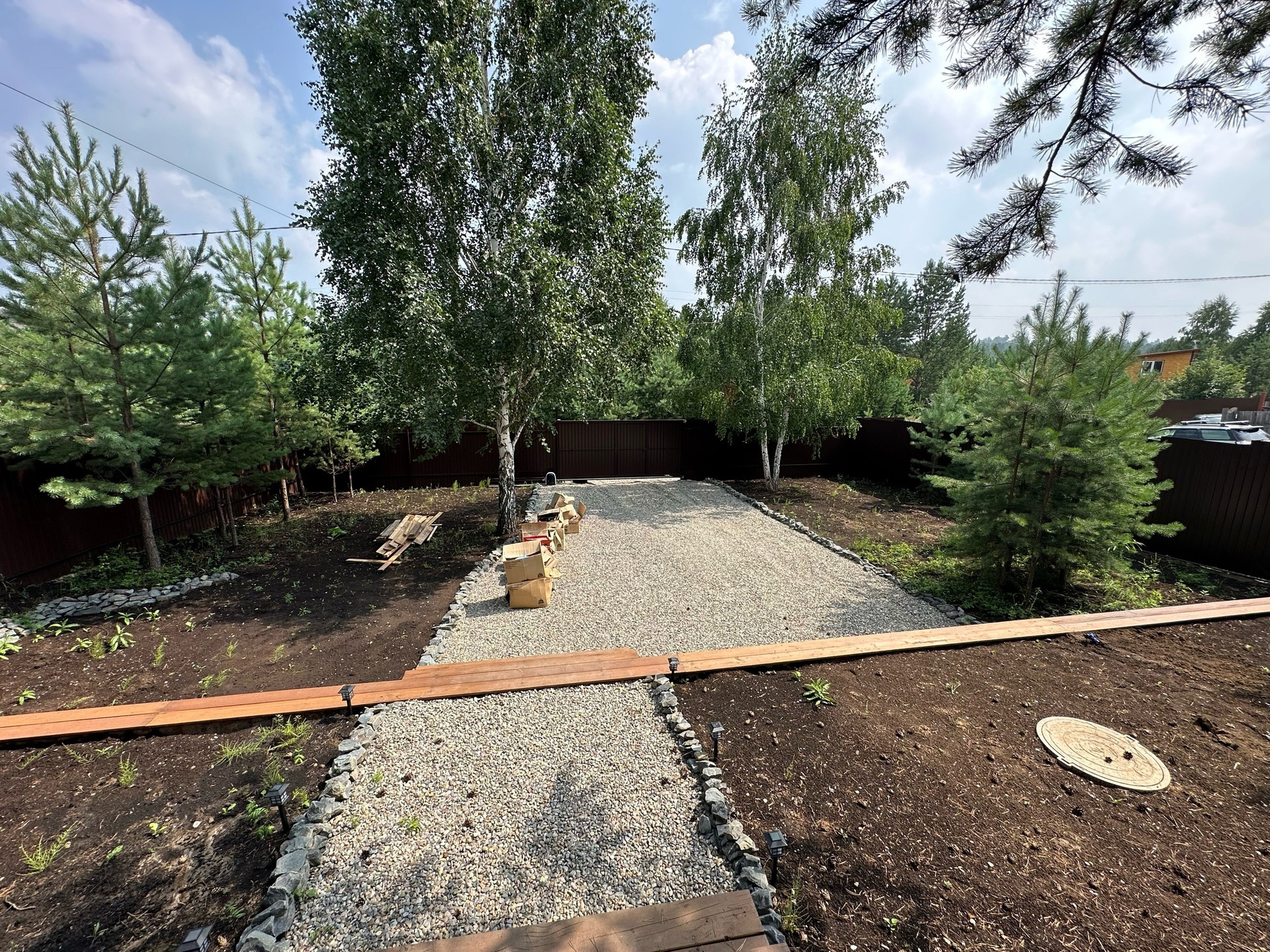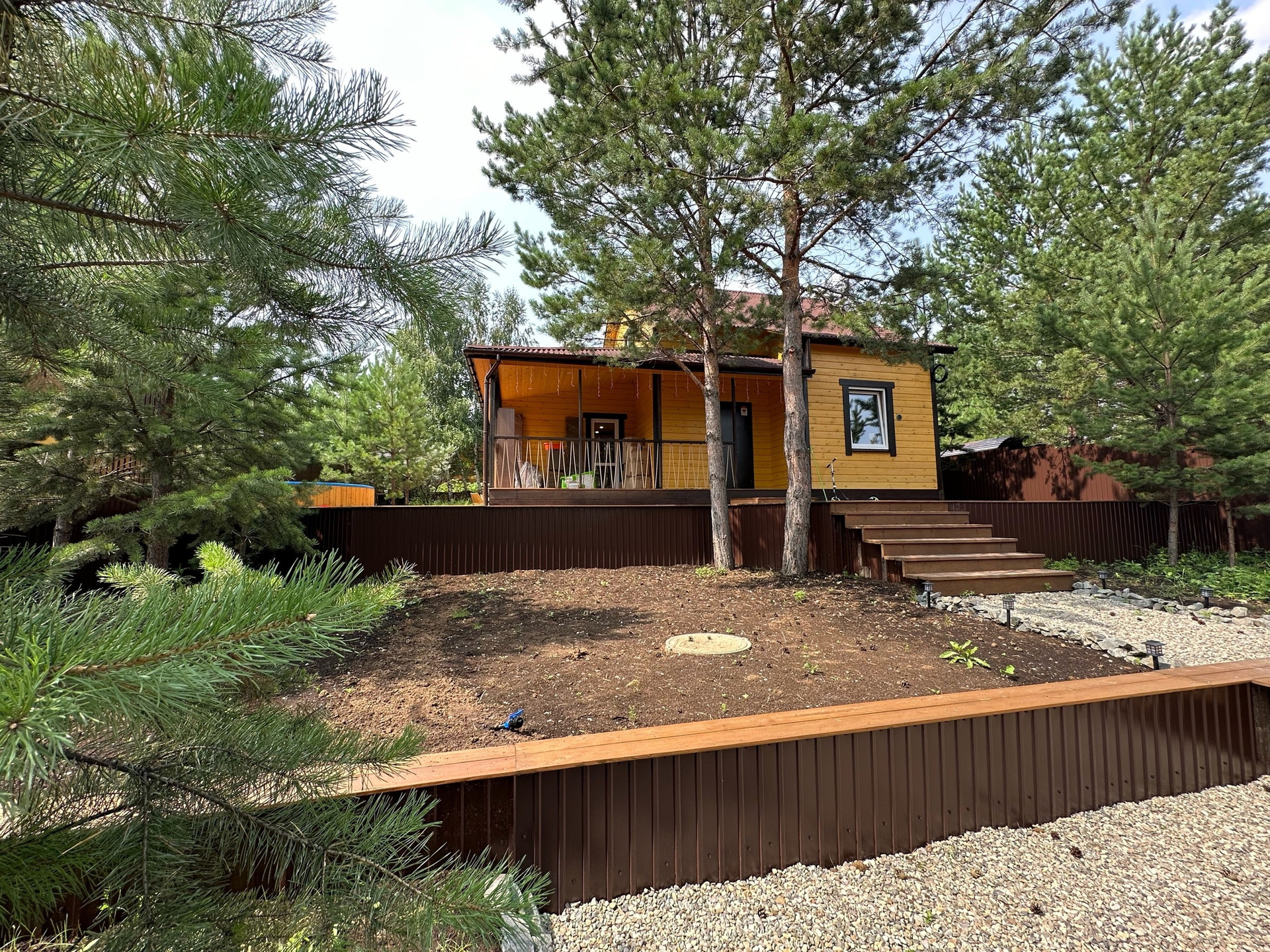 Участок огорожен со всех сторон (лицевая сторона профлист).