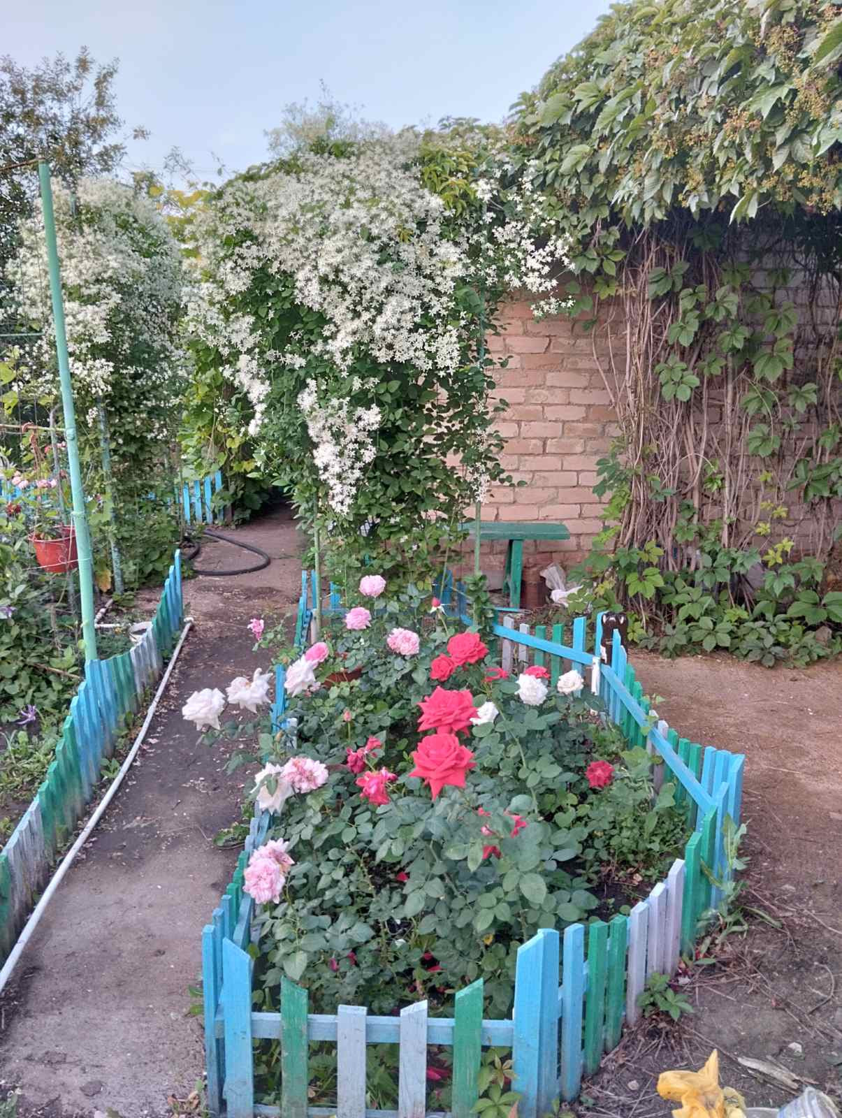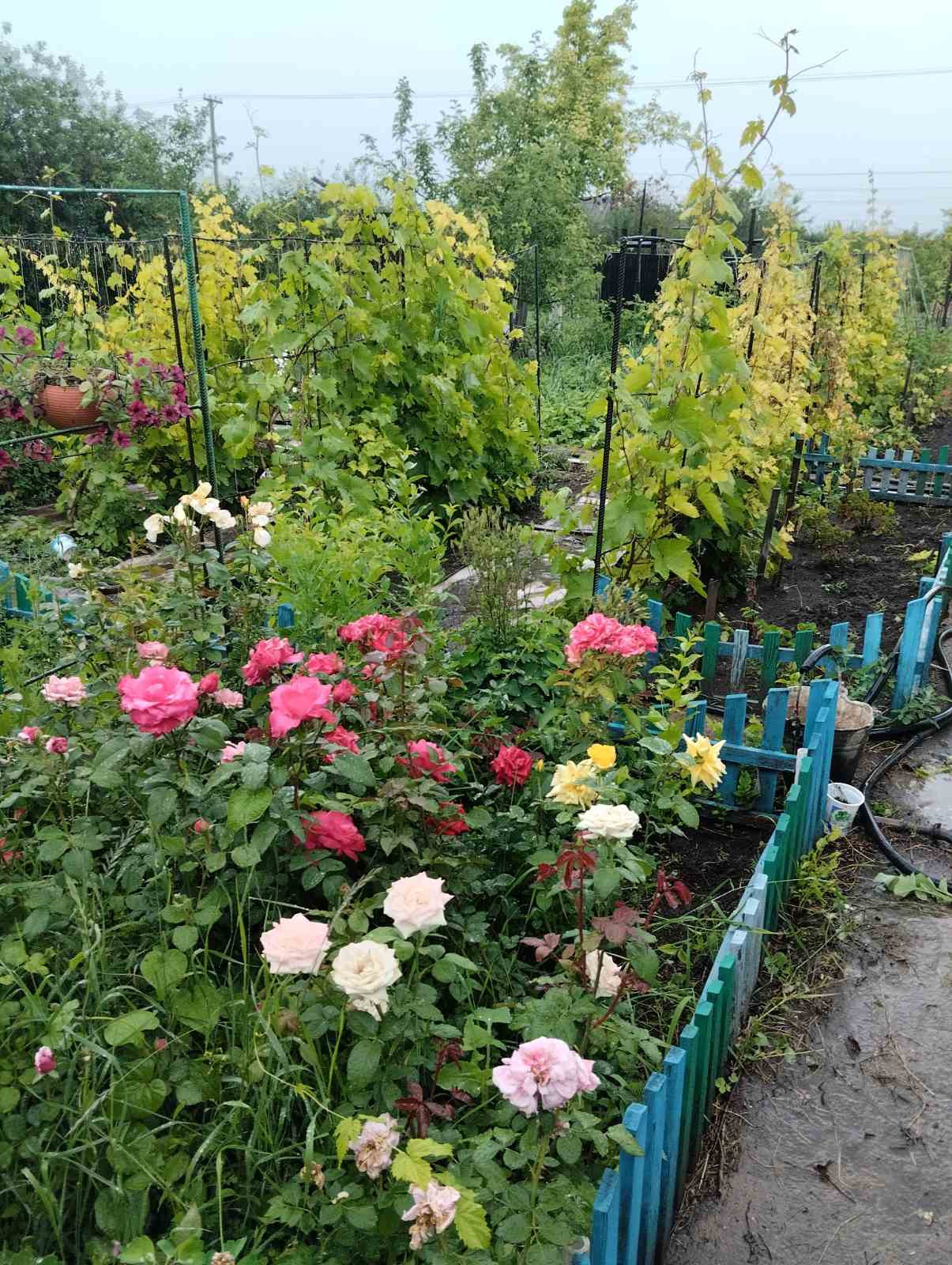 Множество клумб :около 150 роз и другие цветы. 11 рядов винограда, клубника, малина. На втором участке все для выращивания овощей,ягод, фруктов ( яблони,смородина,малина,репис, крыжовник,вишня). Централизованный полив с р.Урал.,по участкам разводка для полива. На первом участке кирпичный домик состоящий из 3 комнат: 12 м2 зал, 10 м2 спальня, кухня 5 м2. Уютная теннисная зона для чаепития, где в любую жару прохлада, мангальная зона. Для машины стоянка под живым навесом ,дорожки забетонированы.