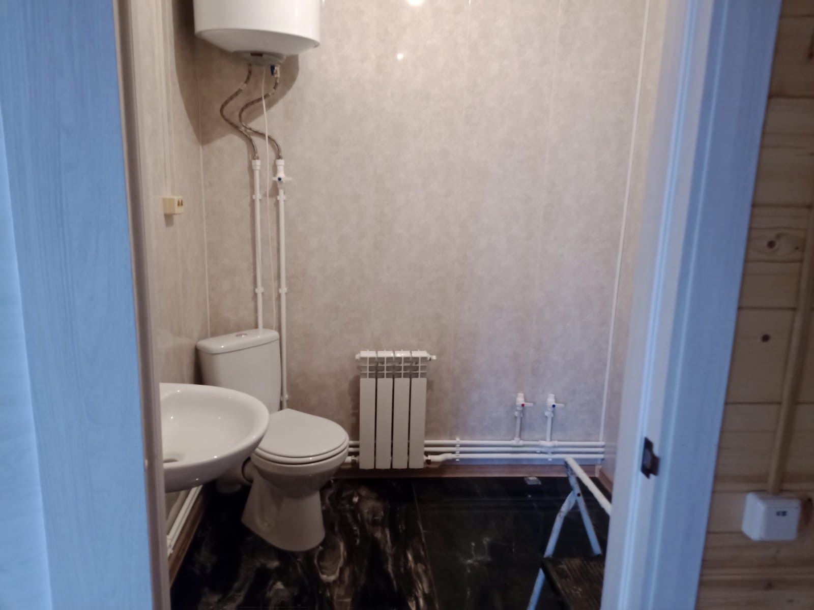 В 10-ти минутной доступности (на машине) школа, детский сад, сбербанк, магазины продуктовые и хозяйственные, аптека, почта. В доме- туалет, ванная, канализация разведено по дому, вывод сделан в септик, двойной переливной с выводом в дренаж (вызов машины в год один раз). Водоснабжение – горячая, холодная. Отопление - электрический котел. Электрика разведено по дому, установлен счетчик Аску, для прямого договора с Мосэнерго.