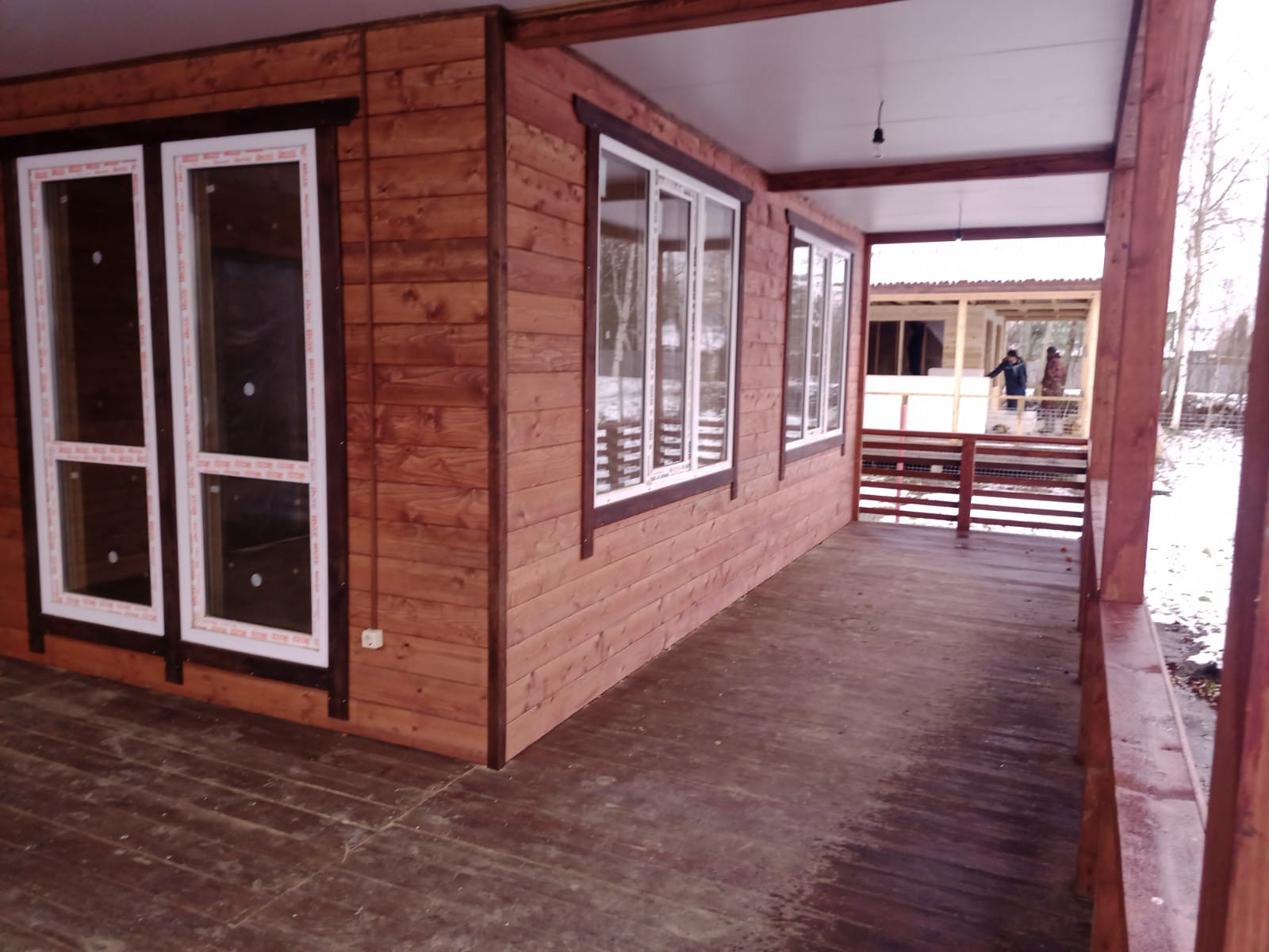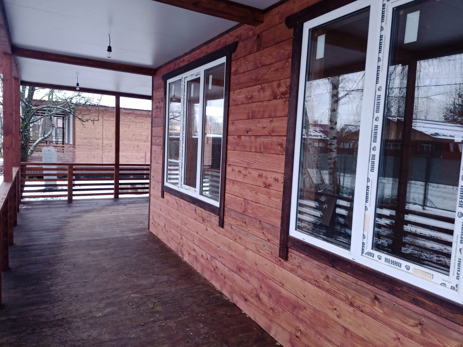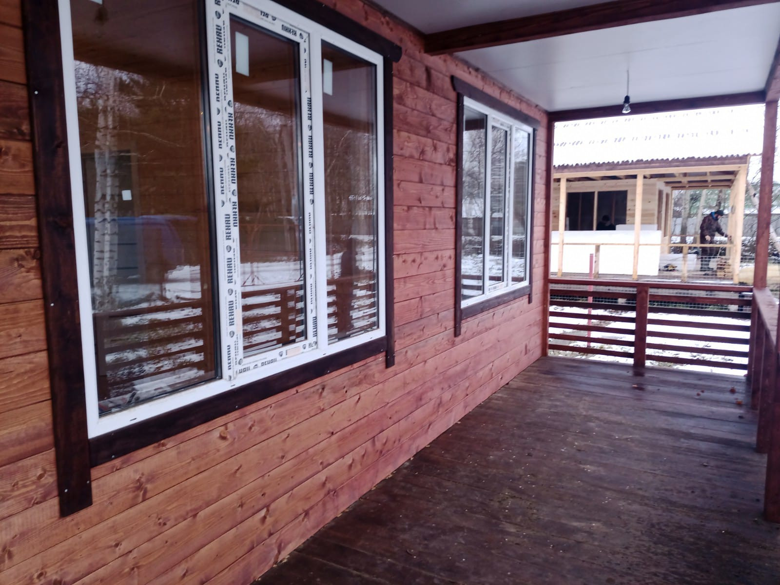 На первом этаже - гостиная, кухня, две спальни, туалет ванная - совмещённый, отдельная котельная, большая двухсторонняя веранда, панорамные окна.