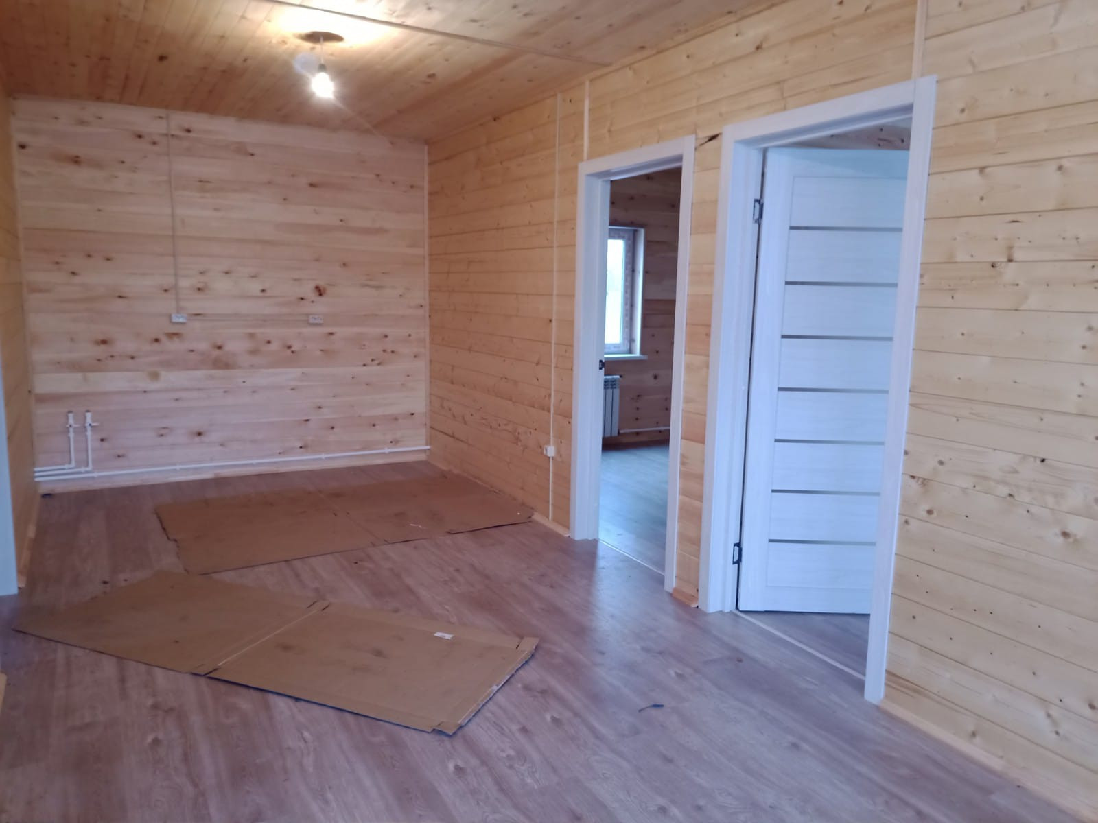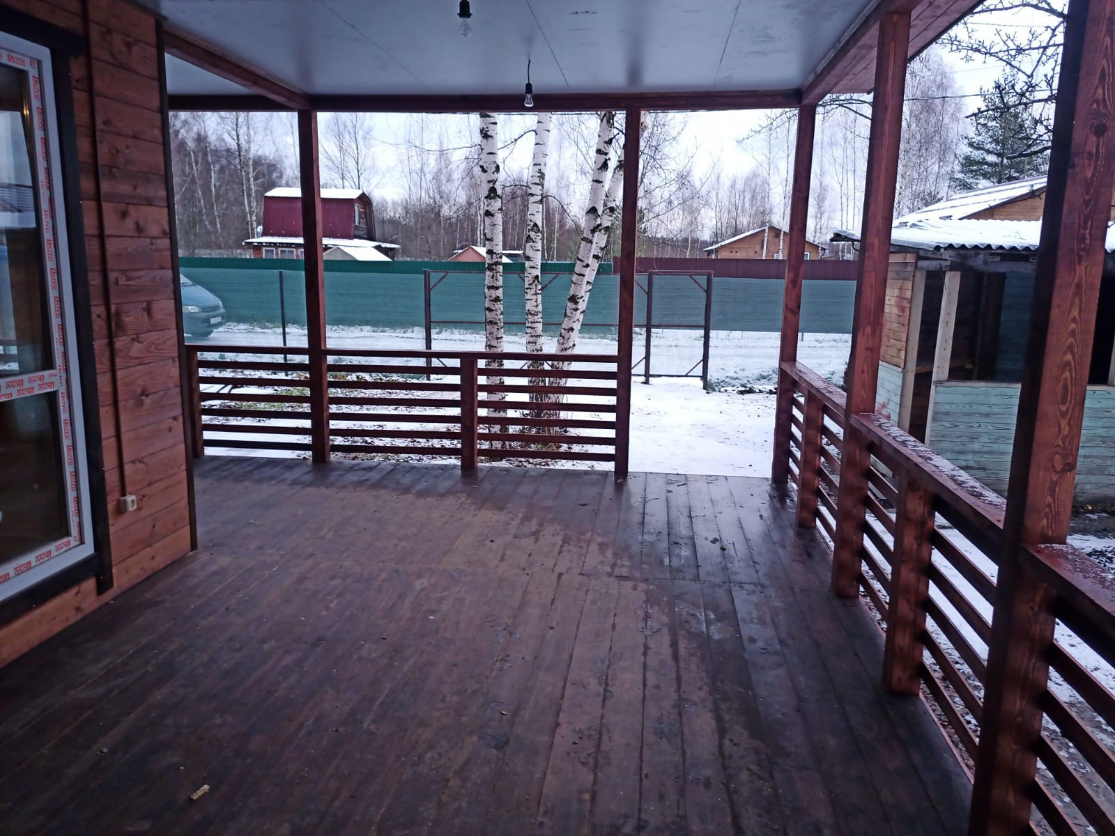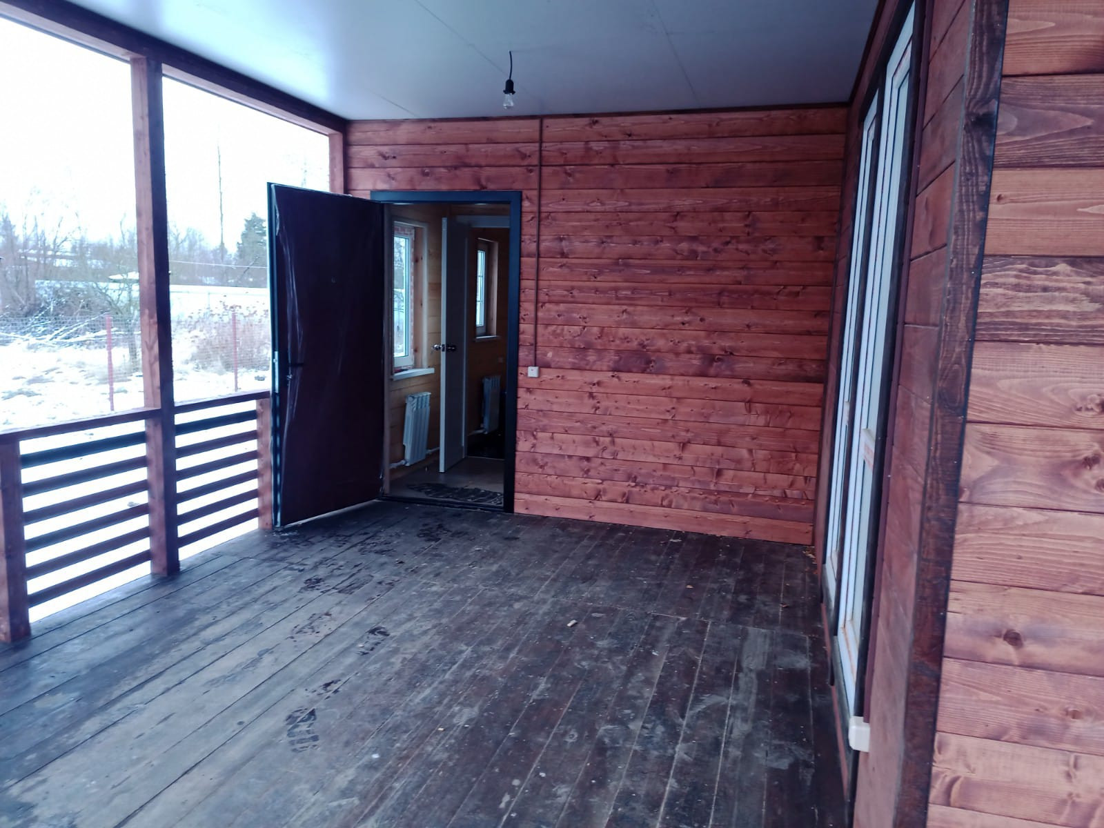 На первом этаже - гостиная, кухня, две спальни, туалет ванная - совмещённый, отдельная котельная, большая двухсторонняя веранда, панорамные окна.