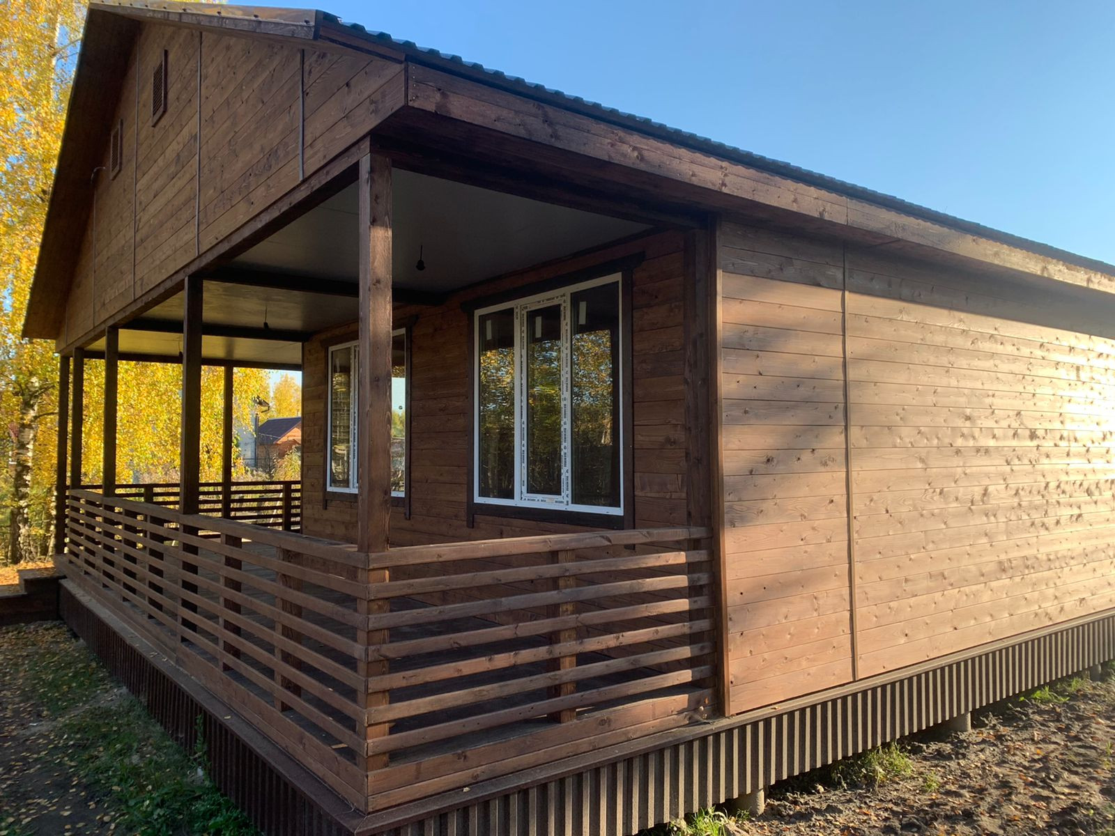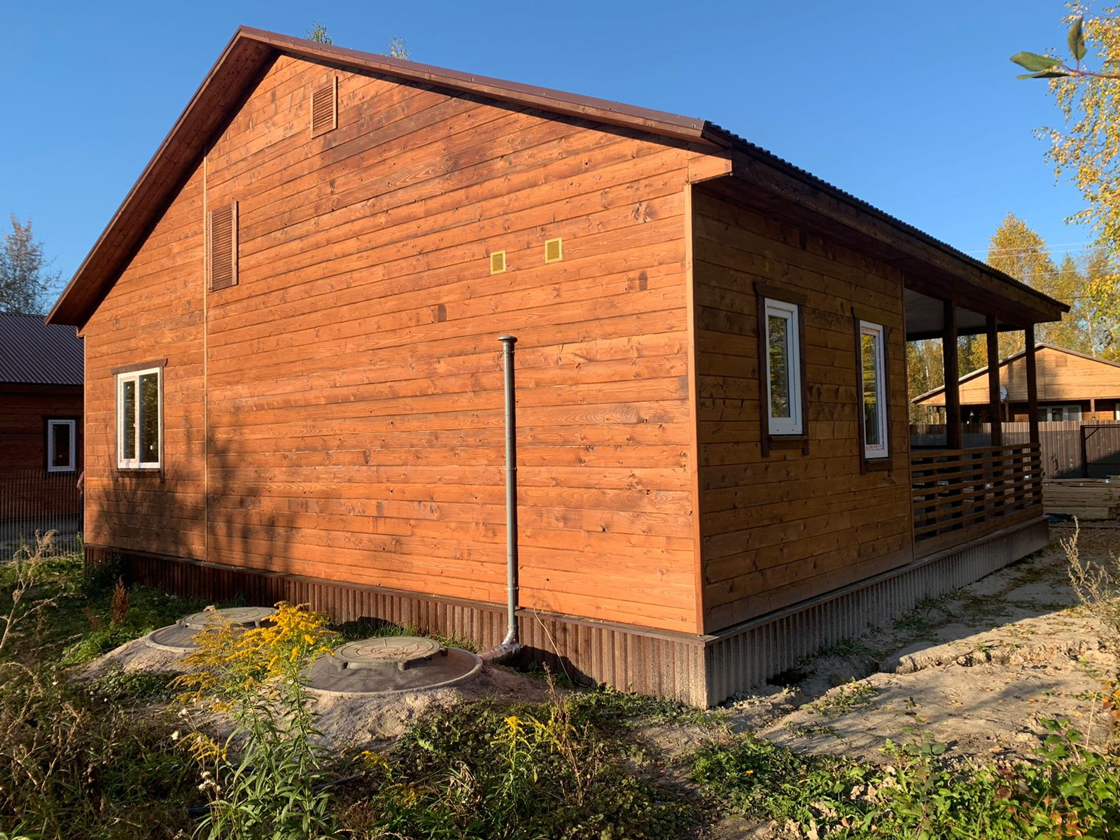 В доме: гостиная-кухня, две спальни, туалет-ванная - совмещённый, отдельная котельная, большая двухсторонняя веранда, панорамные окна.