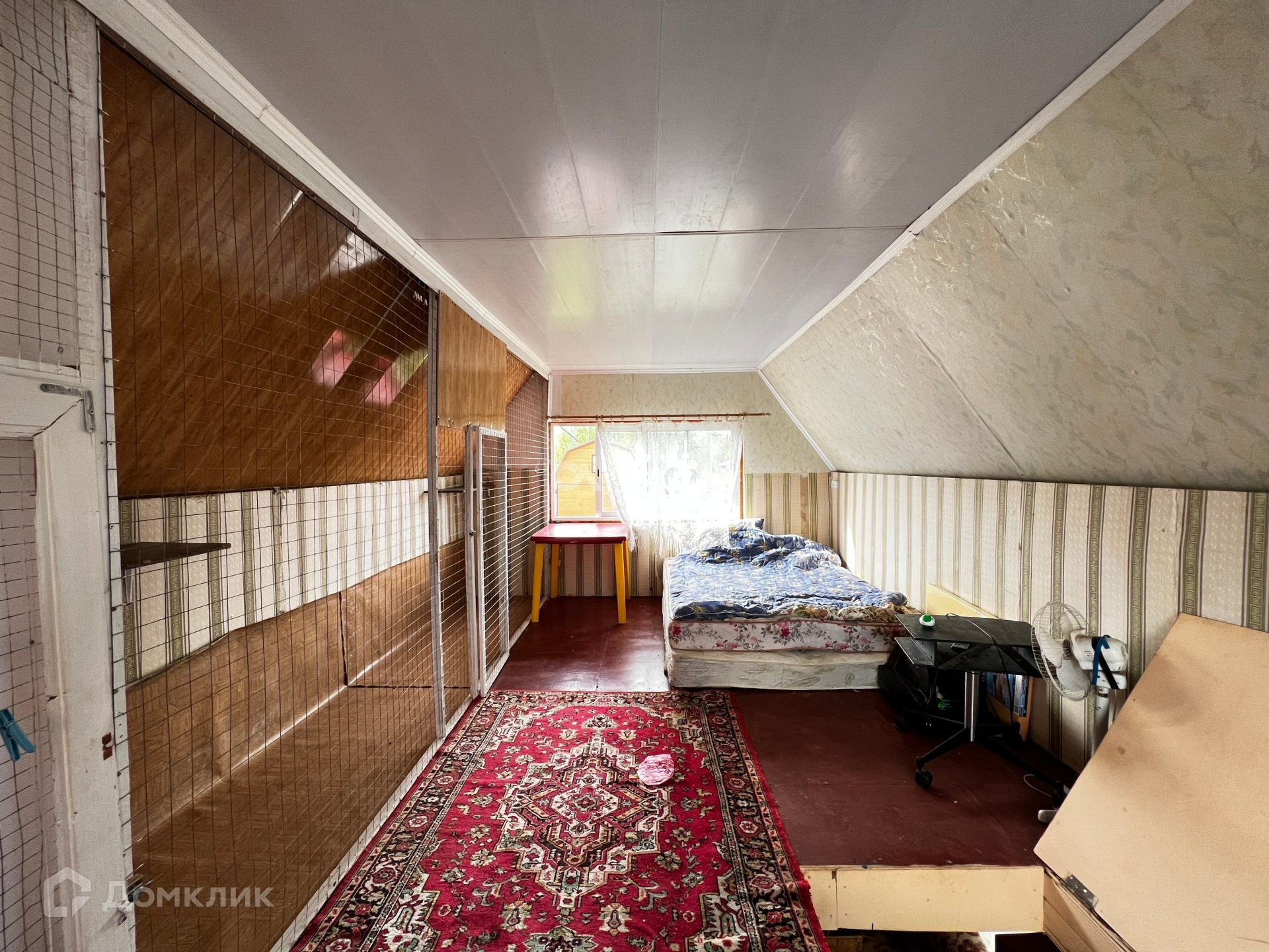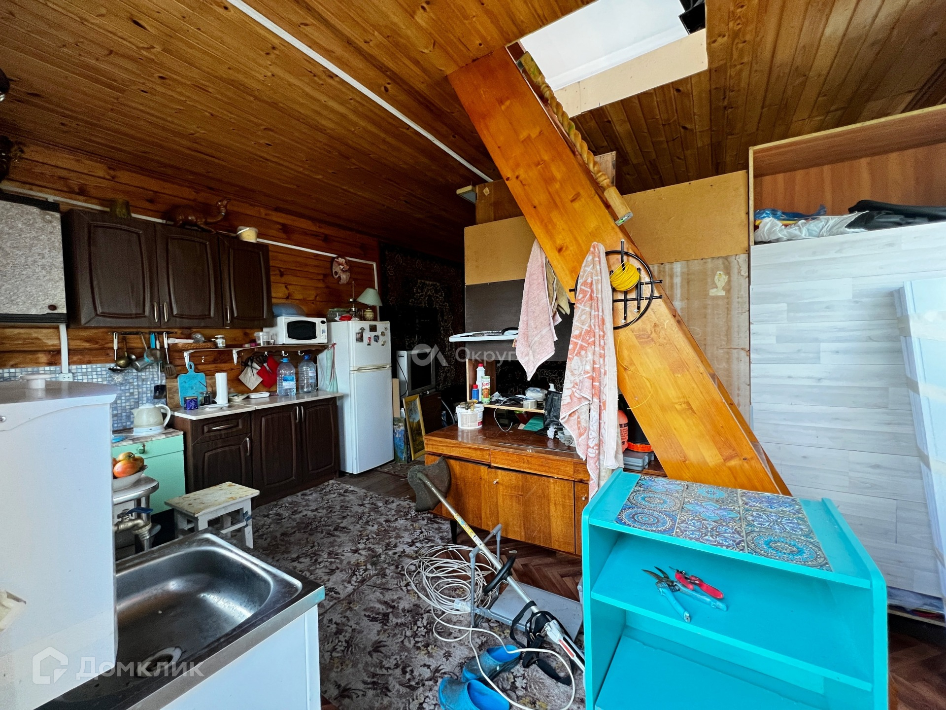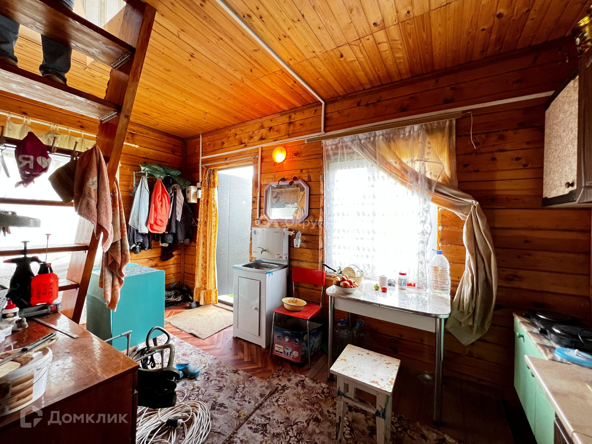 На второй этаж ведет деревянная лестница. Второй этаж вмещает в себя одну просторную комнату.