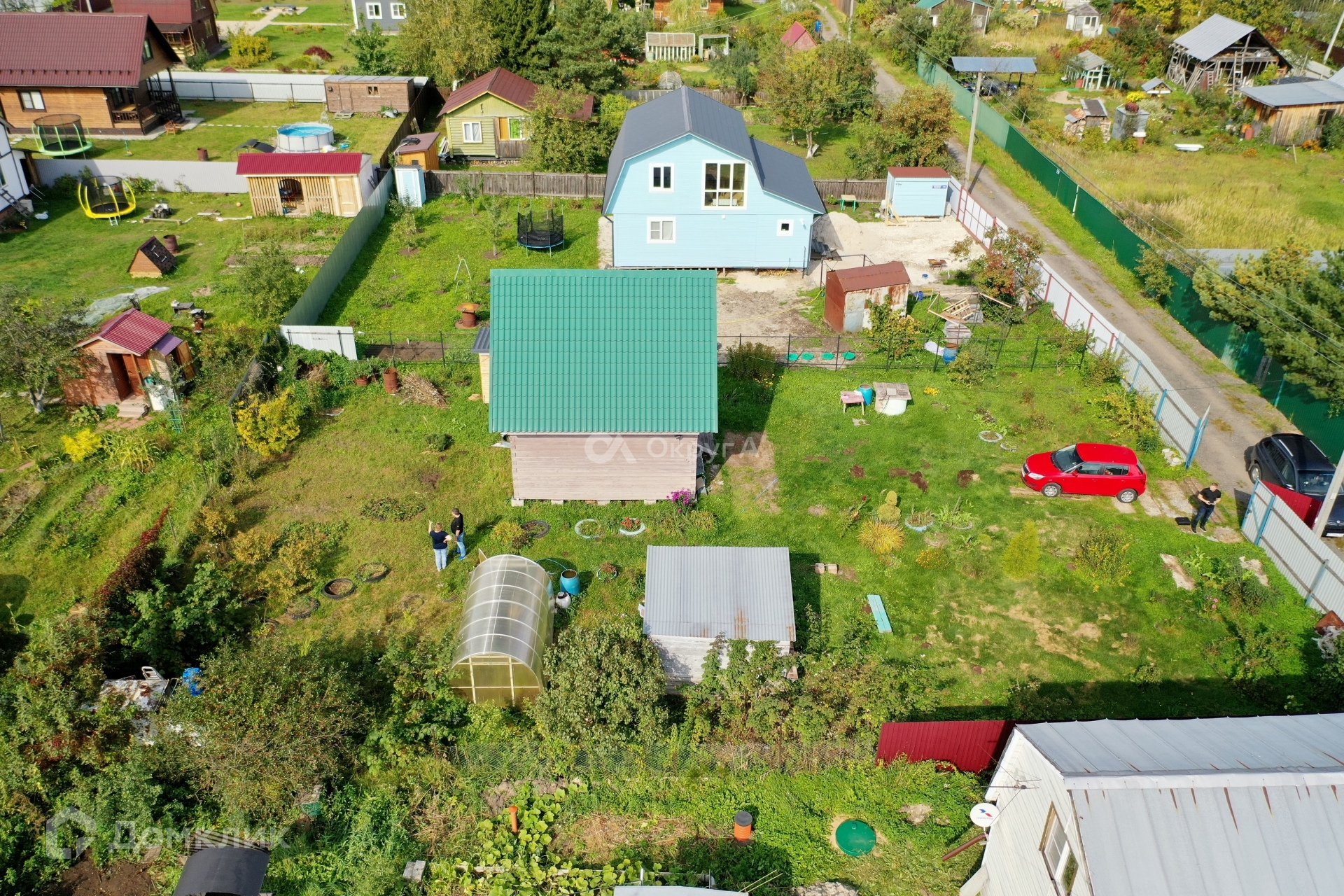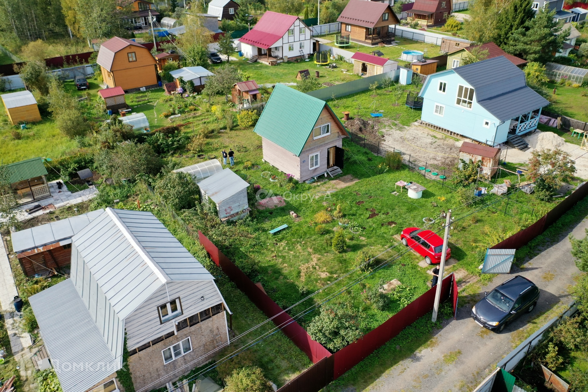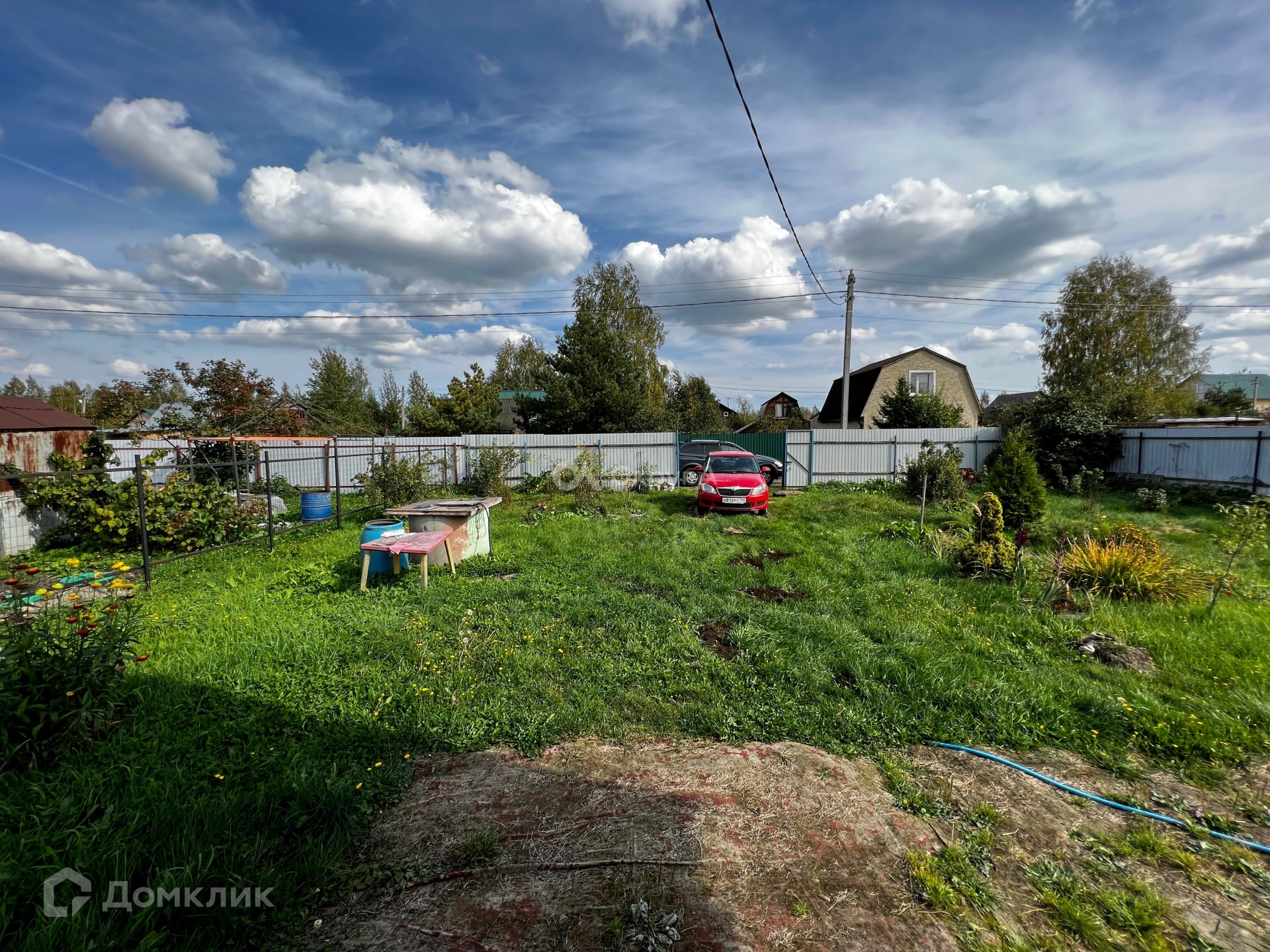 Участок 6,9 соток, по периметру огорожен забором, правильной прямоугольной формы, приподнят, весной вода на участке не стоит, имеются ворота для вьезда автомобиля. На участке имеются насаждения.