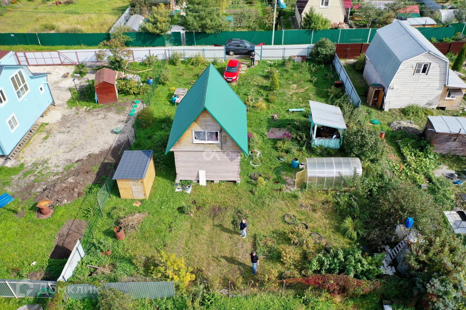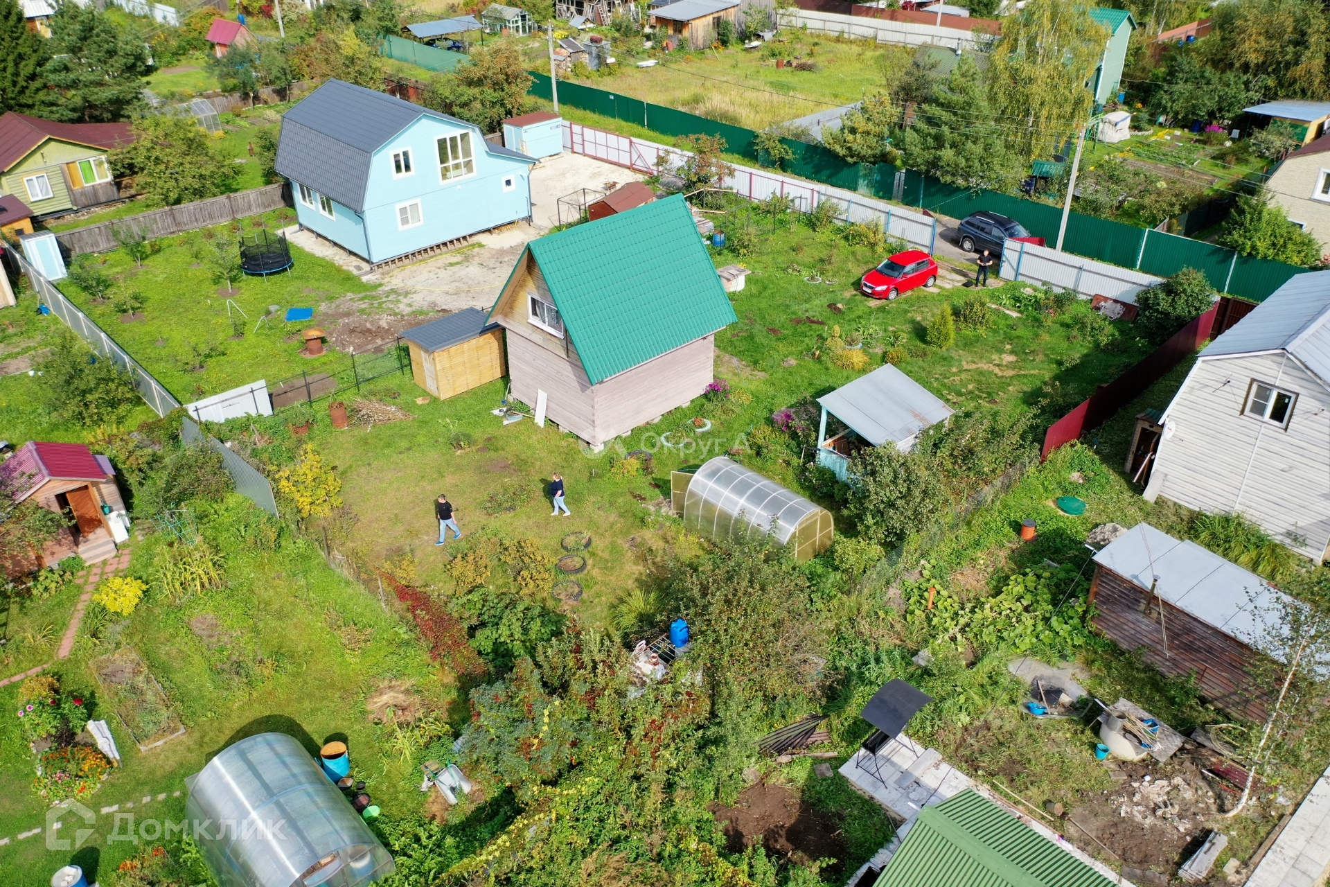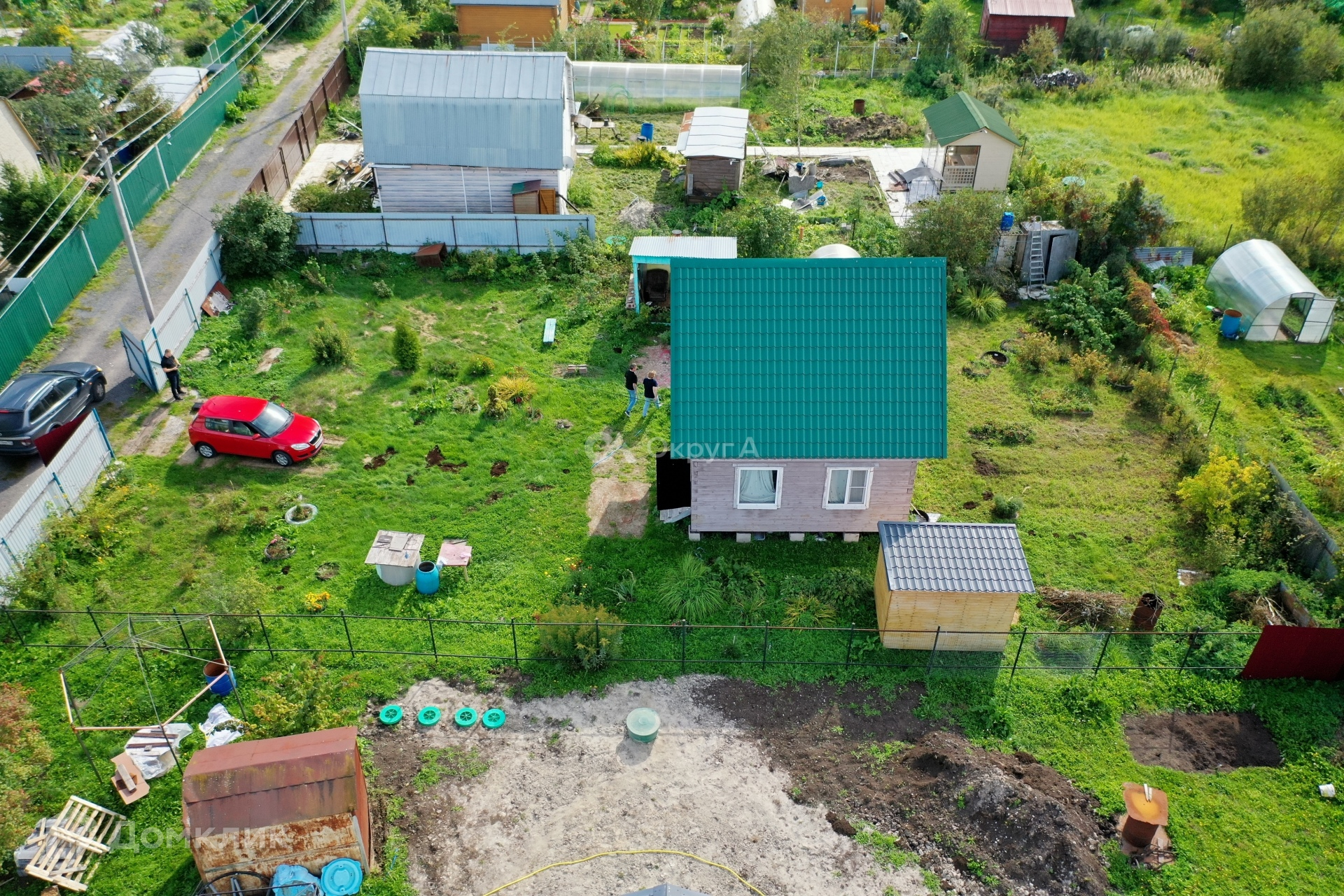 Участок 6,9 соток, по периметру огорожен забором, правильной прямоугольной формы, приподнят, весной вода на участке не стоит, имеются ворота для вьезда автомобиля. На участке имеются насаждения.