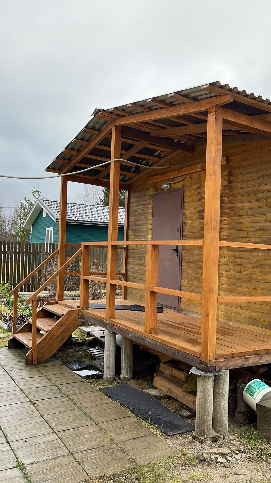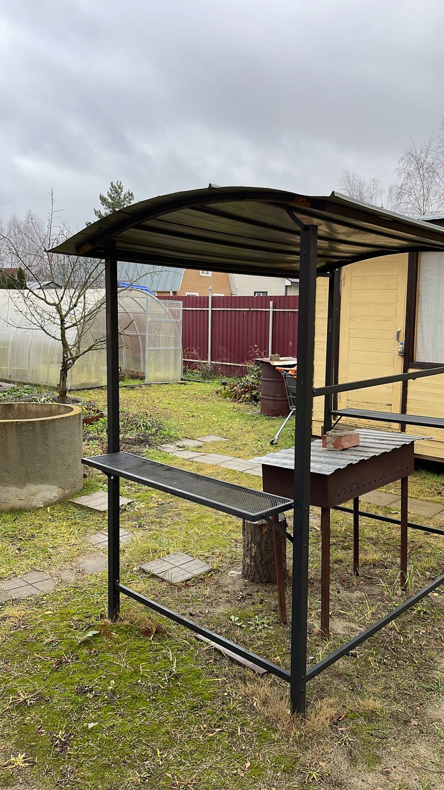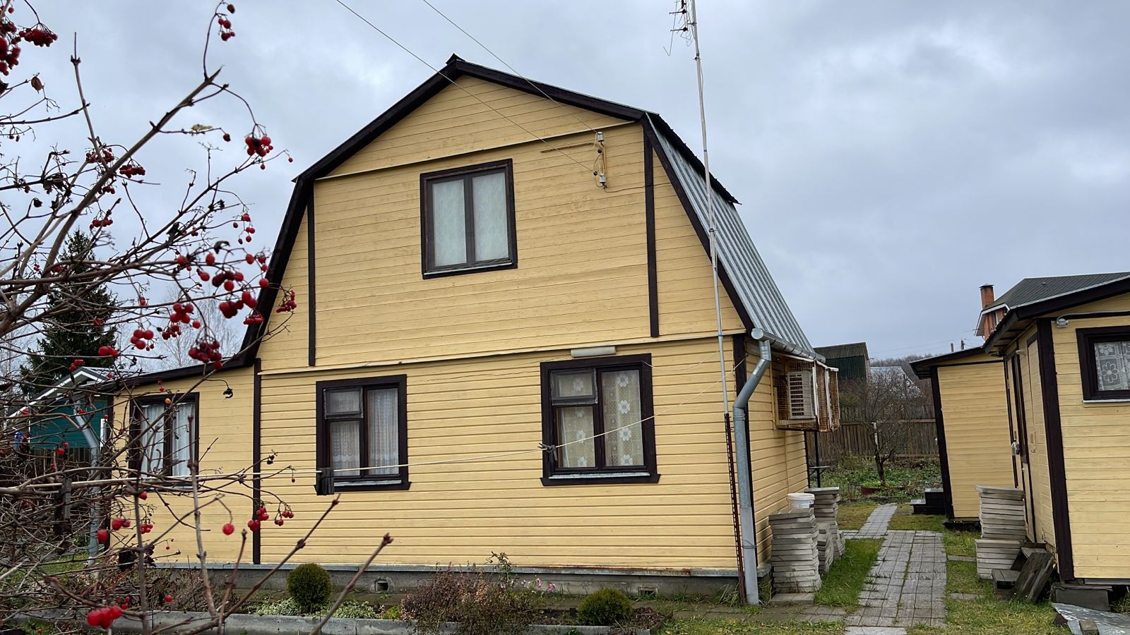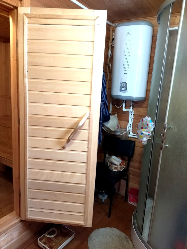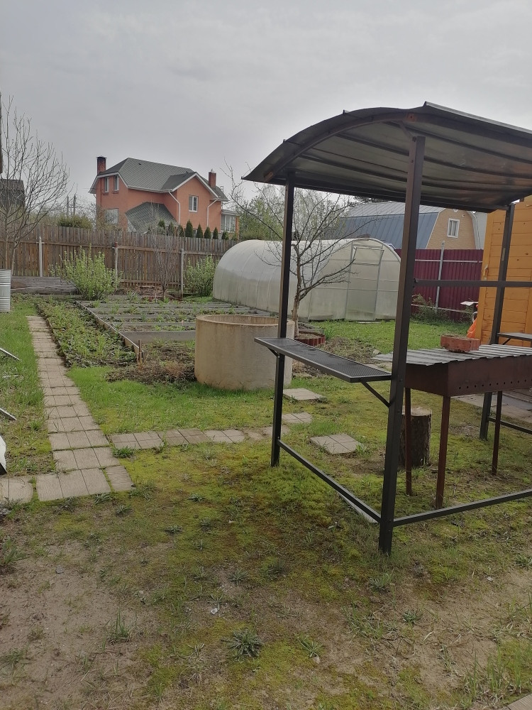 На территории участка находятся: баня: одна просторная комната, кухня, далее: душевая кабина с водонагревателем и парилка. Напротив бани: 2 хоз. блока. В первом: биотуалет большой, скважина. Второй: под хранение. Теплица. Мангальная зона,