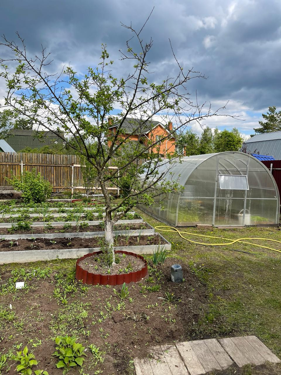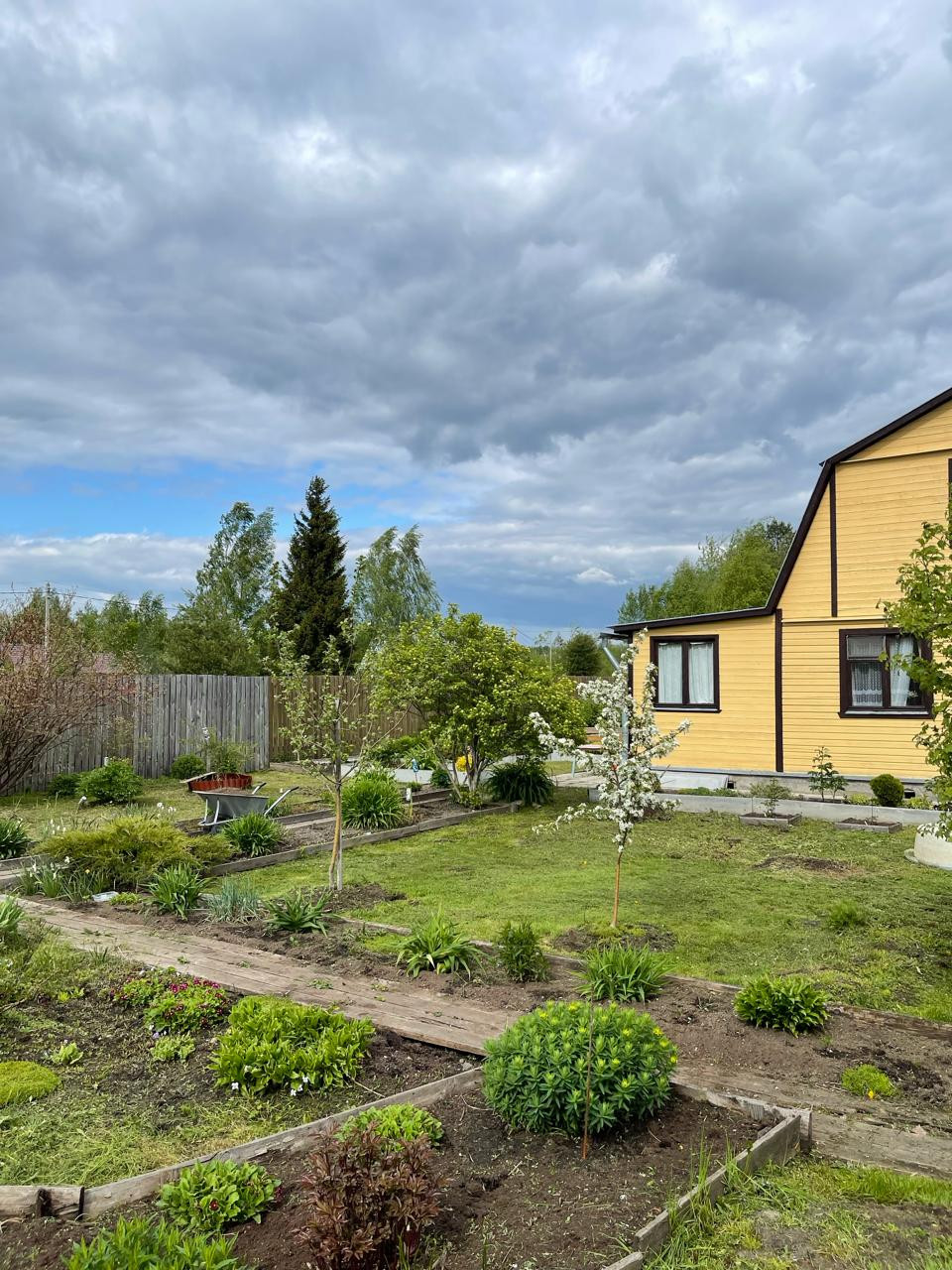 Земельный участок 10,45 соток, сухой, ровный, ухоженный, правильной формы, есть плодовые деревья и кустарники, огорожен забором из профлиста, с соседями: рабица. Летний водопровод для полива.