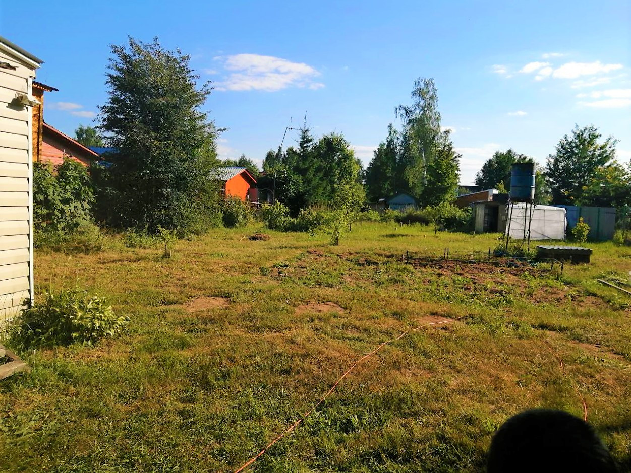 На участке растет яблоня , вишня, красная и черная смородина, малина .  Растут две сосны , что позволяет спрятаться в тени в жаркую погоду и подвесить гамак .  Имеется колодец для полива .