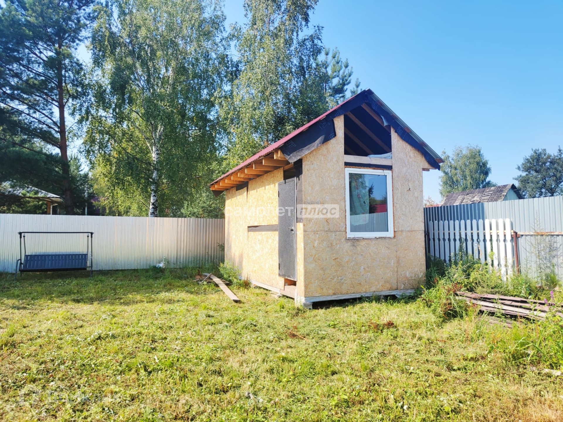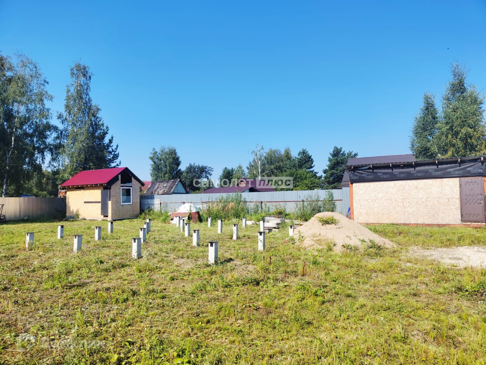 На территории участка построены две каркасно-щитовых хозблока, один из которых планировался под баню.