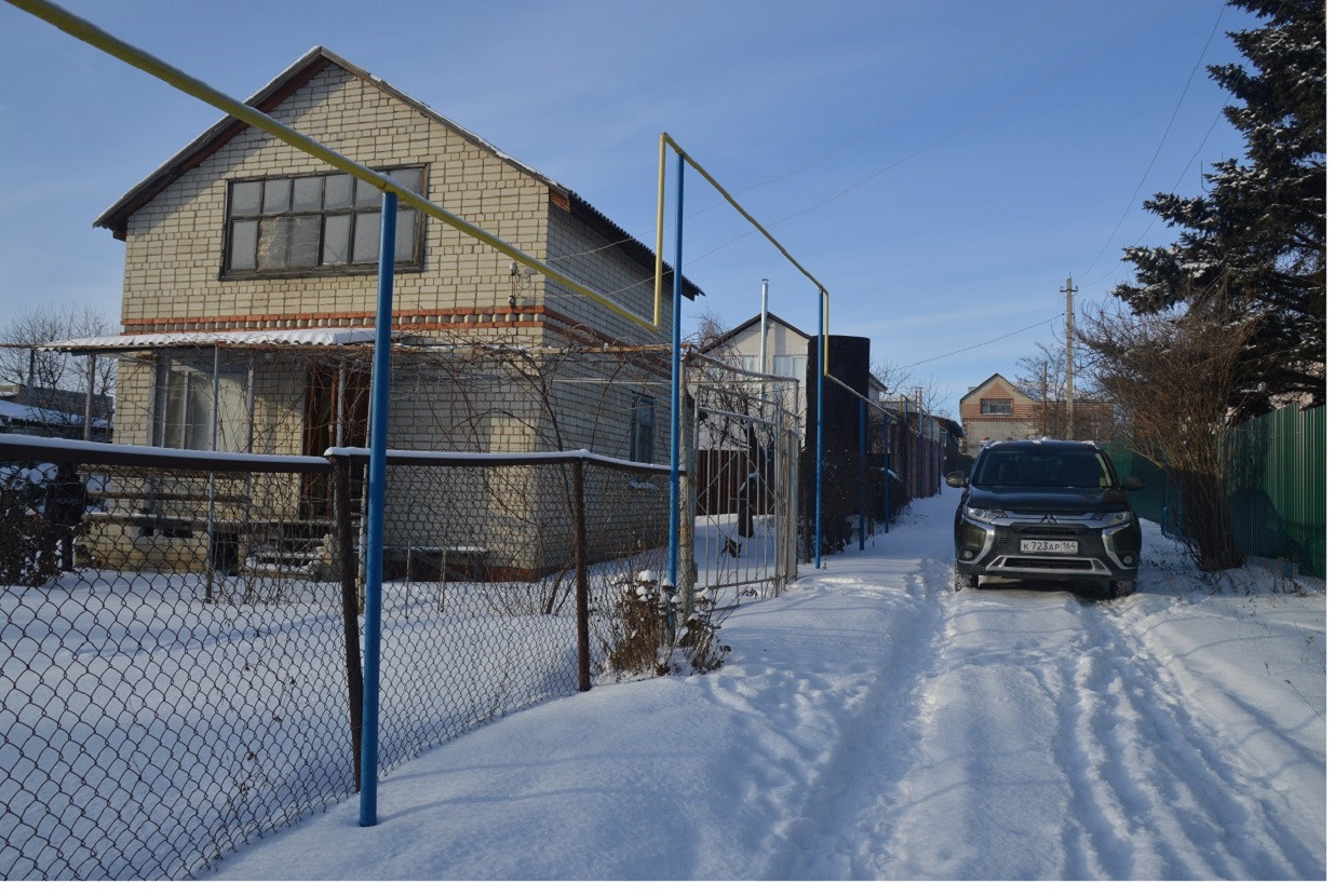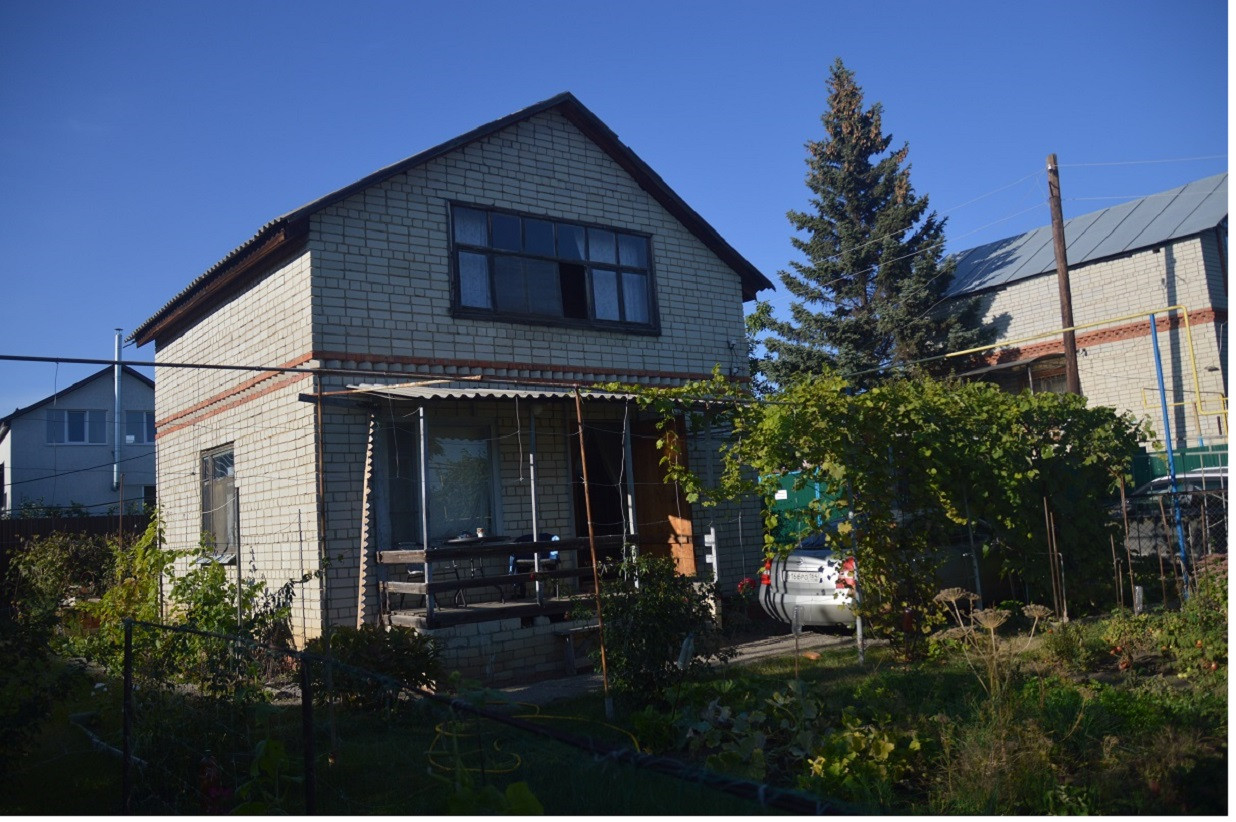 Дом- 77,5 кв.метров, кадастровый номер 64:32:024618:1972 , 2-этажный ( 3 комнаты, кухня, прихожая, душ, помещение под сан.узел), кирпичный, перекрытие- ж/б плиты, фундамент- ФБС (глубина залегания- 1,8 метра). Оформлено право собственности на "жилой дом".