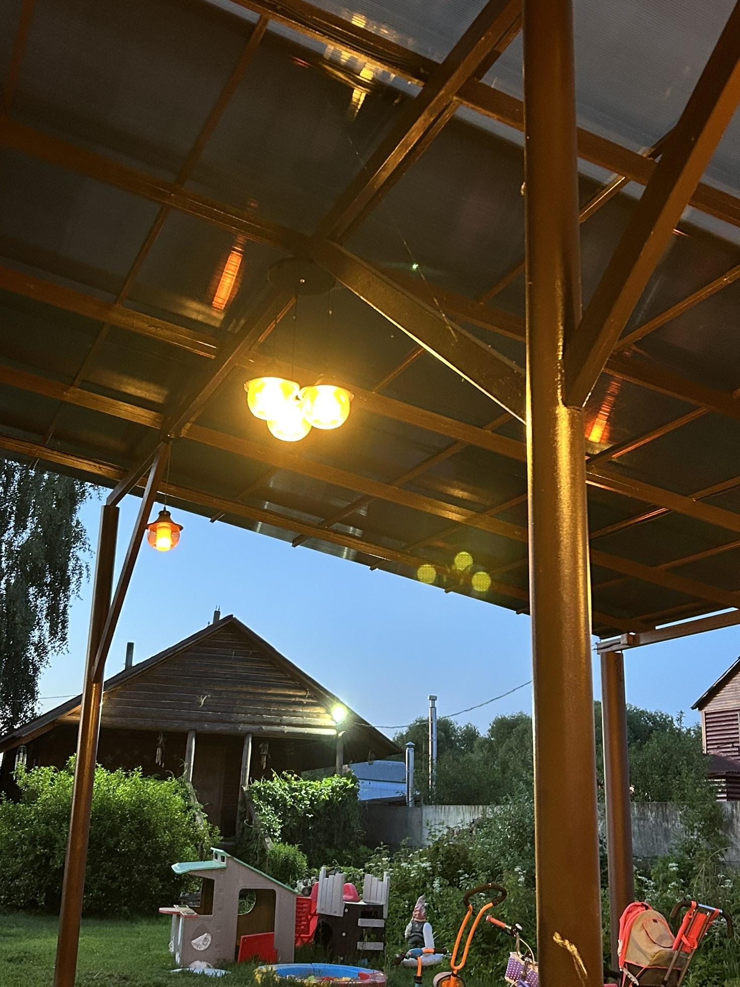 Территория обнесена забором с электрическими откатными воротами. Ровная большая площадка для двух автомобилей, оборудованная детская площадка. На территории есть 2 теплицы 3*6м и 3*4м, вольер, курятник, грядки - все это находится в огороженной огородной зоне. 2 подсобных щитовых домика. Площадка из гальки для релакса и йоги. Территория облагорожена многочисленными кустовыми цветами, туями, виноградом и жасмином. Также присутствуют плодовые деревья: яблоня, груша, вишня, кусты смородины, крыжовника и малина. Зона барбекю с кирпичной печью-мангал.