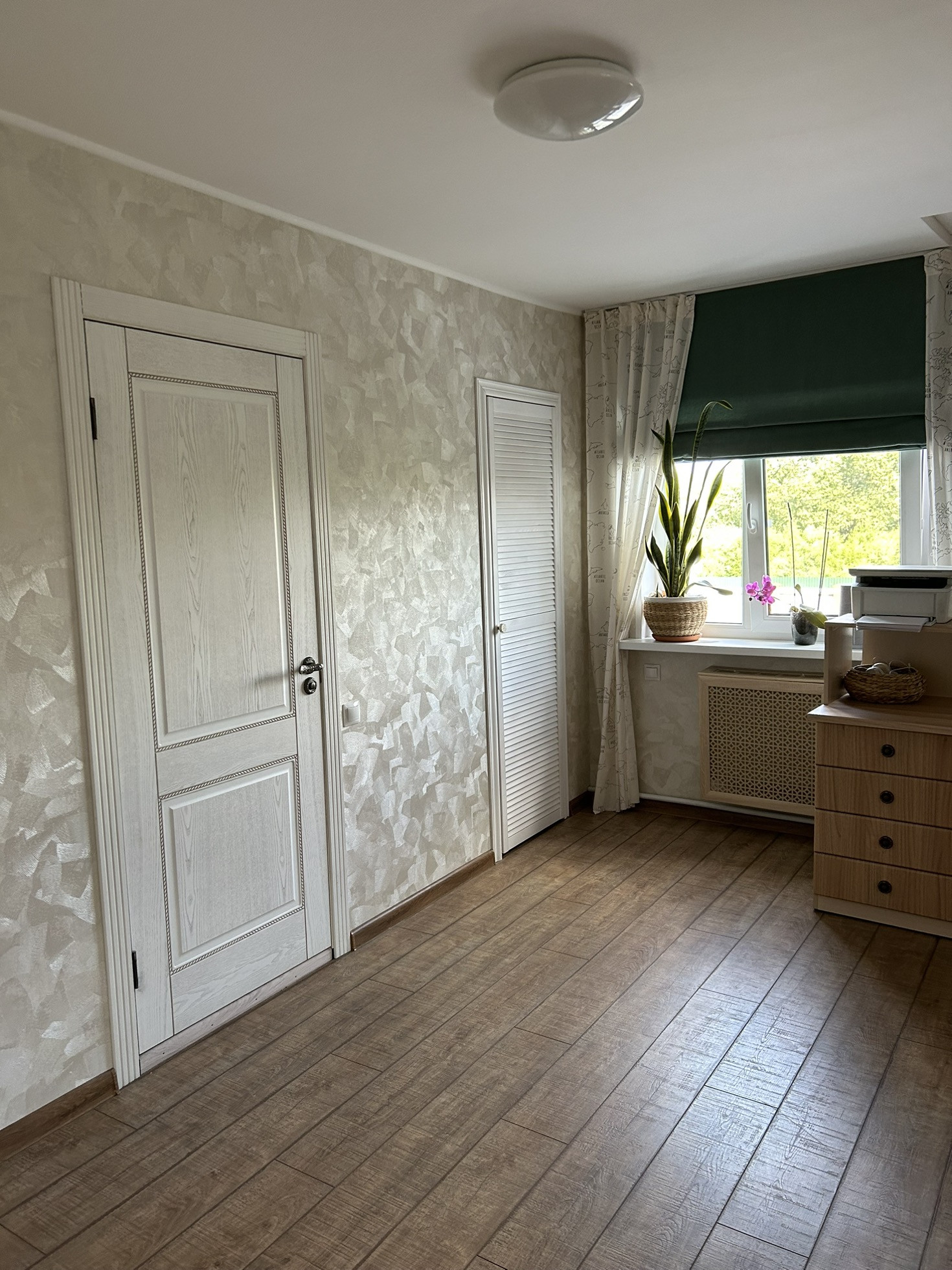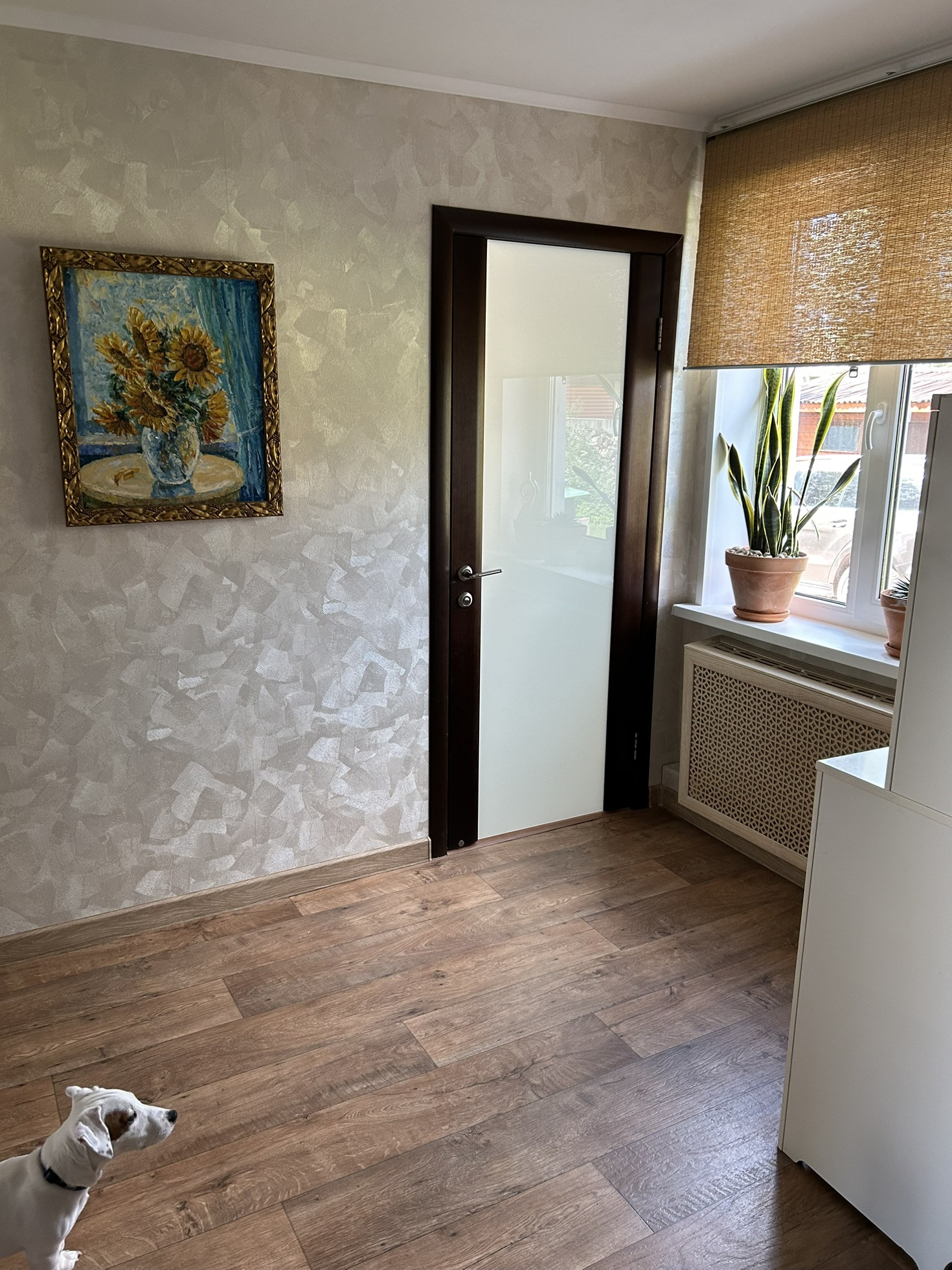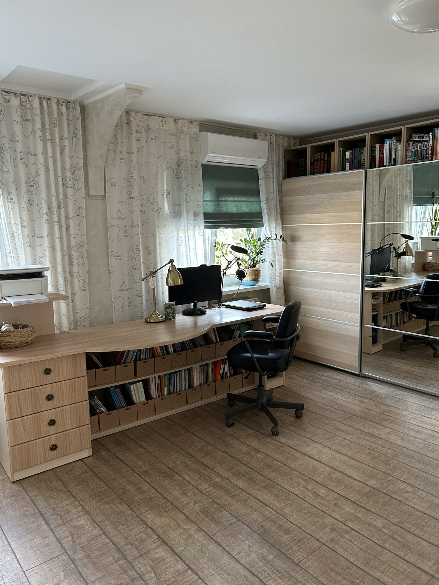 3. Холл с очень удобным рабочим столом, скрытая гардеробная, скрытая техническая комната, где стоит отопительный котел+ парогенератор с гладильной доской, мощный инвекторный кондиционер Toshiba.