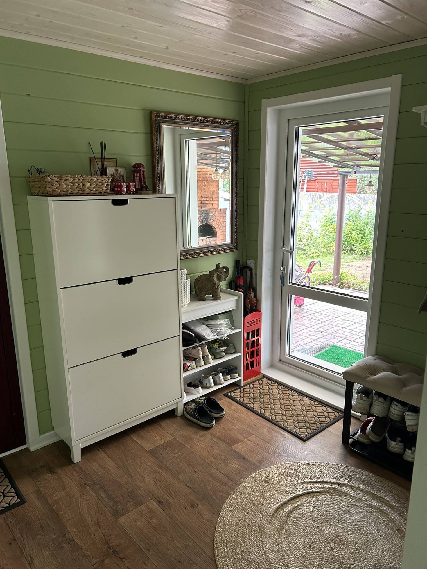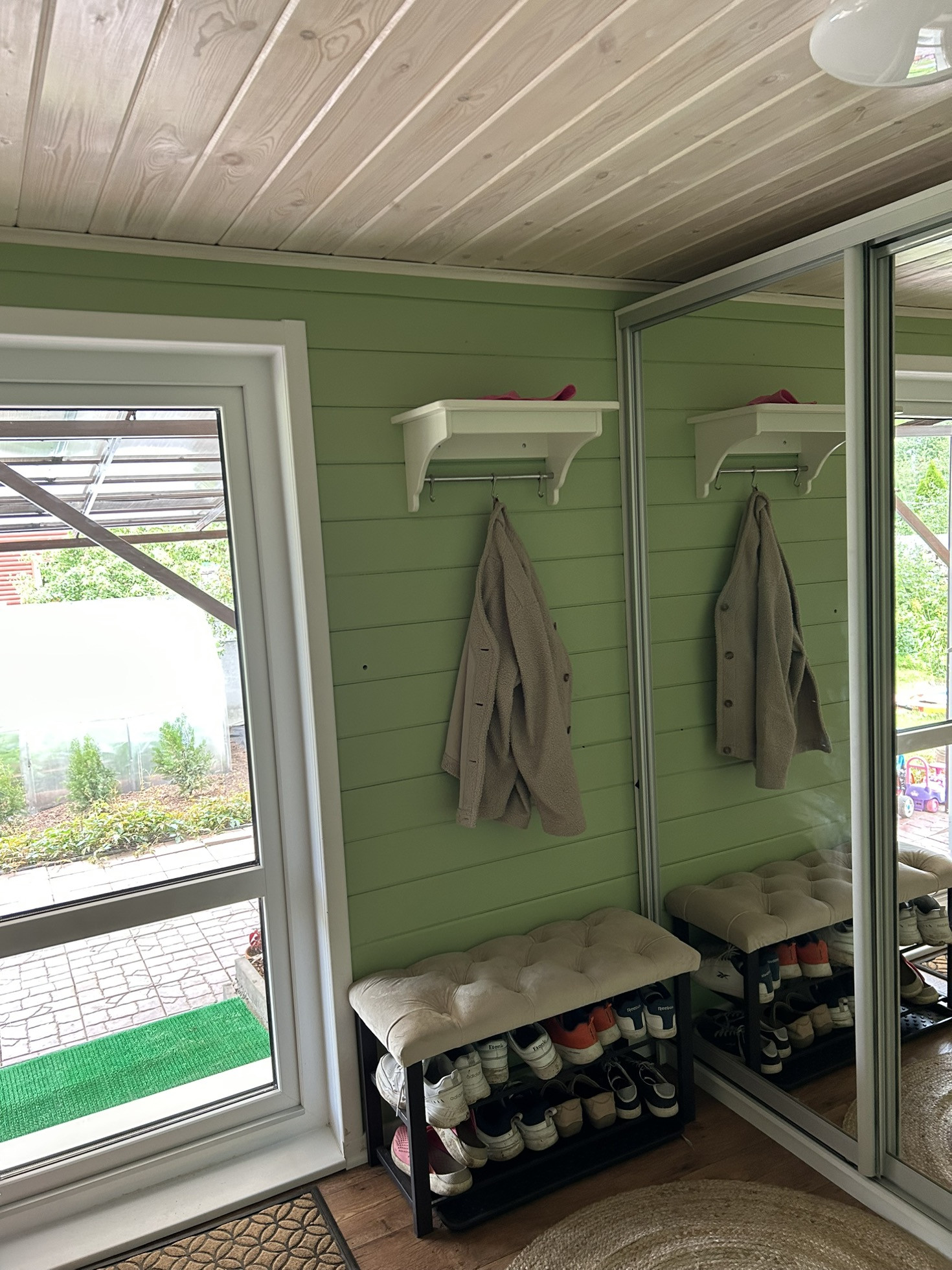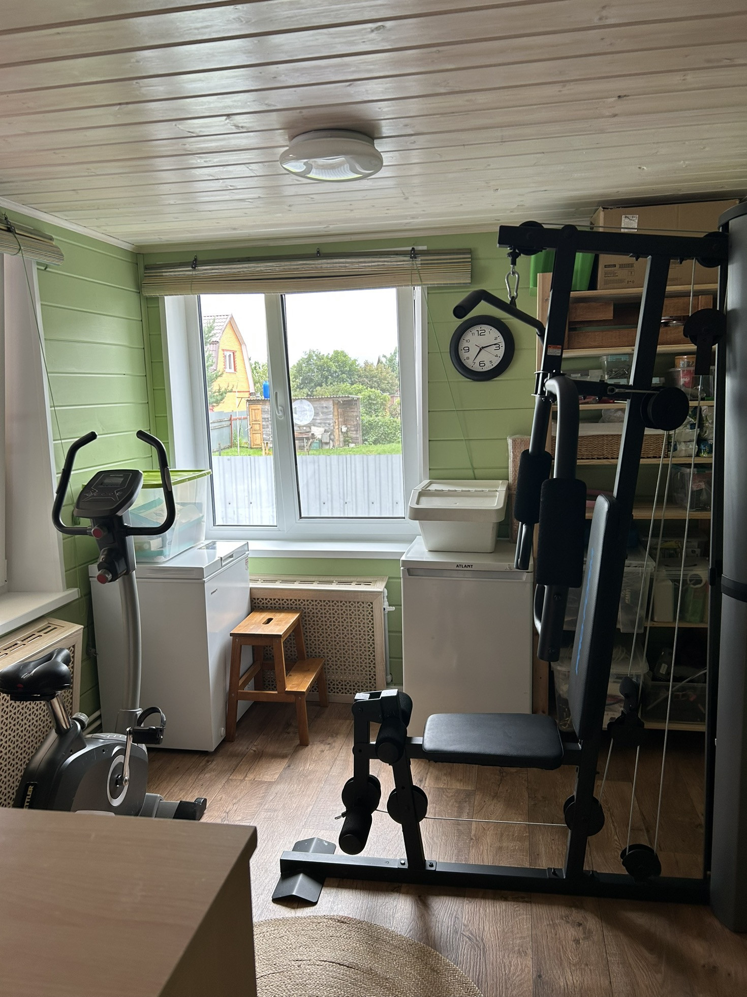 1. Прихожая – разделена на 2 зоны: прихожая + тренажерный зал (велотренажер и многофункциональный тренажер)