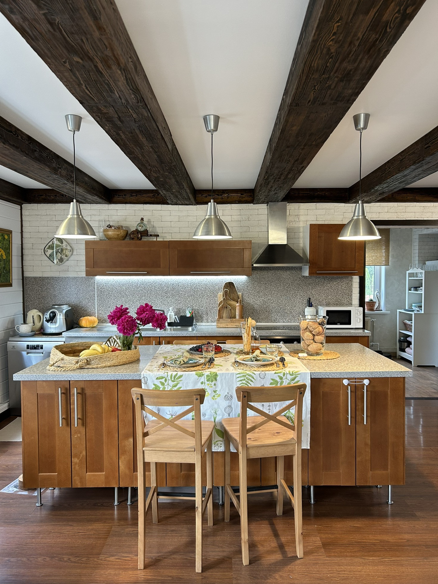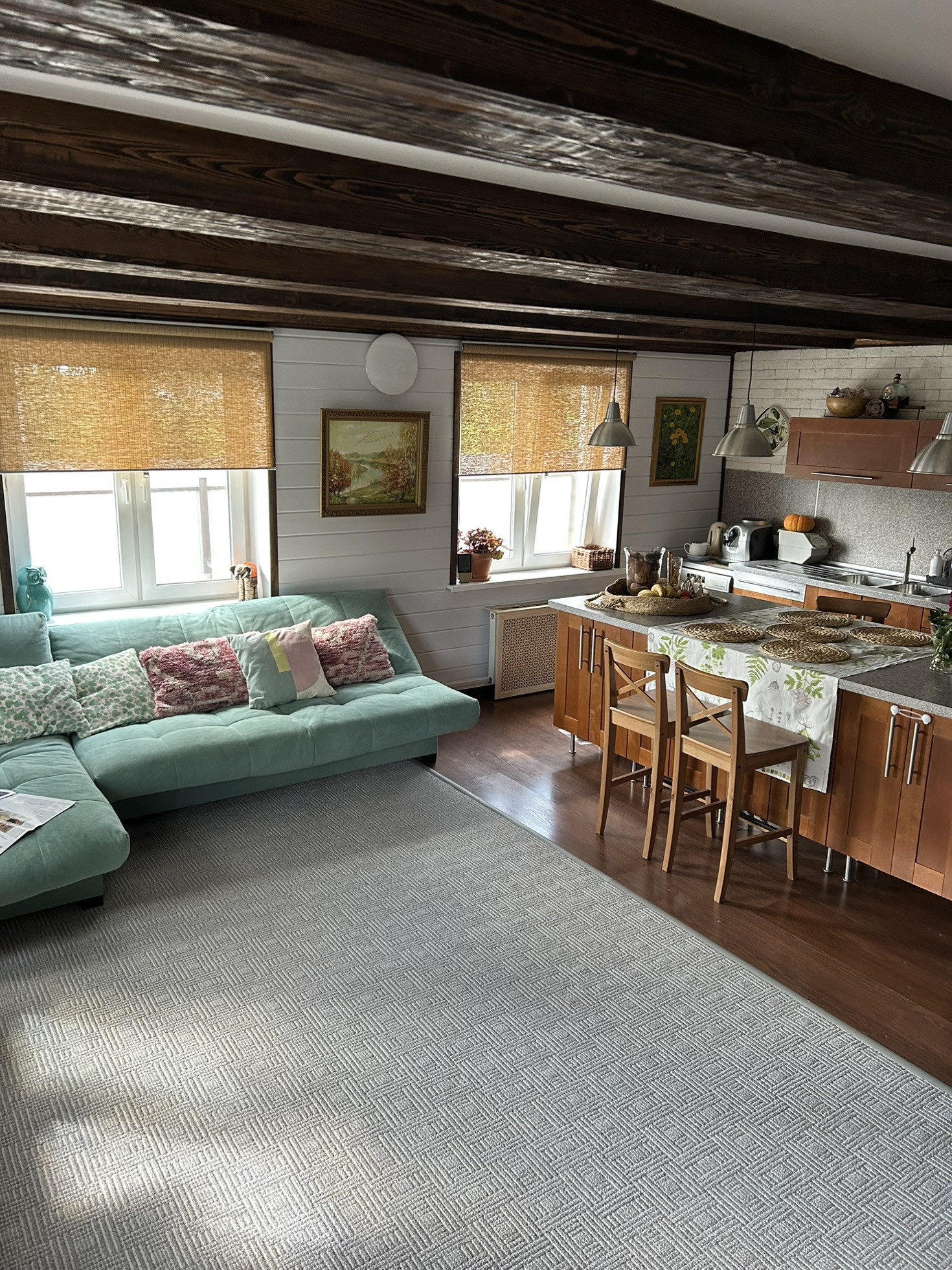 4. Большая, функциональная и светлая кухня + гостиная с «теплым полом», также произведено зонирование. На кухне посудомоечная машина Electrolux размер XXL, двухстворчатый холодильник, в гостиной телевизор Samsung QLED (65 диагональ).
