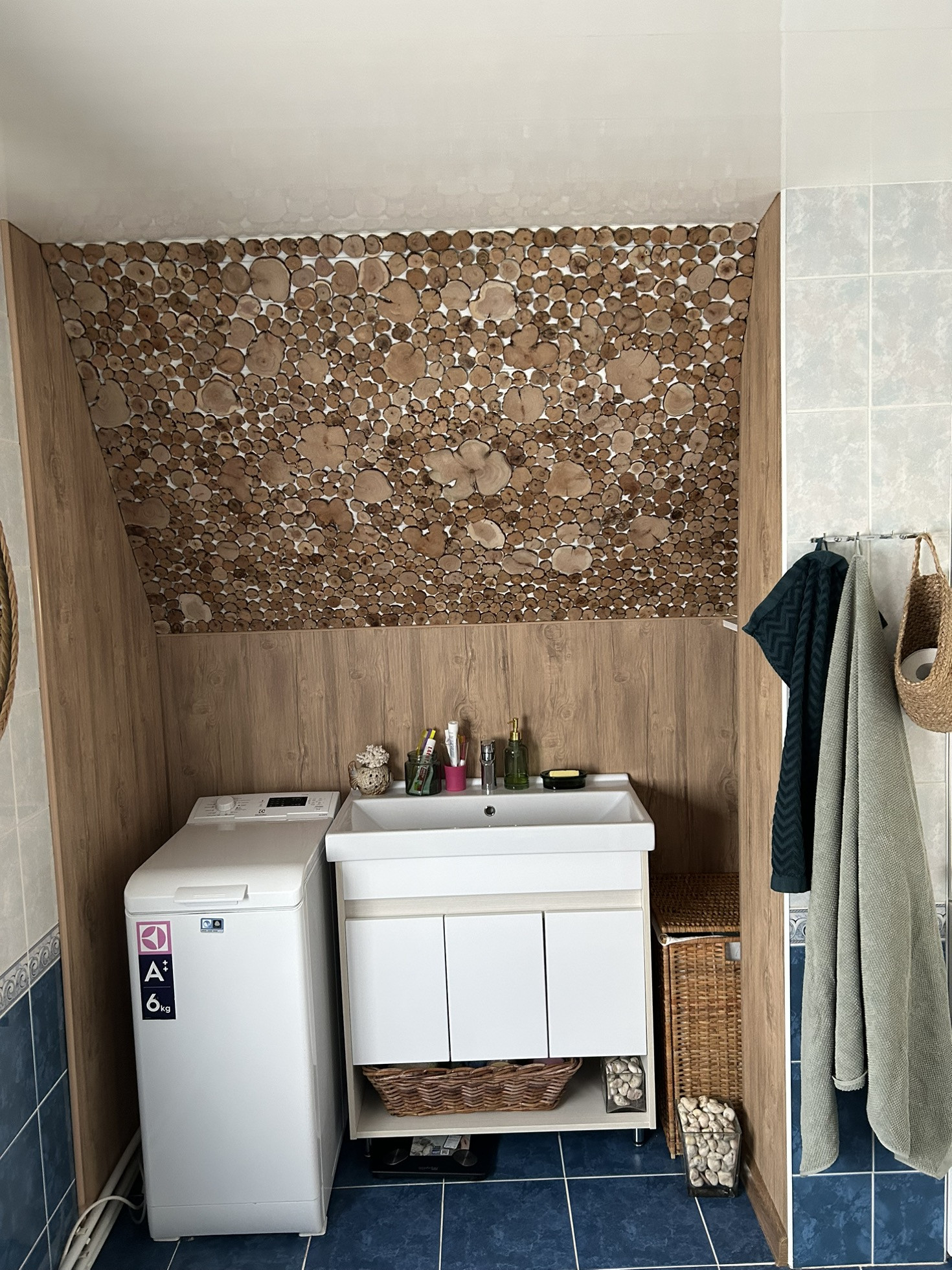4. Совмещенный санузел, ванна, фронтальная стиральная машина Electrolux.