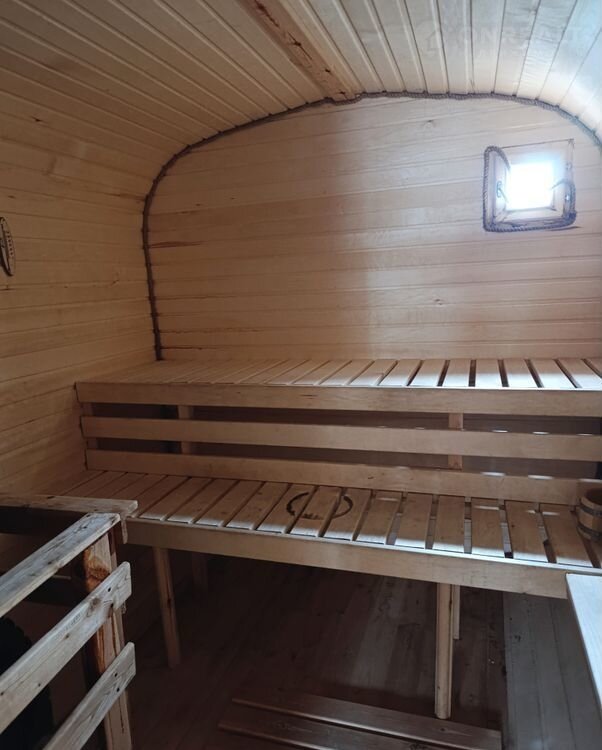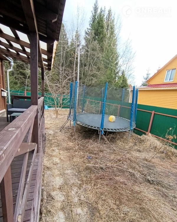 На участке есть отличная баня-бочка, гараж-ракушка, бассейн, батут, садовые качели.
