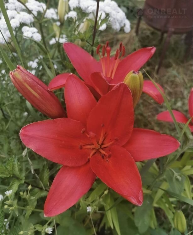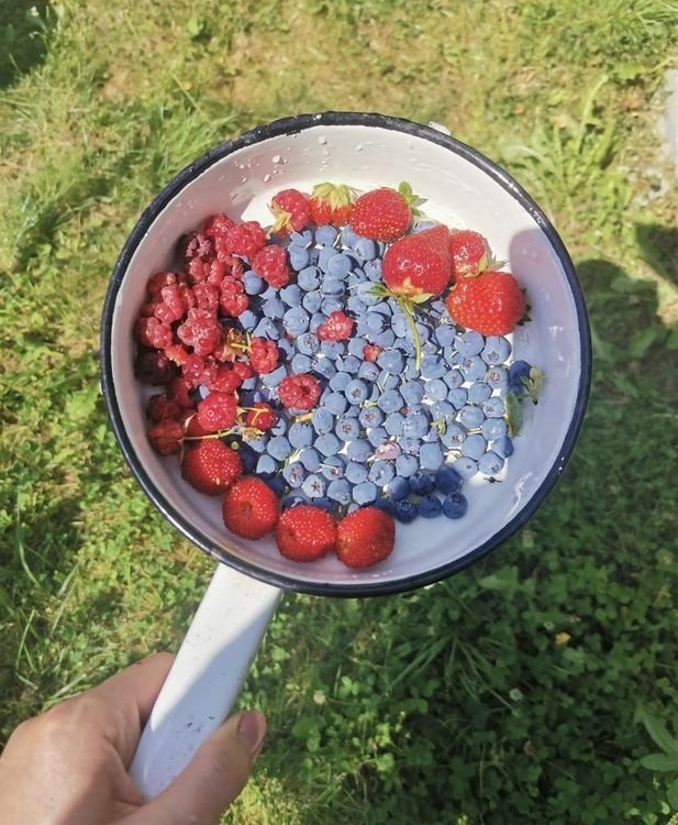 На участке множество посадок: цветы, плодовые деревья, земляника и клубника, голубика, ежемалина, йошта, крыжовник.
