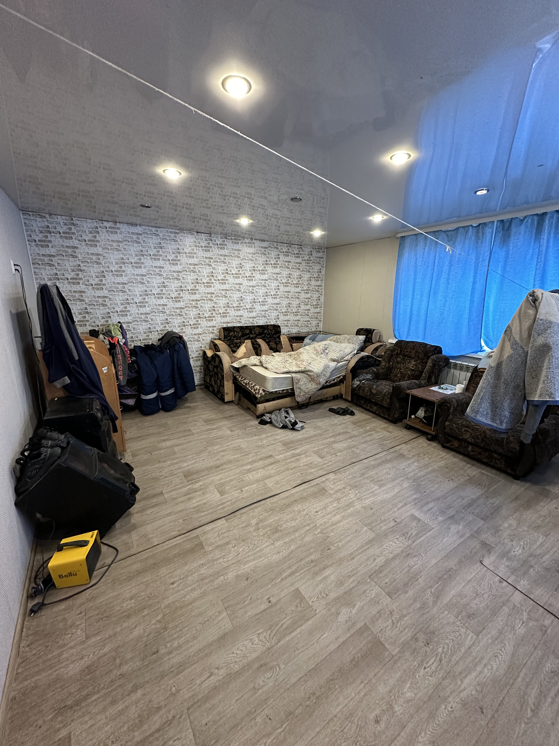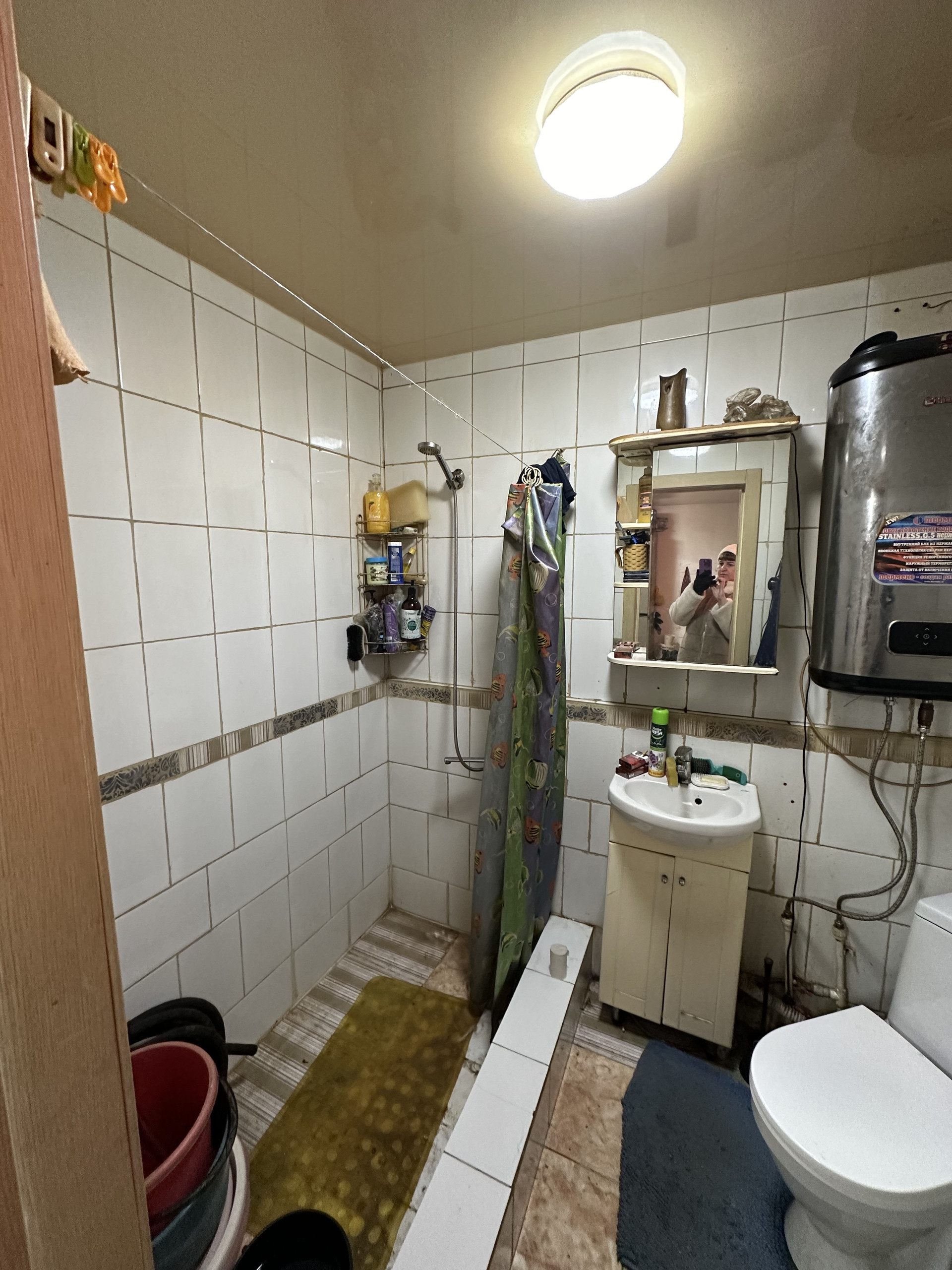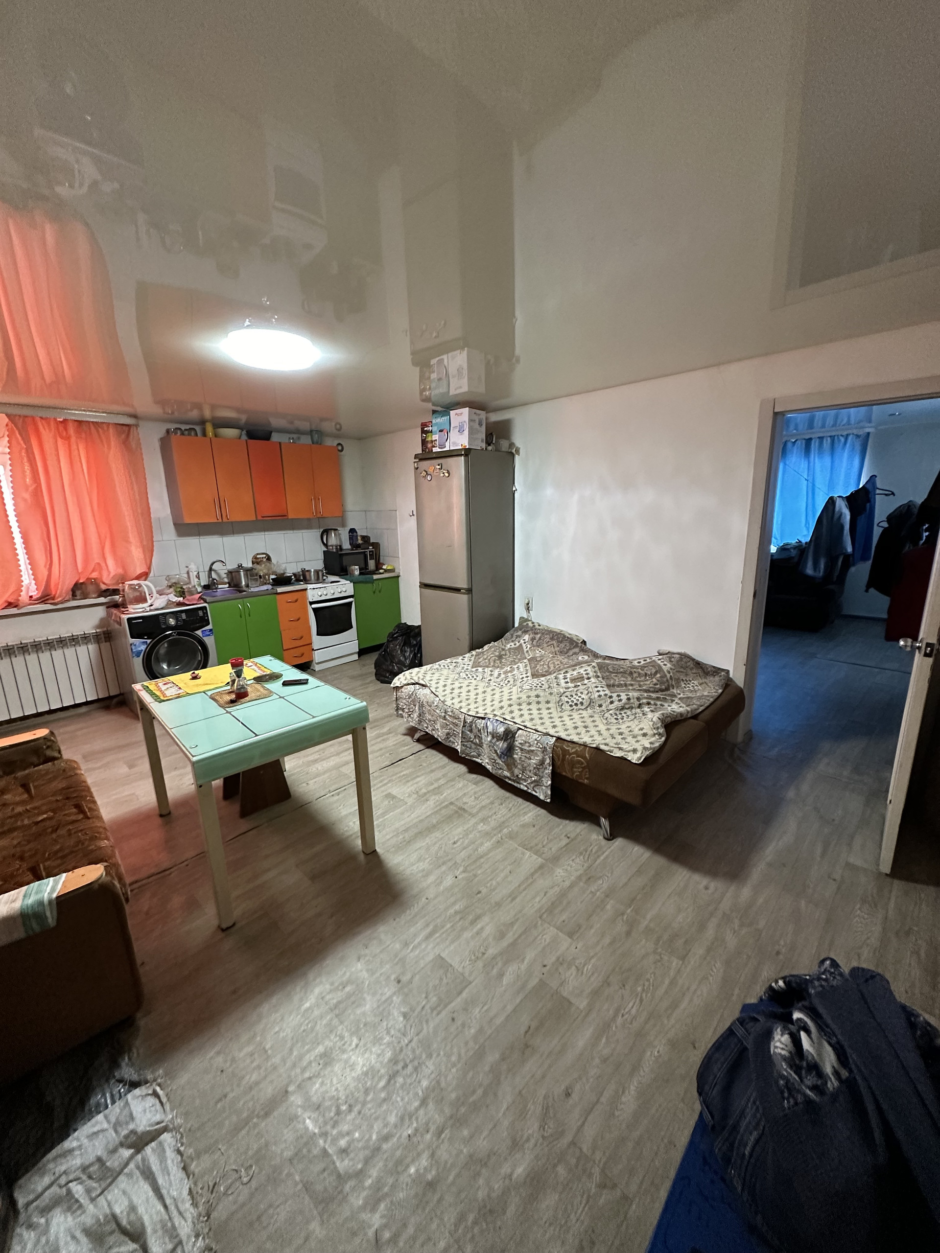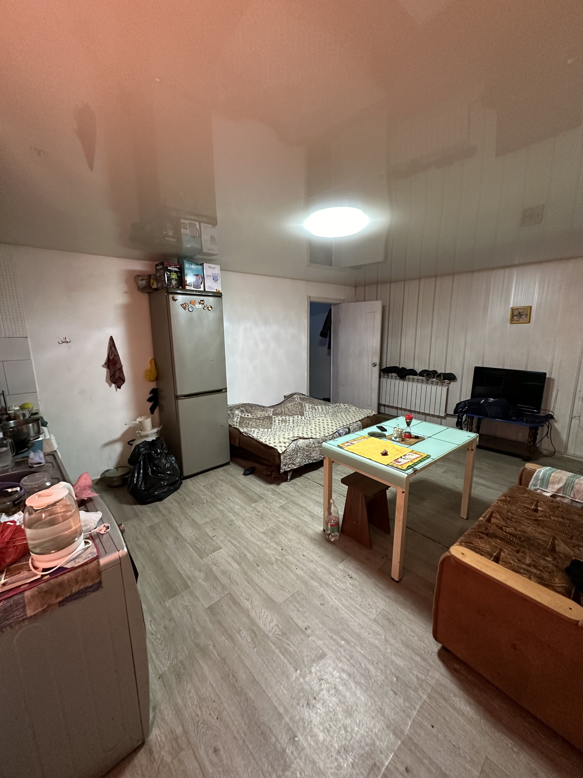 Дом на ленточном фундаменте, стены из газоблоков, крыша профлист, сверху обшит сайдингом. Во всем доме установлены пластиковые окна, современные радиаторы, водонагреватель на 80 литров. Во всем доме натяжные потолки, на полу линолеум.