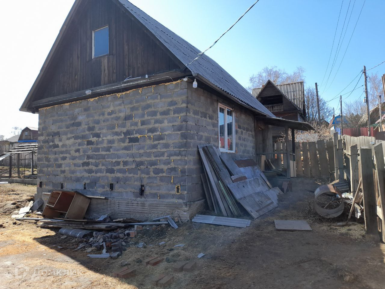Дом 40м2 блоки на высоком ленточном фундаменте. Отделка черновая. Первый этаж: кухня и комната которую можно разделить на две, так как имеется 2 окна. Крыша высокая, есть возможность оборудовать 2 спальни. Свет. Проводка новая медь.